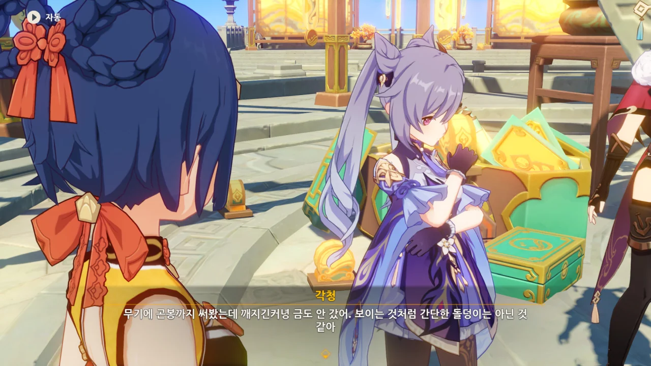 지금껏 다른 등장인물의 속마음은 알려주지 않았으면서 각청의 속마음은 더빙까지 넣으며 알려주는 걸 보면, 이번 축월절 이벤트의 주역은 각청이 아닐지 하는 생각이 든다.