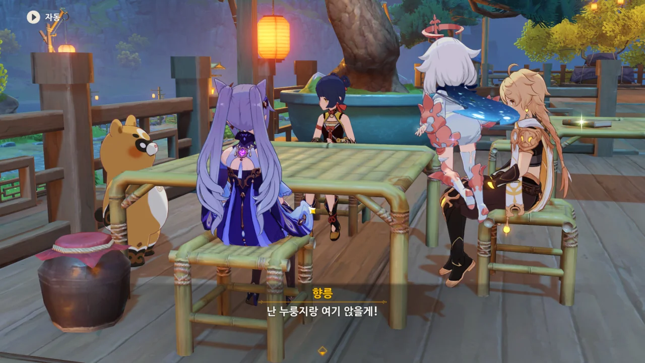 향릉이 "난 누룽지랑 여기 앉을게!"라고 했지만, 향릉 혼자만 의자에 앉고 누룽지는 그대로 서 있다.