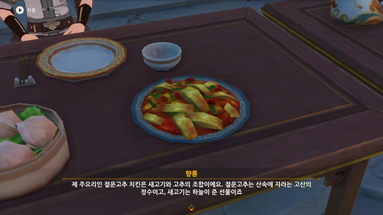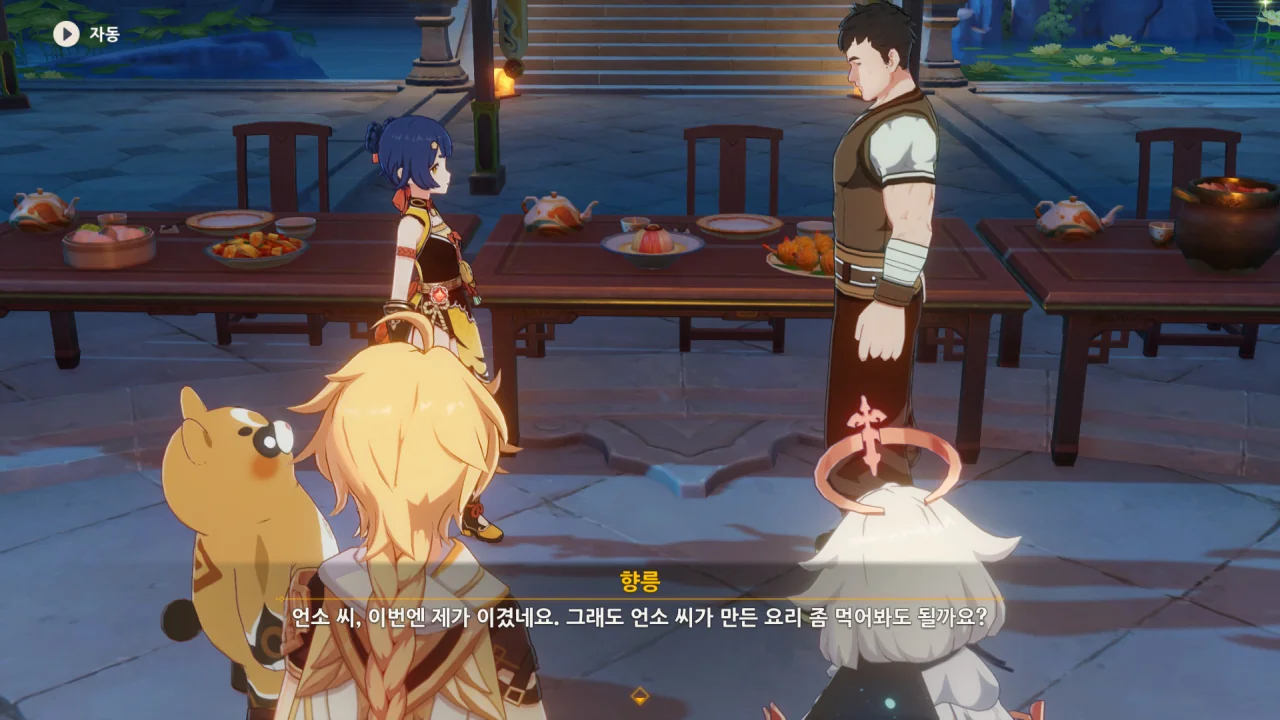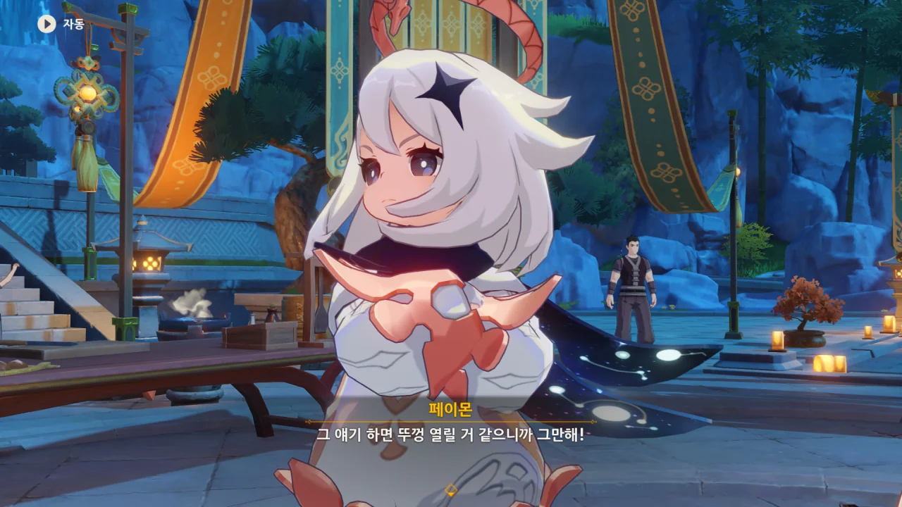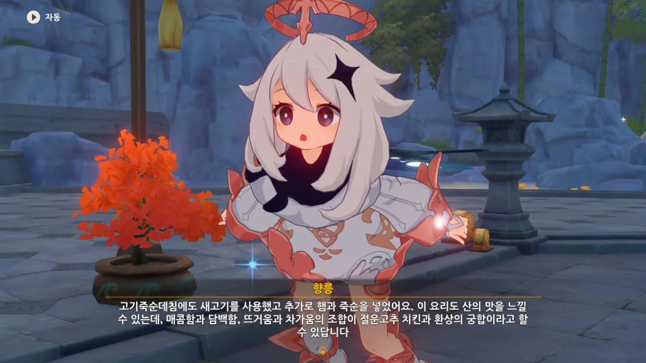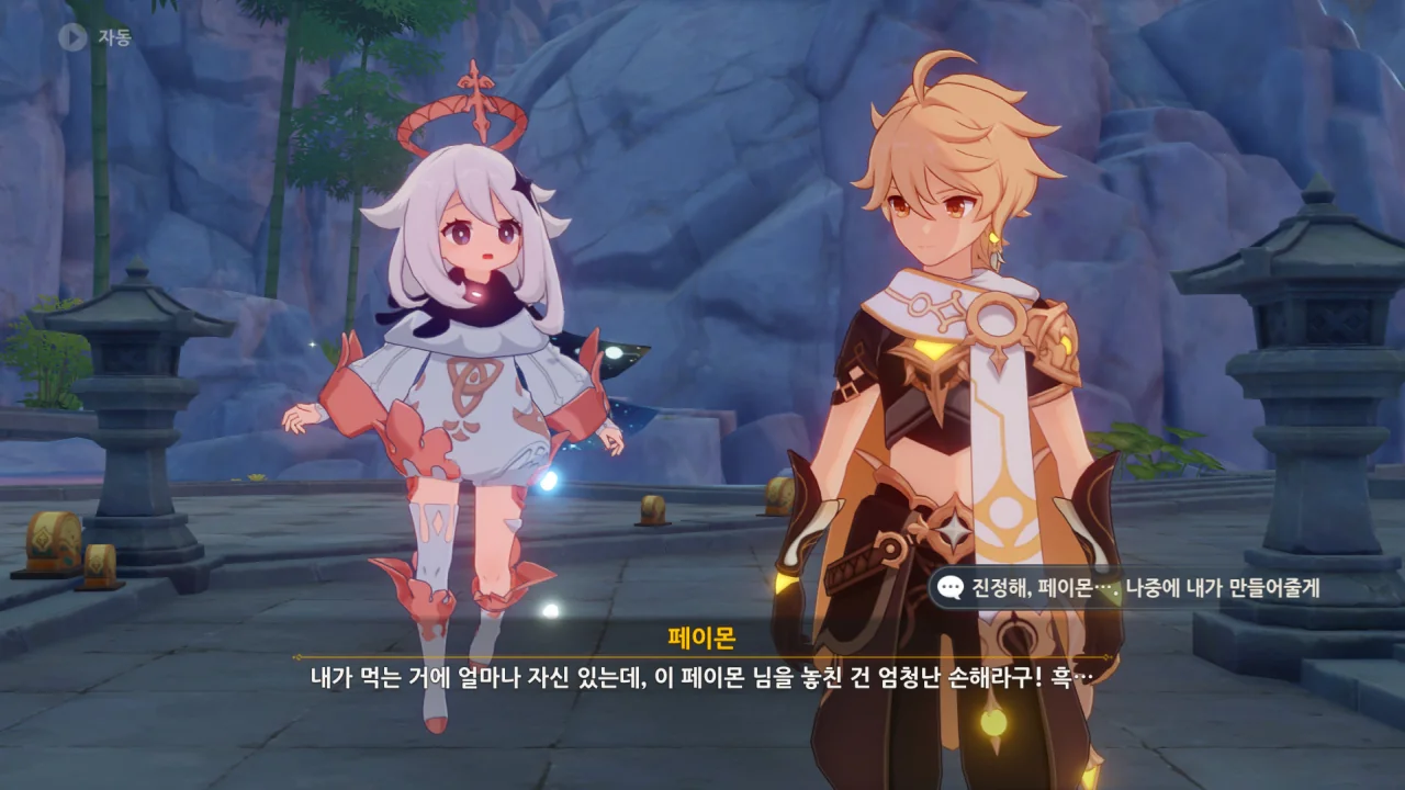 향릉의 음식 설명을 듣는 페이몬이 입을 '오…" 하며 벌리는데, 아마 저 입가에는 지금 침이 줄줄 흐르고 있을 것이다. 요 귀여운 녀석.