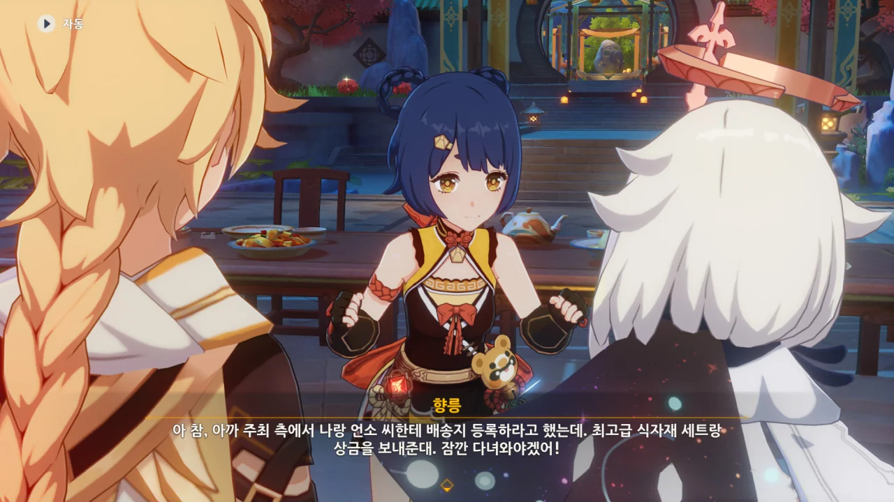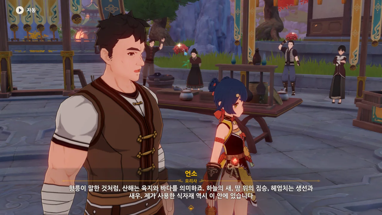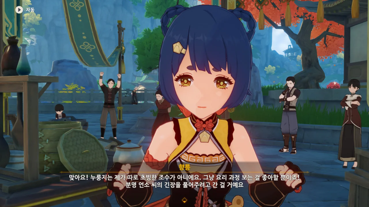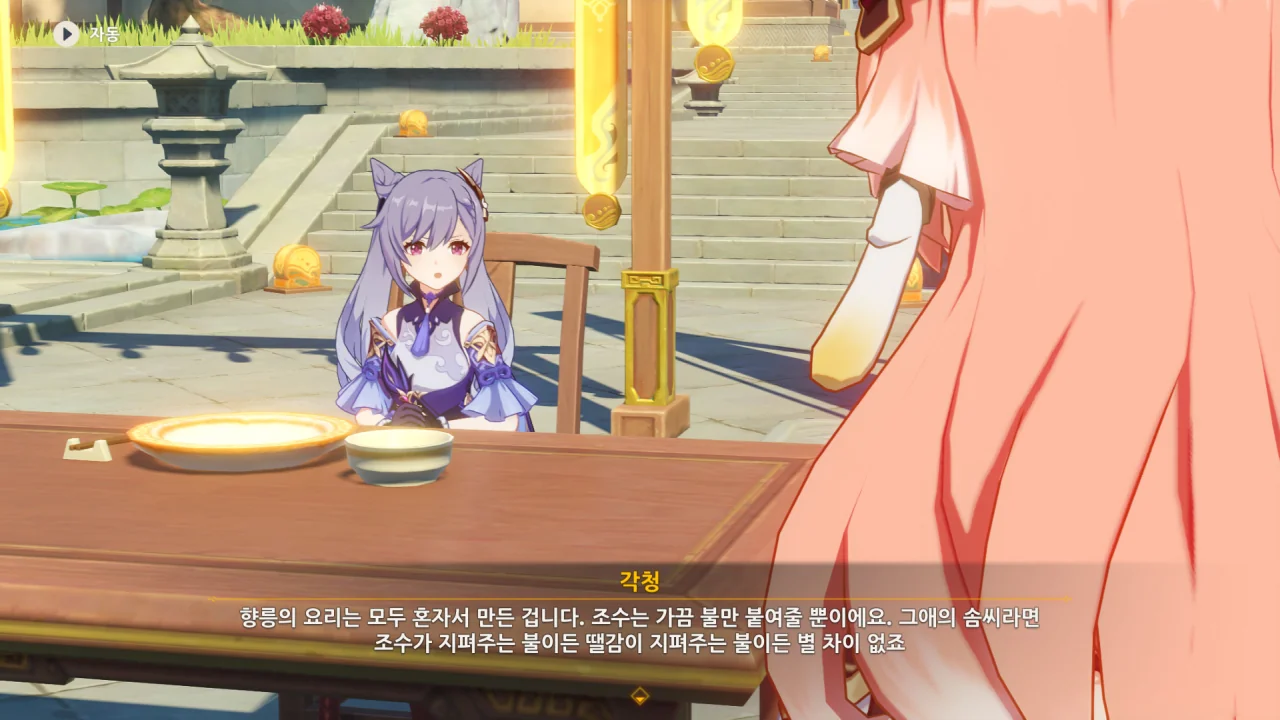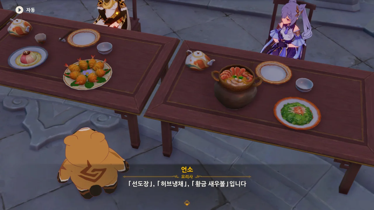 향릉의 음식 설명을 듣는 페이몬이 입을 '오…" 하며 벌리는데, 아마 저 입가에는 지금 침이 줄줄 흐르고 있을 것이다. 요 귀여운 녀석.