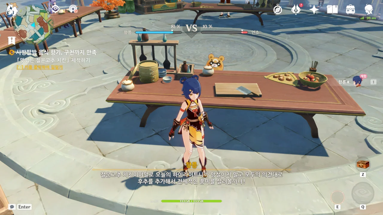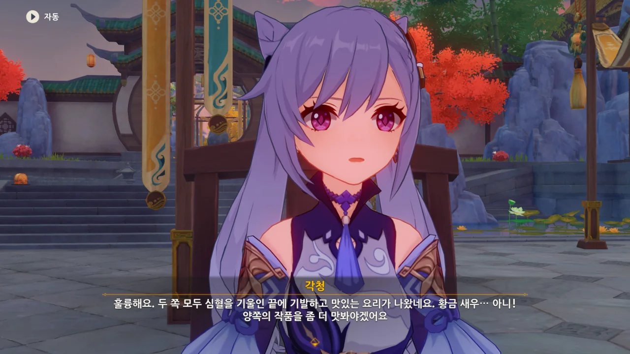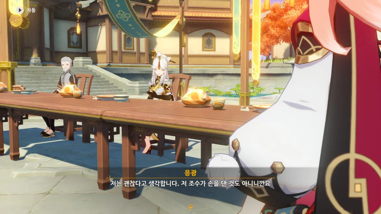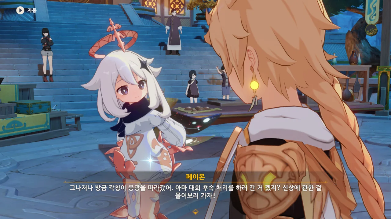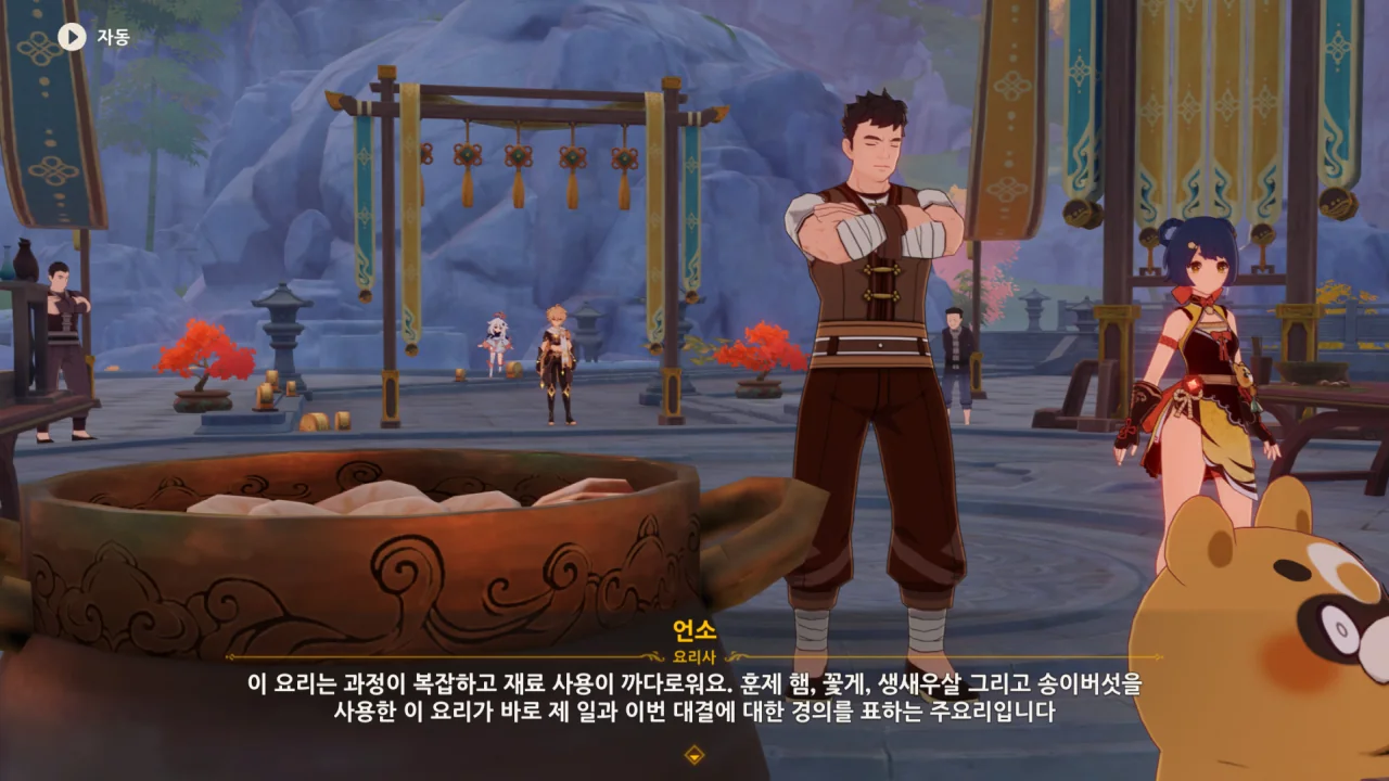 향릉의 음식 설명을 듣는 페이몬이 입을 '오…" 하며 벌리는데, 아마 저 입가에는 지금 침이 줄줄 흐르고 있을 것이다. 요 귀여운 녀석.