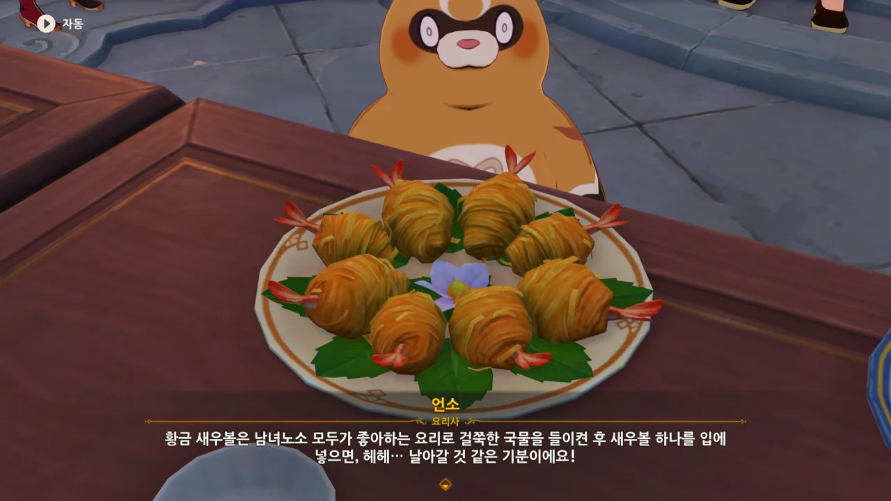 일본에서 원신 1주년을 기념해 요리 대회가 열린 적이 있었는데, 거기서 황금 새우볼을 실제로 만든 사진을 본 적이 있었다.