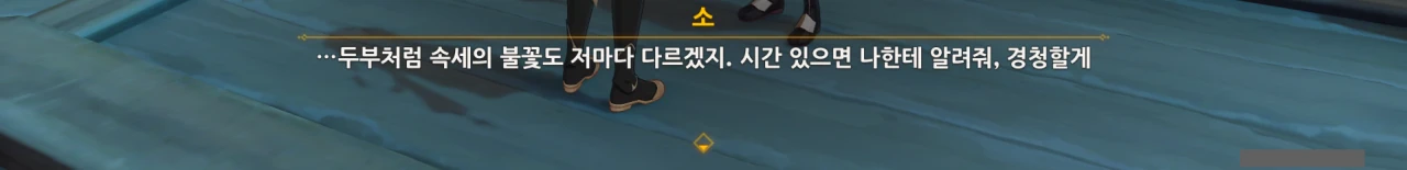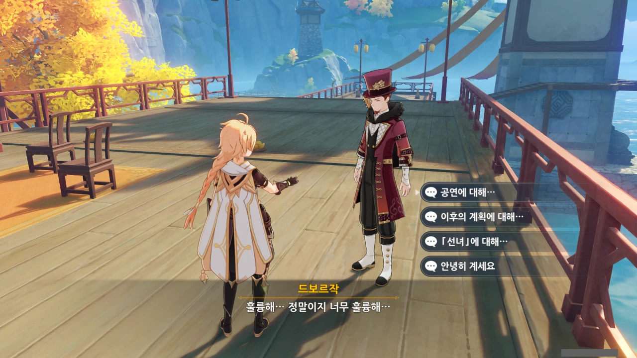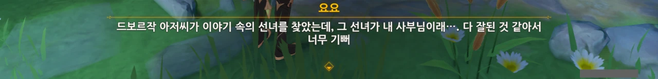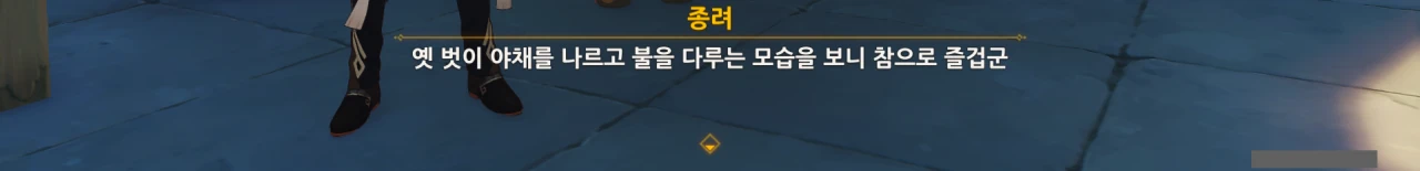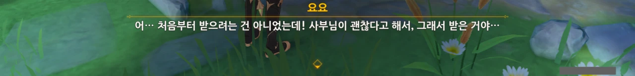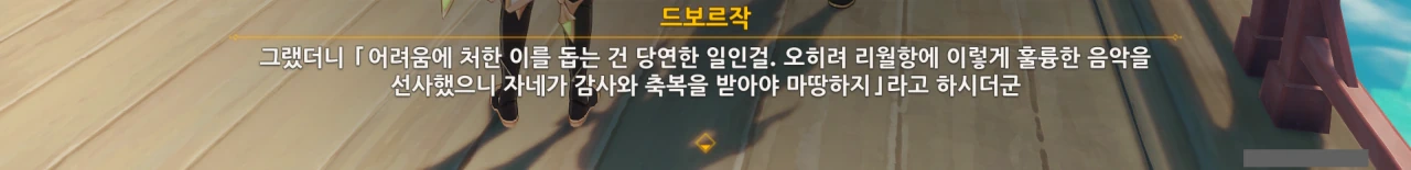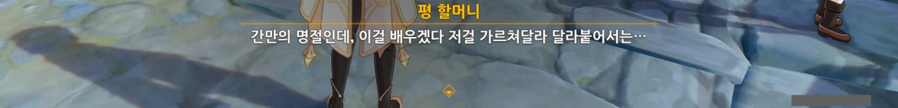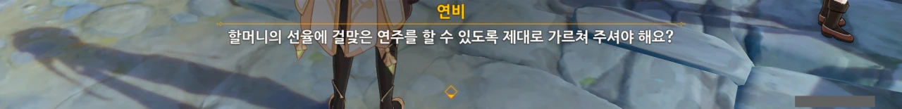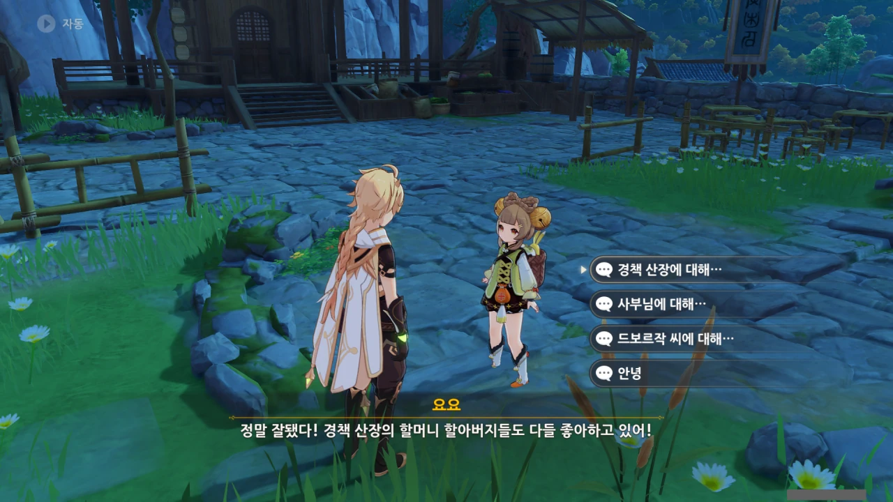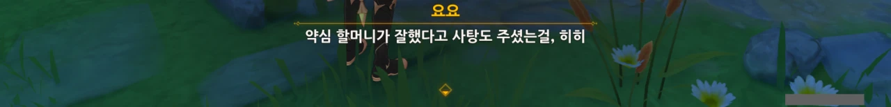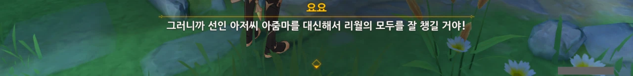 경책 산장은 아무래도 리월항에서 거리가 꽤 되니까 요요가 어르신들에게 노래를 해드린 것 같다.