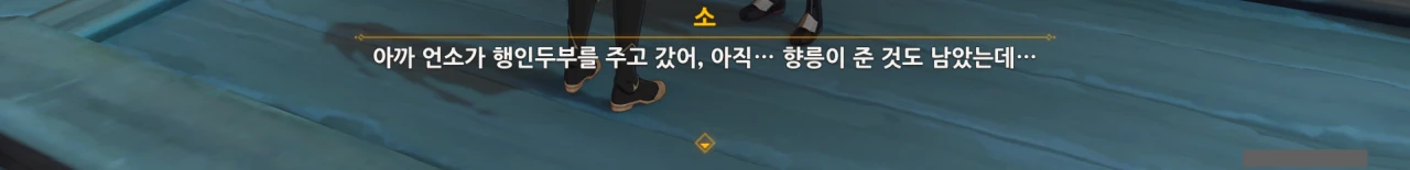 아직 향릉이 준 행인두부도 다 먹지 못했는데, 언소가 또 행인두부를 주고 갔다고 한다. 결국 다 먹지 못하고 받은 행인두부의 일부를 여행자에게 나눠주는 소.