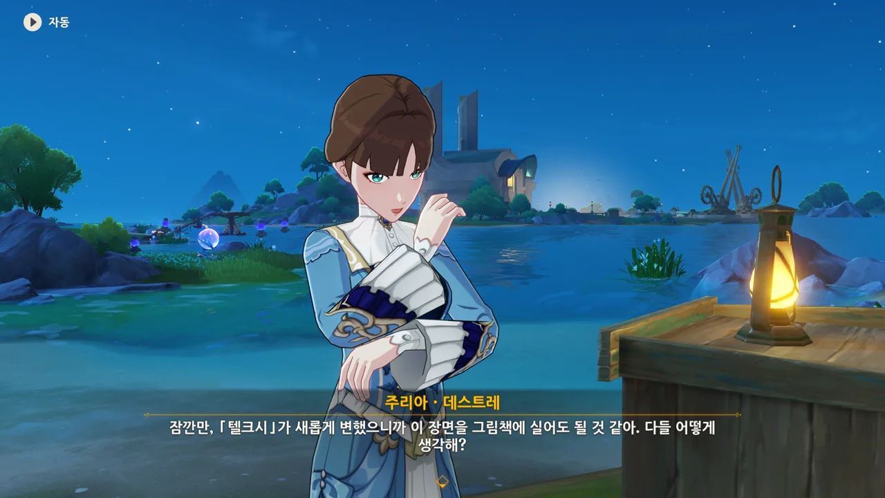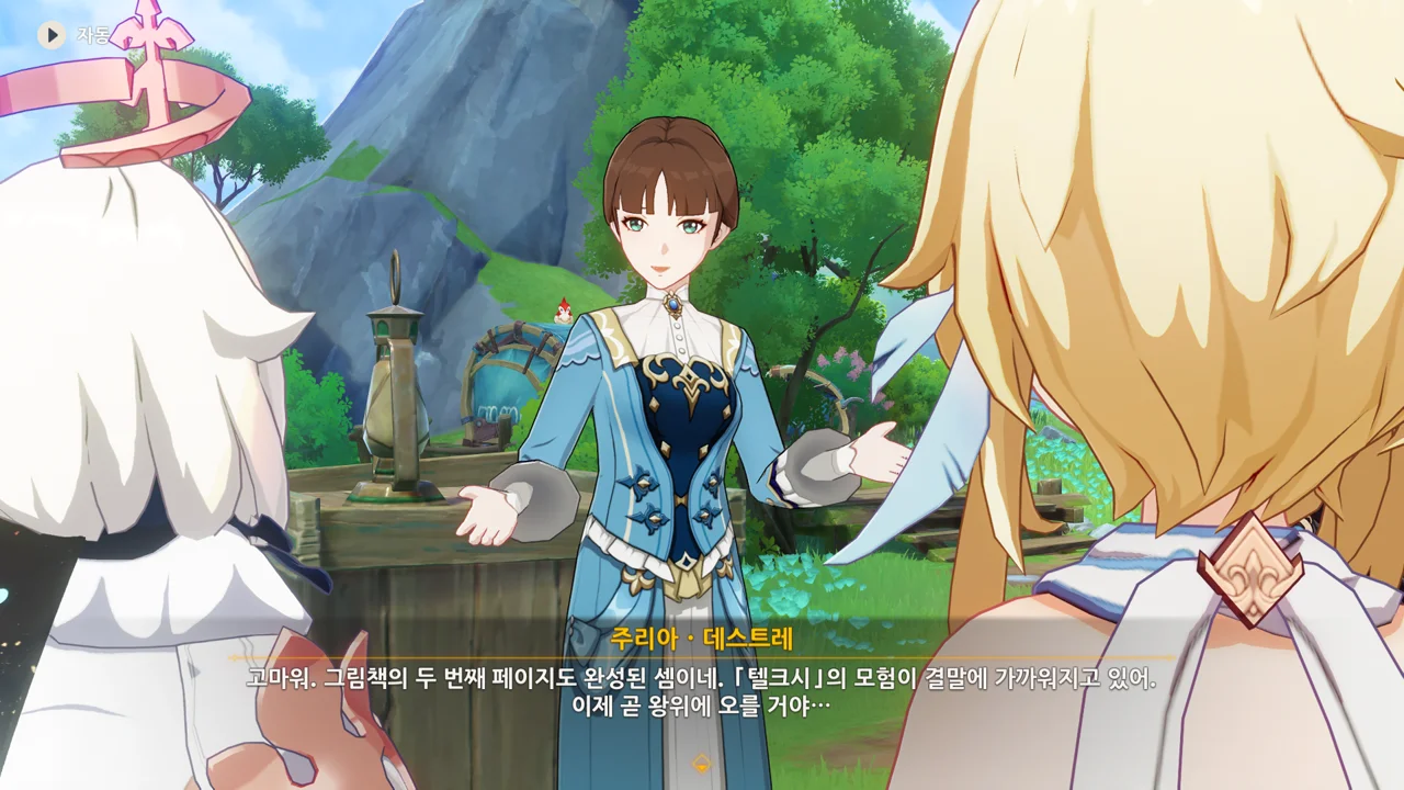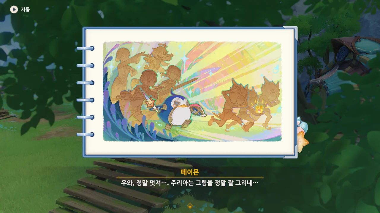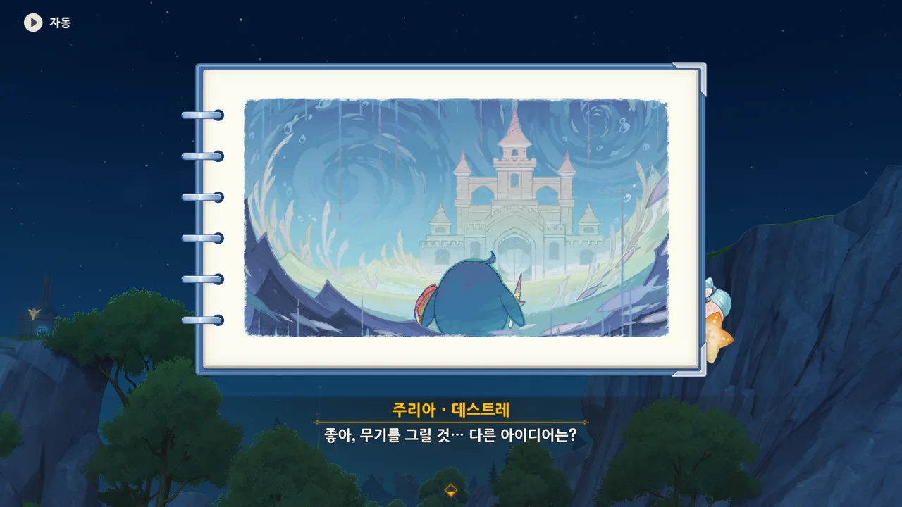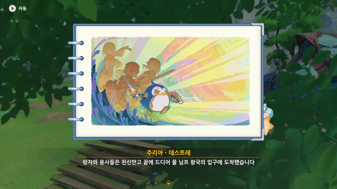 물 님프 왕국으로 출발하기 전, 주리아가 텔크시의 새로운 모습을 그림책에 싣자고 한다.