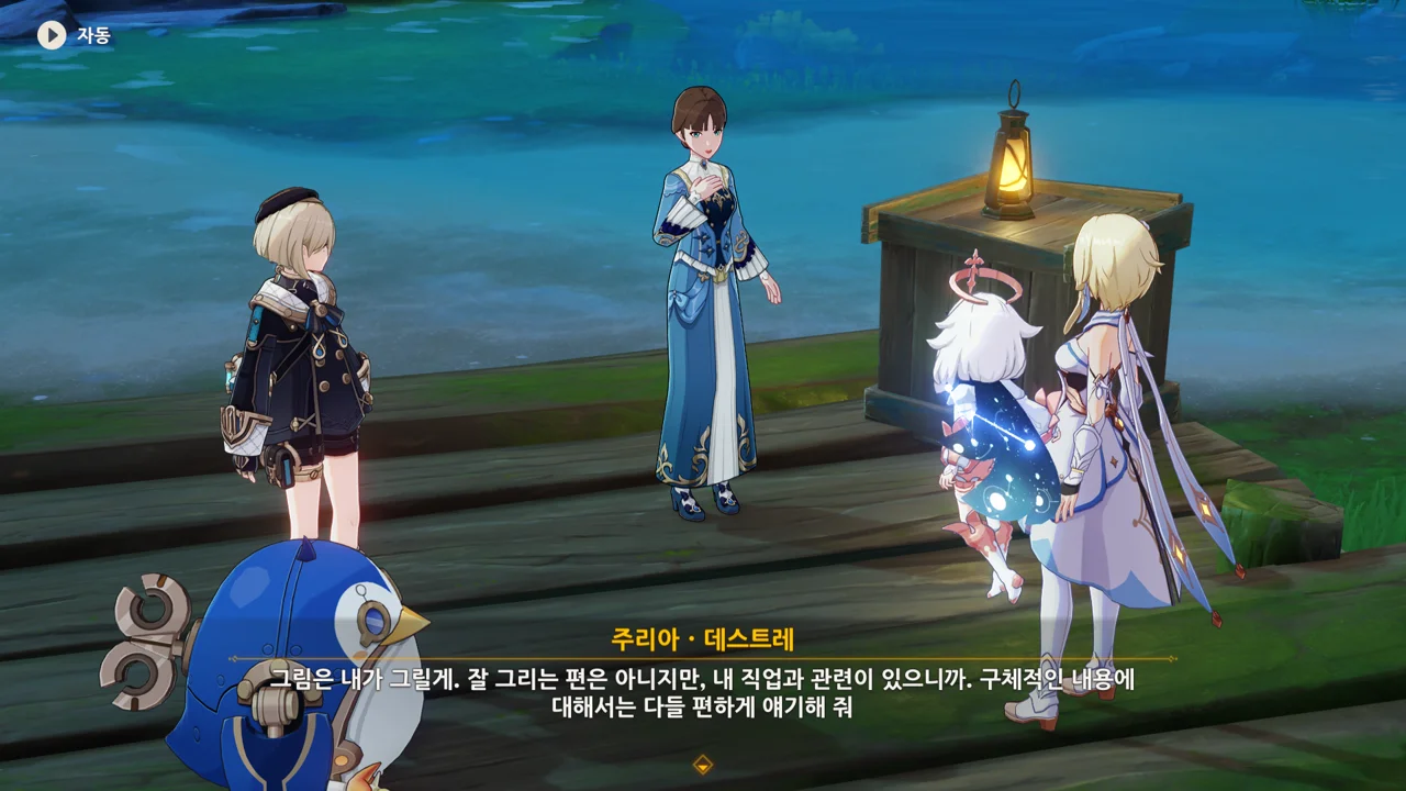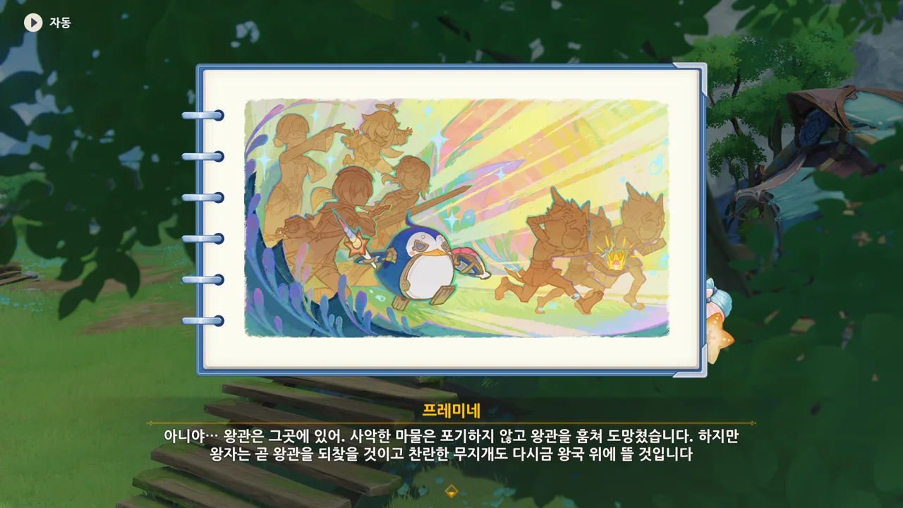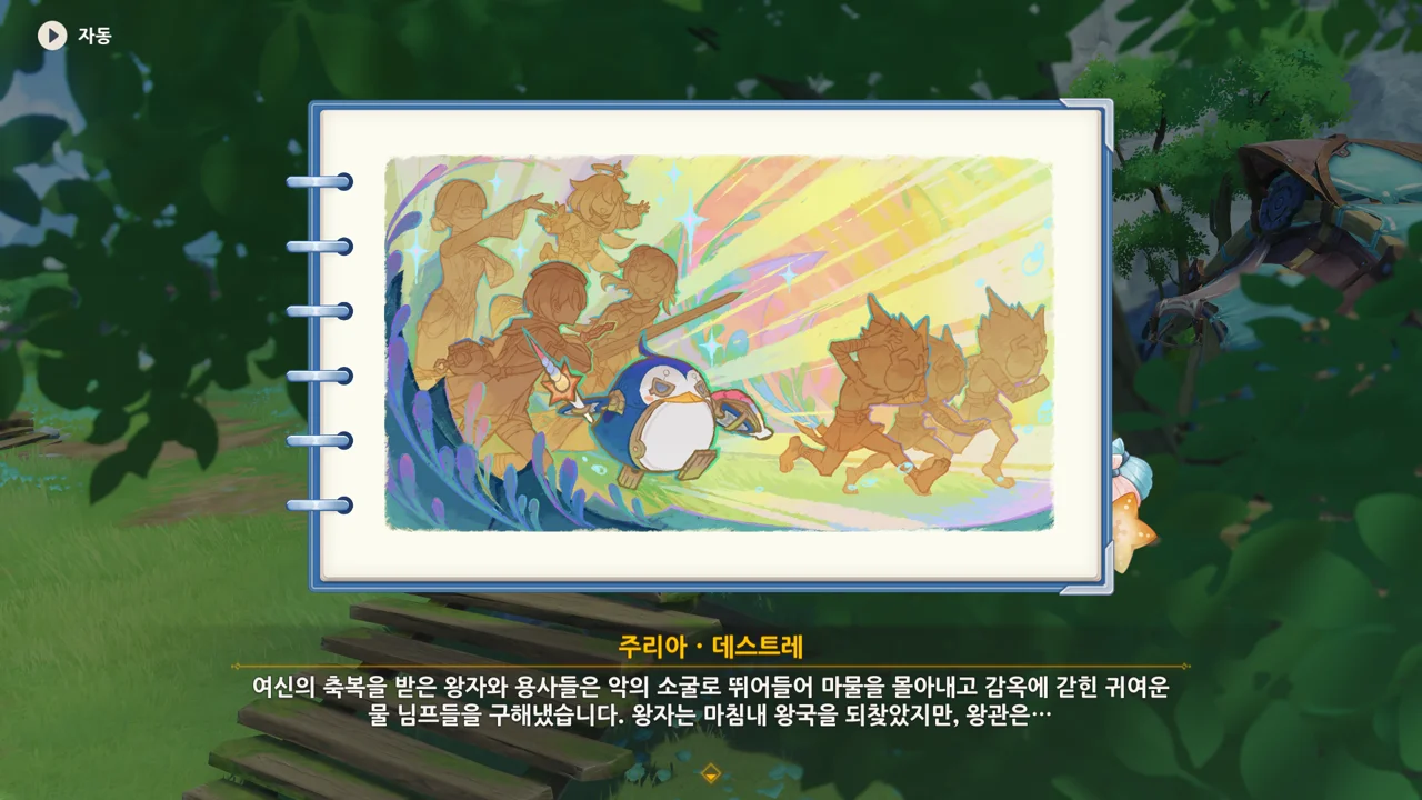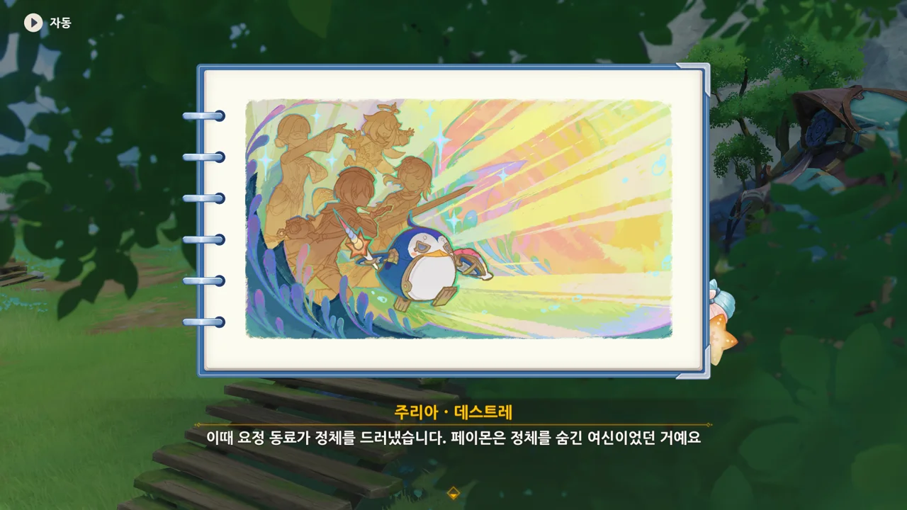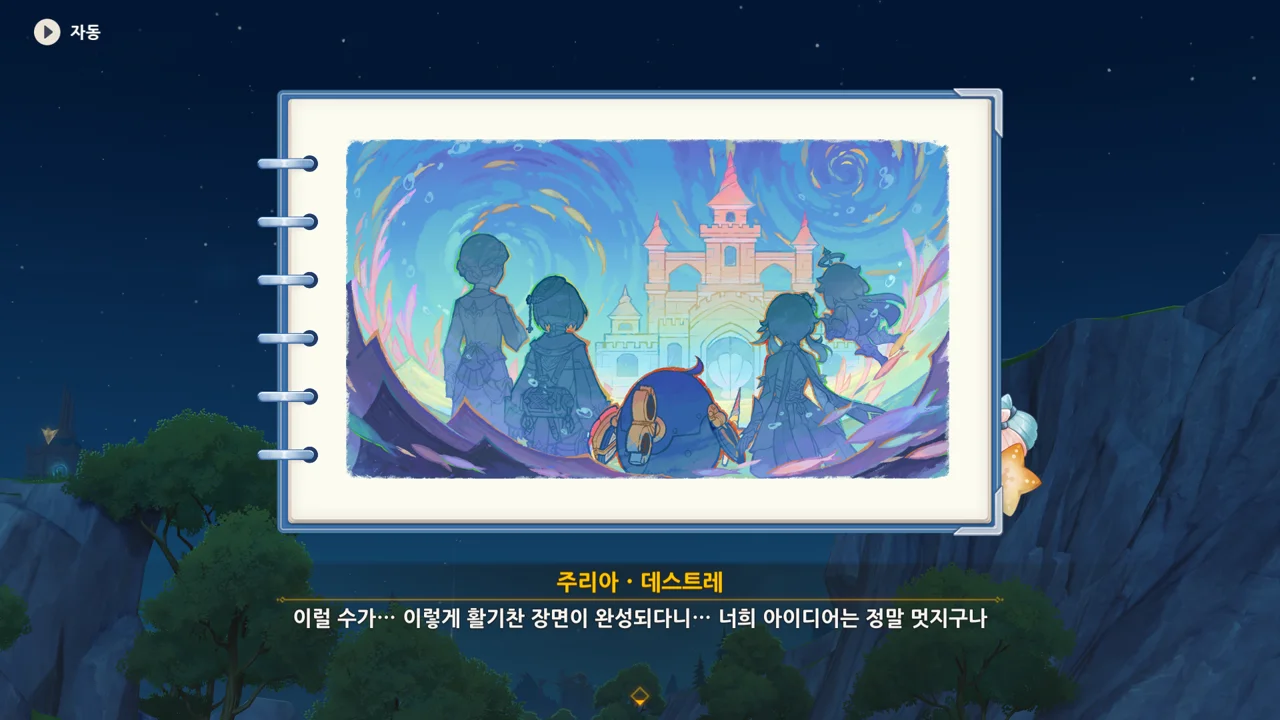 물 님프 왕국으로 출발하기 전, 주리아가 텔크시의 새로운 모습을 그림책에 싣자고 한다.