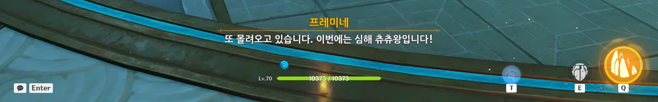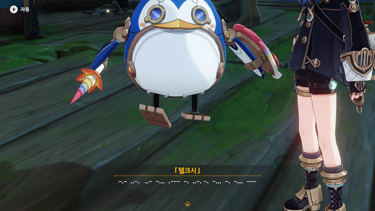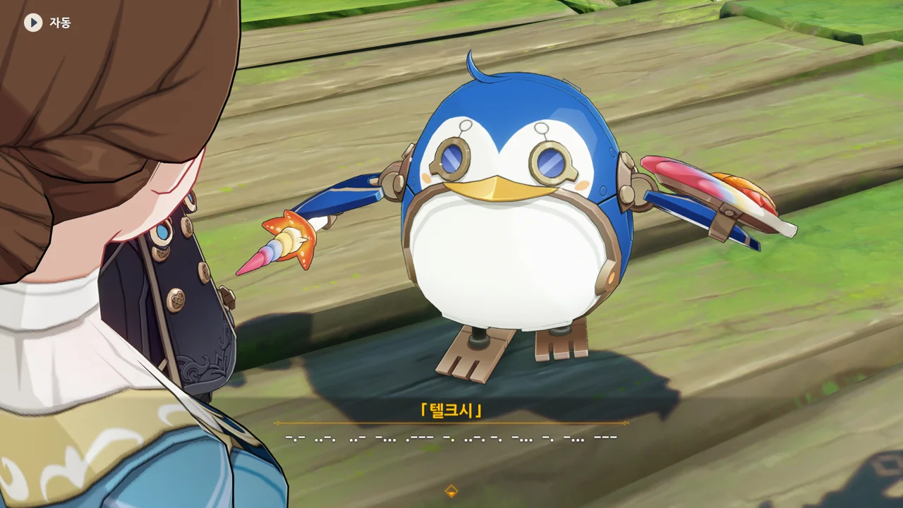느닷없이 공격해 오는 츄츄족 때문에 텔크시가 말하다 말고 깜짝 놀란 듯하다.