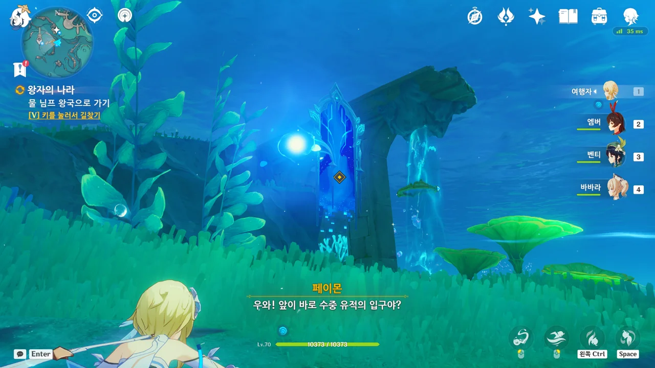 이벤트 비경 입구를 이렇게 물속에서 보게 되니, 뭔가 기묘한걸.