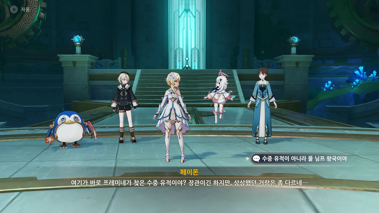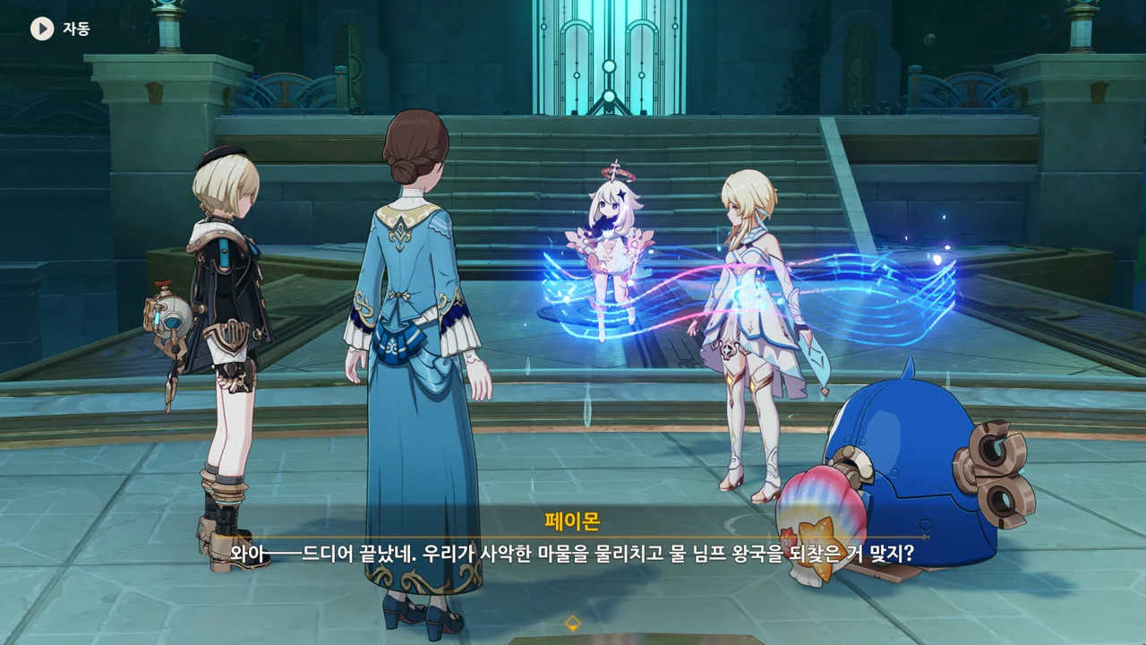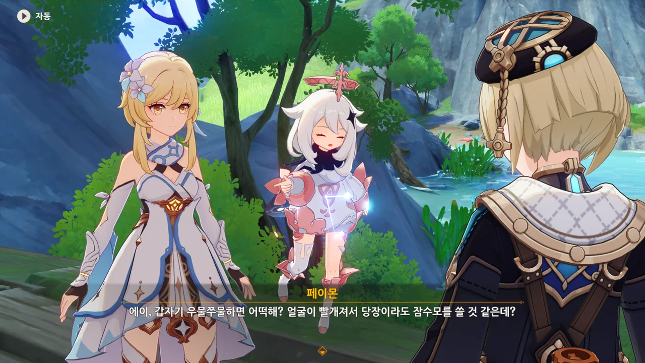 갑자기 '물 님프 왕국을 수호하는 여신 페이몬" 역할을 자처한 페이몬.