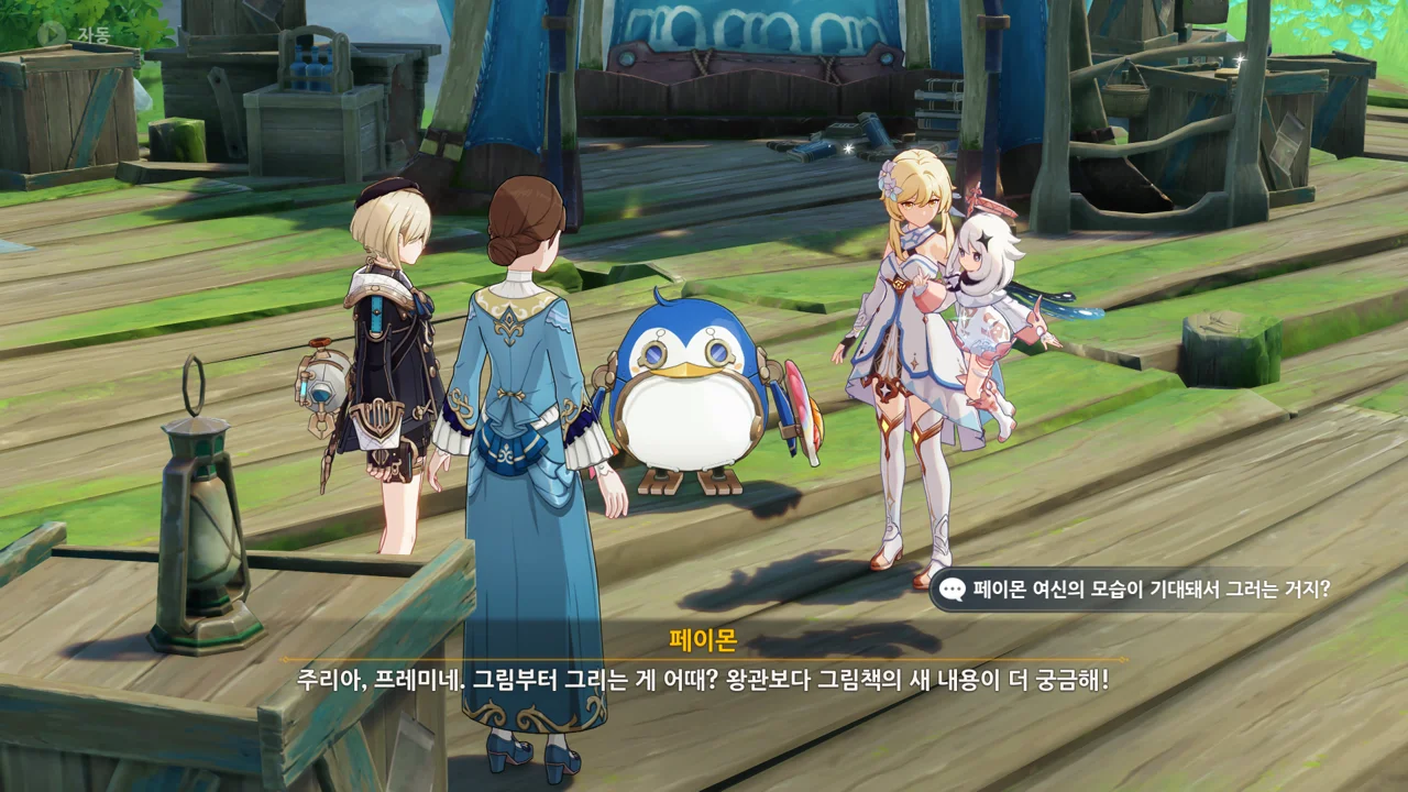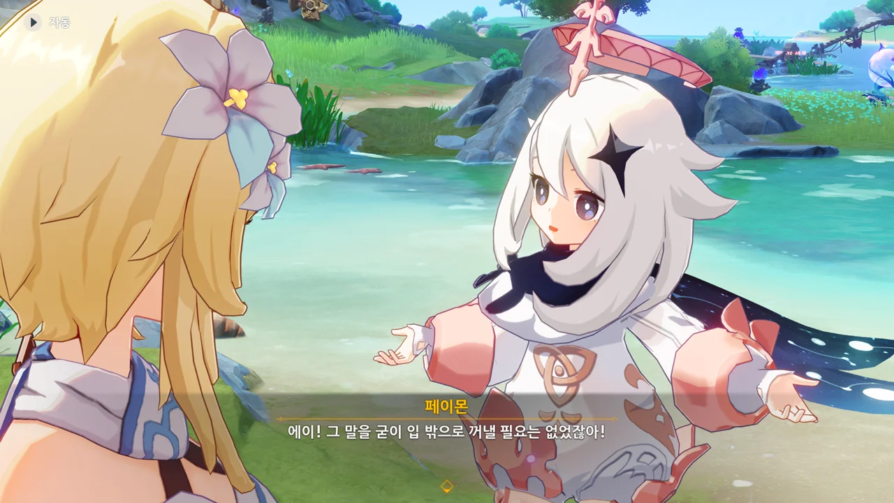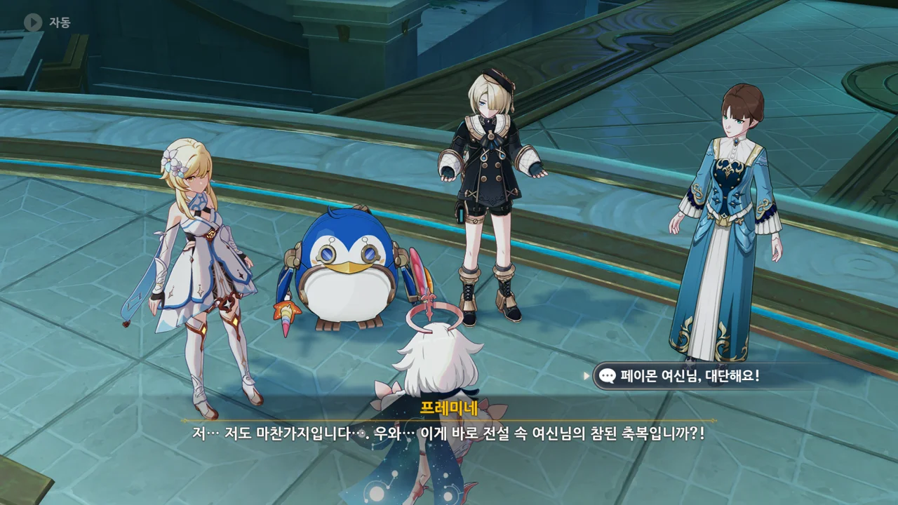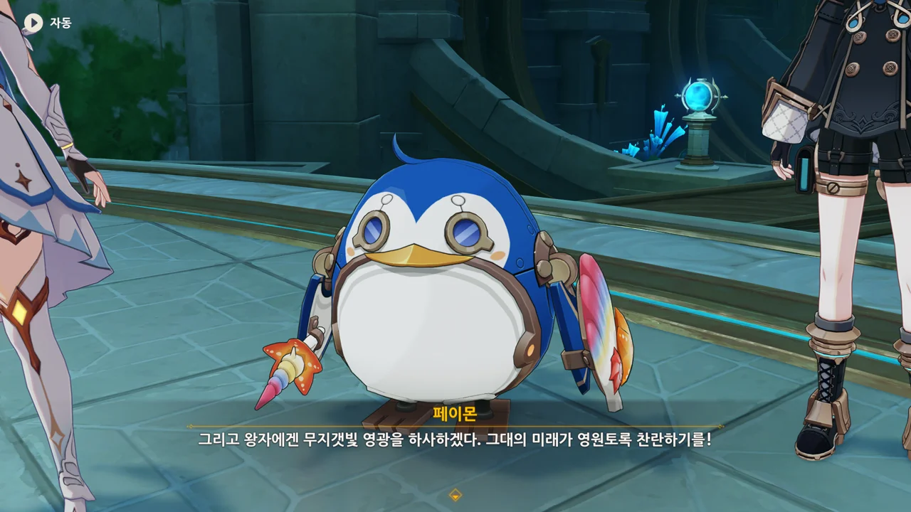 갑자기 '물 님프 왕국을 수호하는 여신 페이몬" 역할을 자처한 페이몬.