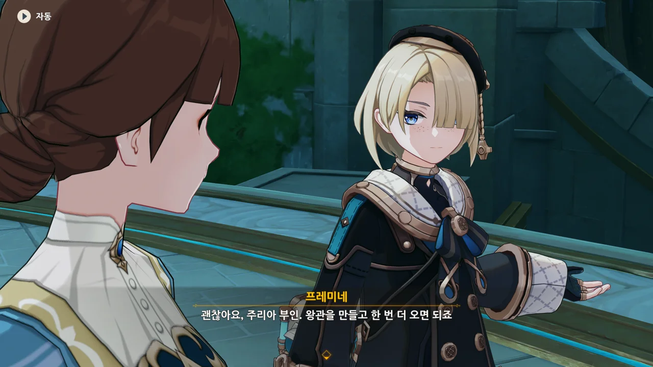 프레미네는 왕관 받침대를 만들 부품을 폰타인성에서 살 예정이라고 한다.