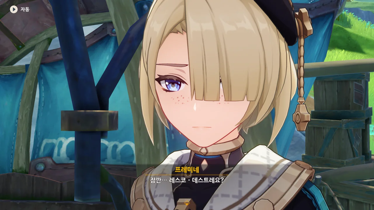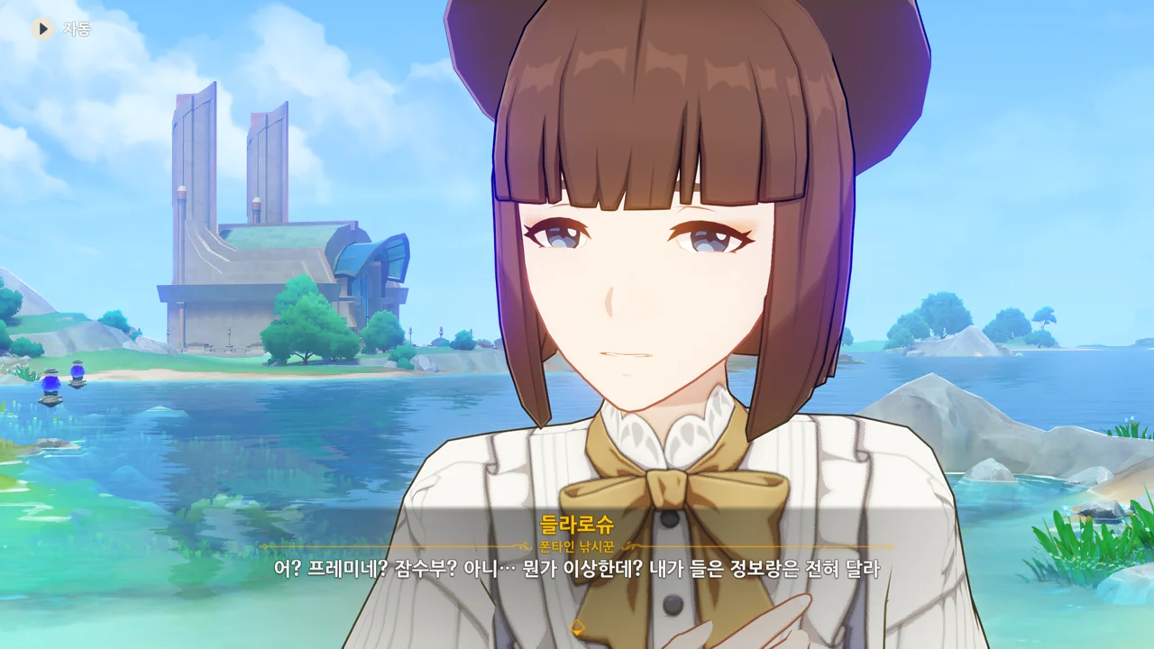 프레미네는 잠수모를 여행자에게 빌려준 탓에, 여행자가 지금 뭘 보고 있는지 전혀 모르고 있는 것 같다.