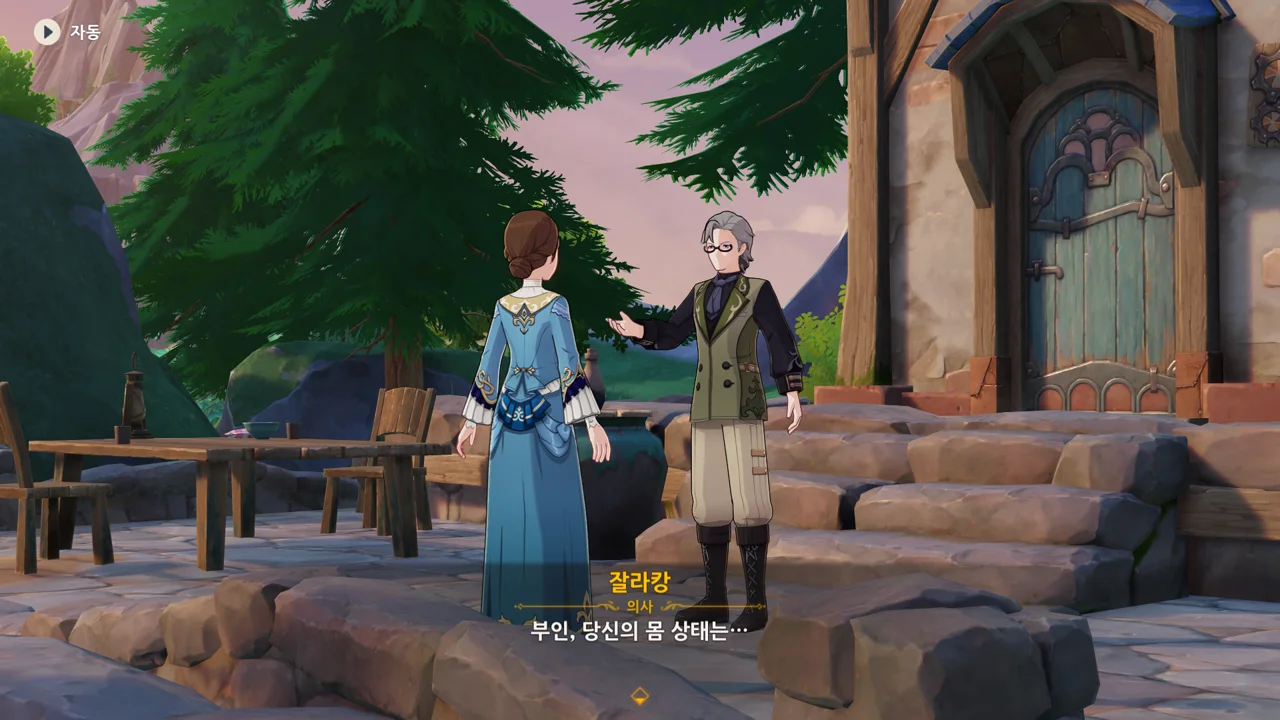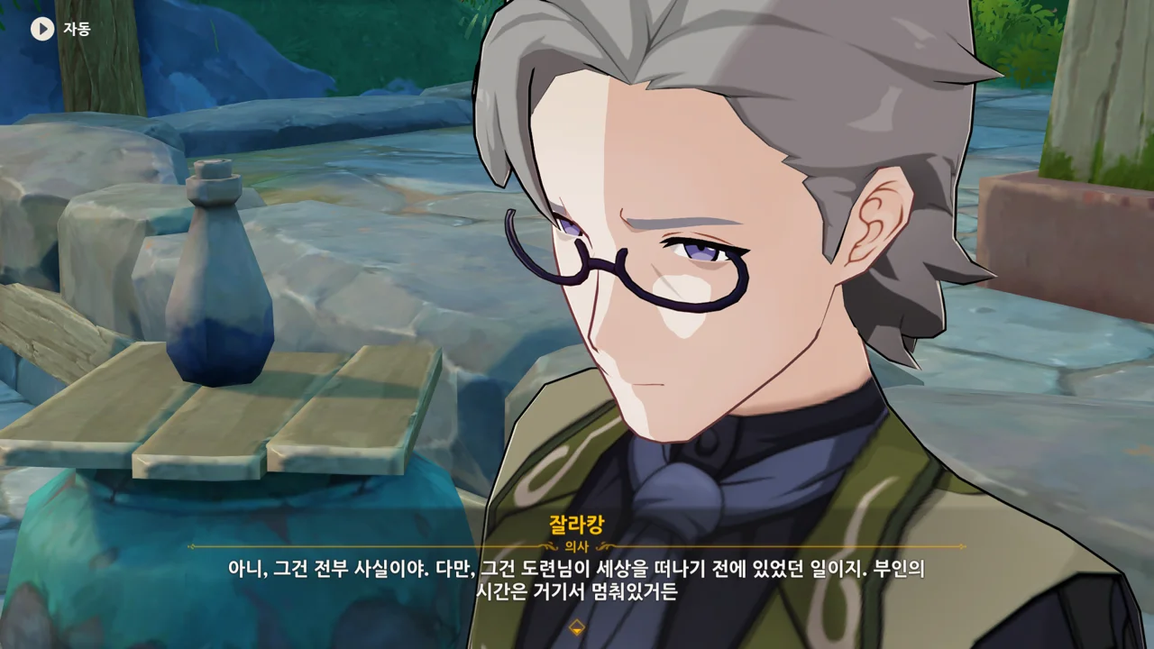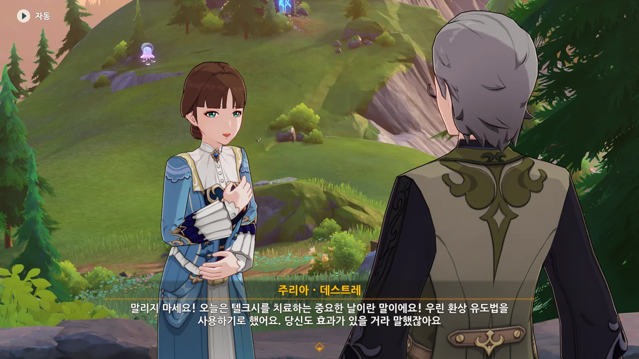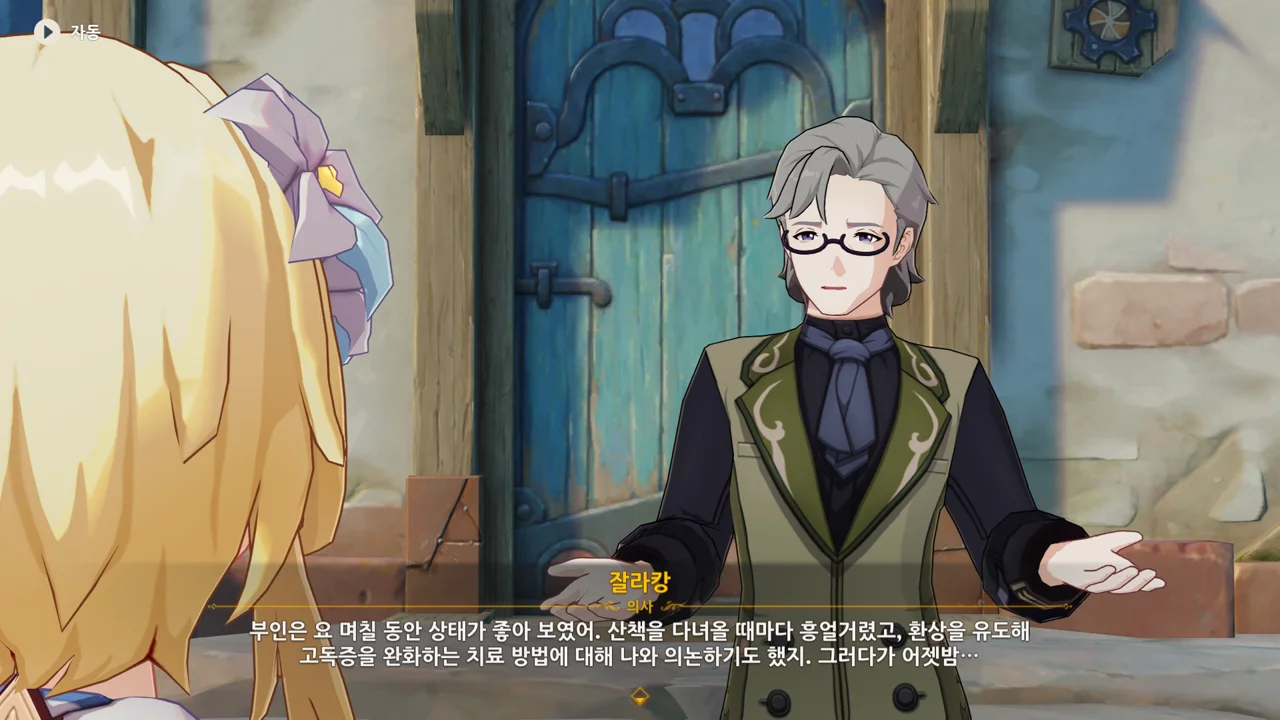 레스코를 위한 그림책을 만들며 주리아의 상태가 호전되었으니, 그림책을 완성하면 주리아의 상태가 좋아질 거라고 말하는 프레미네.