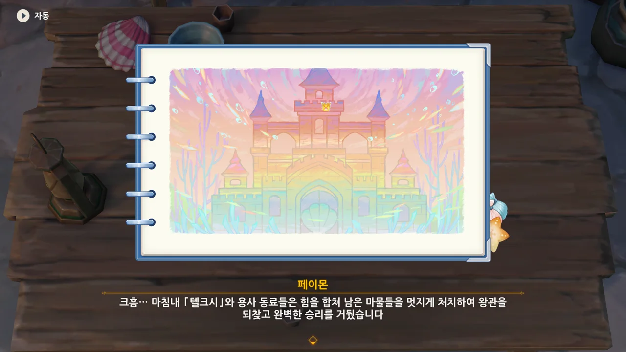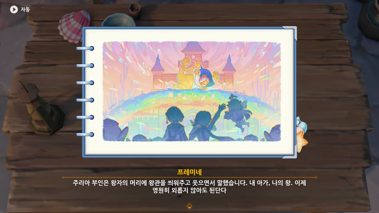 이 이야기를 완성해 주리아에게 보여주면 주리아가 자길 짓누르고 있는 감정의 무게에서 어느 정도 벗어나 현실을 직시할 수 있길 바라며 서둘러 물 님프 왕국으로 출발하기로 했다.