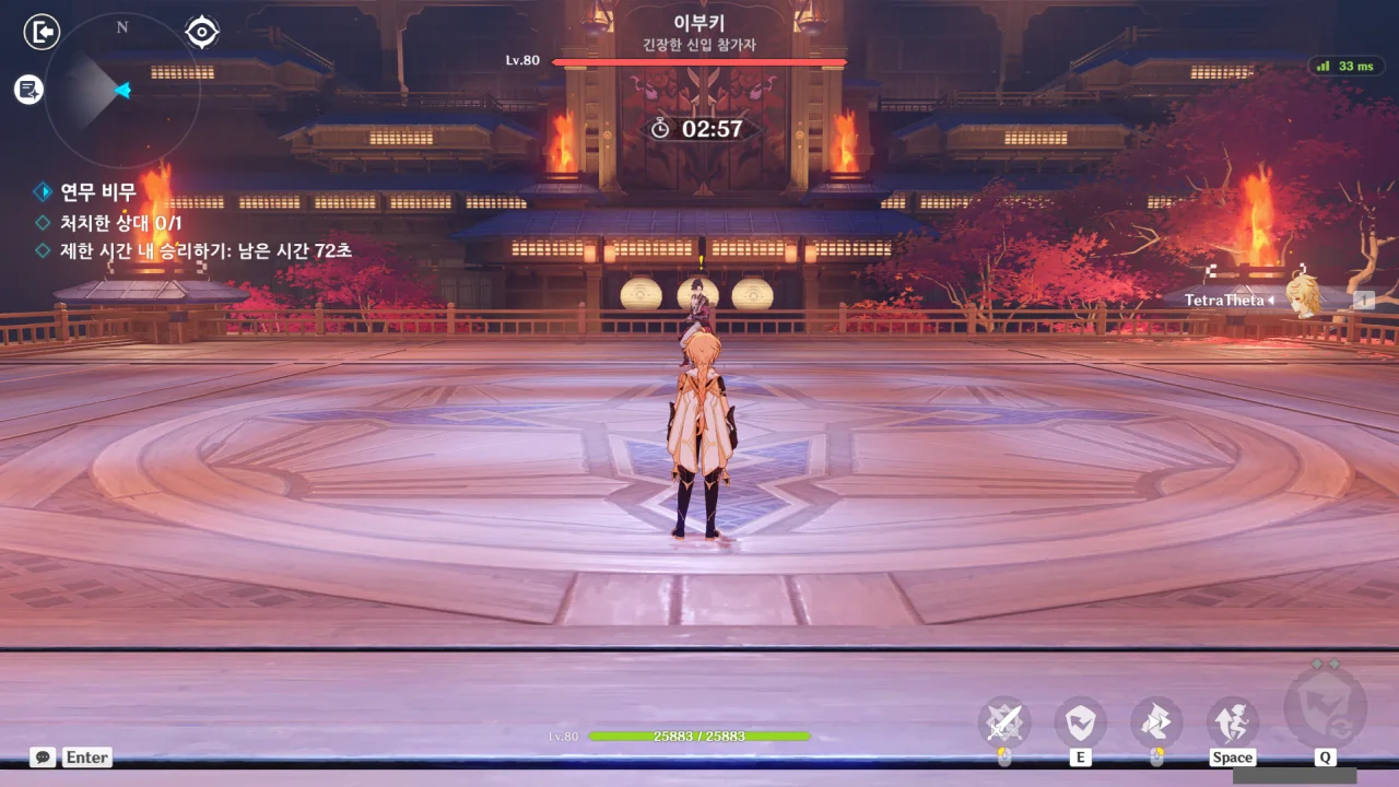 첫 번째 상대는 '긴장한 신입 참가자 - 이부키'였다. 일반 병사 NPC 답게 패턴이 단순해서 반격기로 체력을 쏠쏠하게 깎아먹었다.