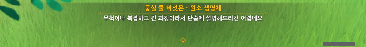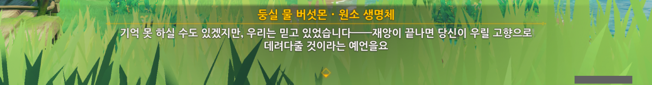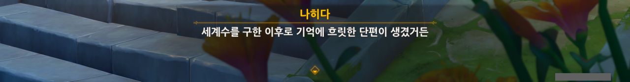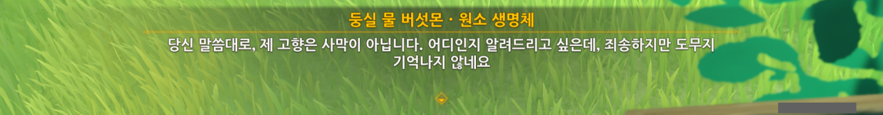 어쩌면 이 원소 생명체가 기억을 잃어버린 것도 나히다의 경우처럼 세계수 정화의 영향 때문일지도 모르겠다.