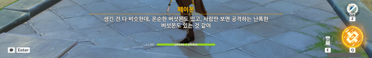 아까 말했다시피, 필드에서 만나는 버섯몬은 선공몹이지만, 이벤트 등에서 만나는 버섯몬은 비선공, 혹은 아군 취급이다. 방금 나히다와 대화했던 버섯몬도 따지고 보면 비선공이고 말이다.