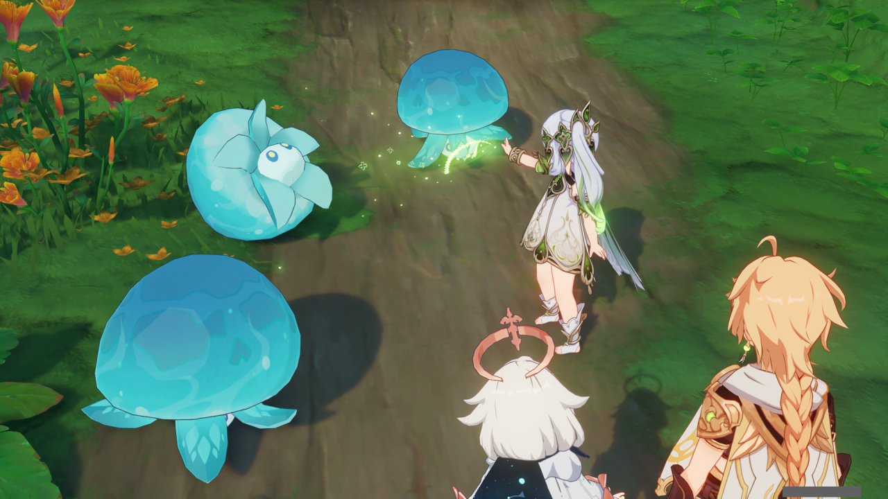 원소 생명체 버섯몬에 생긴 '구멍'을 메워주는 나히다.
