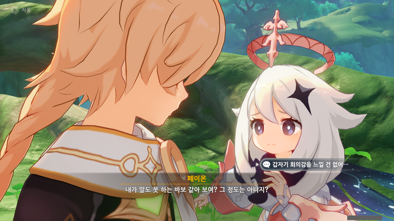 페이몬의 고개가 갸우뚱하는 모습이 너무 귀엽다.
