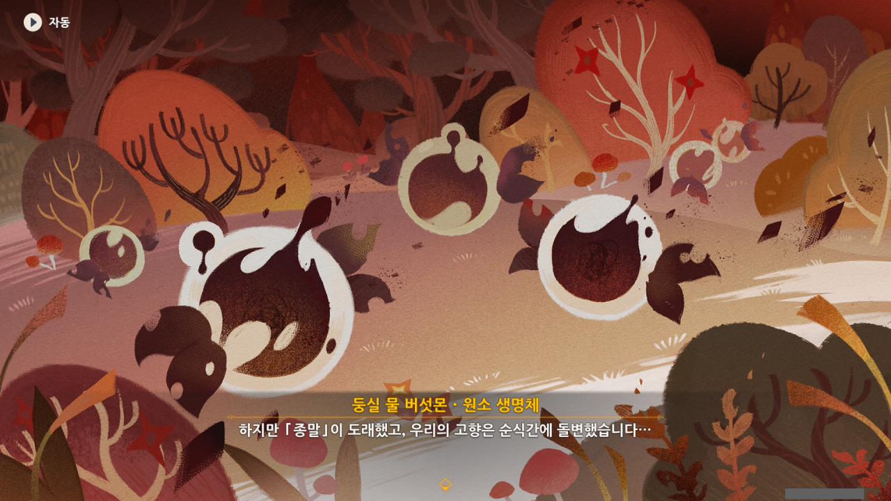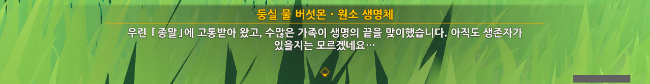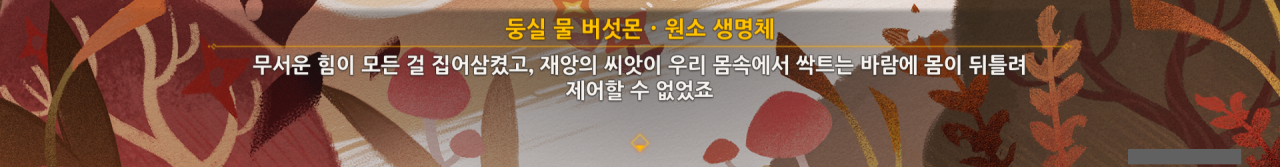 원소 생명체 버섯몬이 말하는 「종말」은 심연 혹은 금단의 지식과 연관된 것으로 보인다.