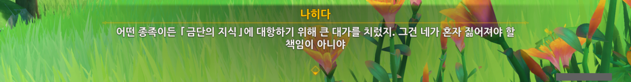 수메르 마신 임무를 진행하다 이 컷신을 보고 눈물을 글썽이지 않은 사람은 과연 그 심장이 뛰고 있는 것인지 의심해야겠지.