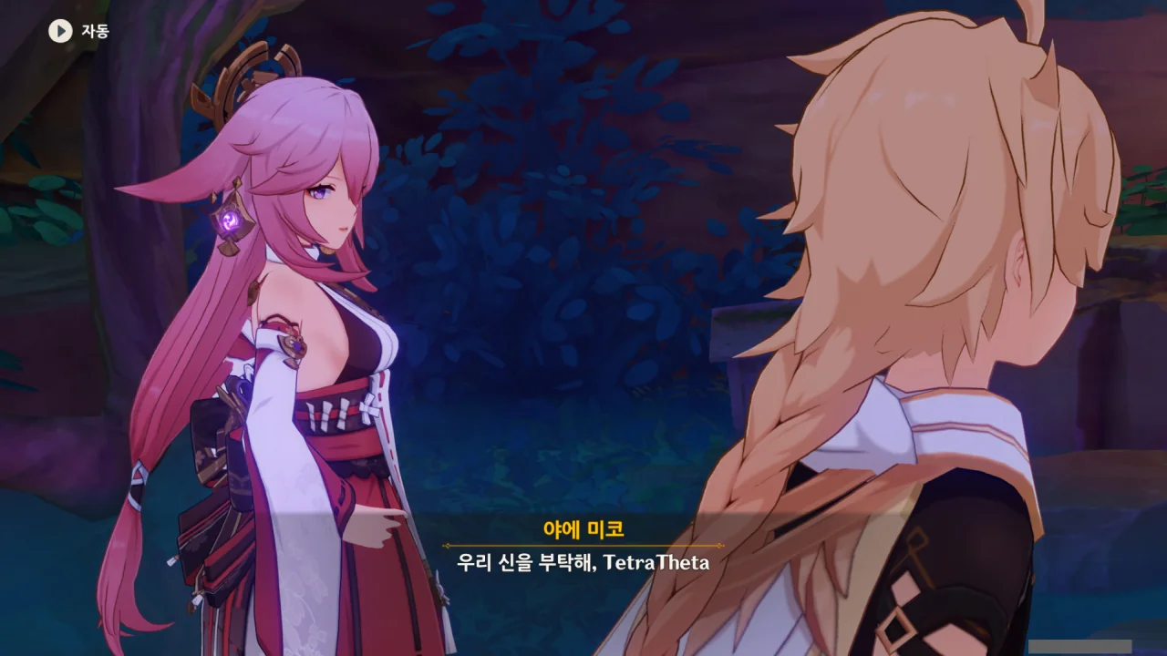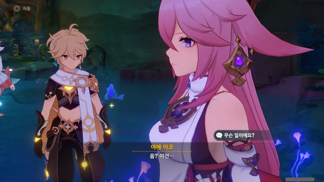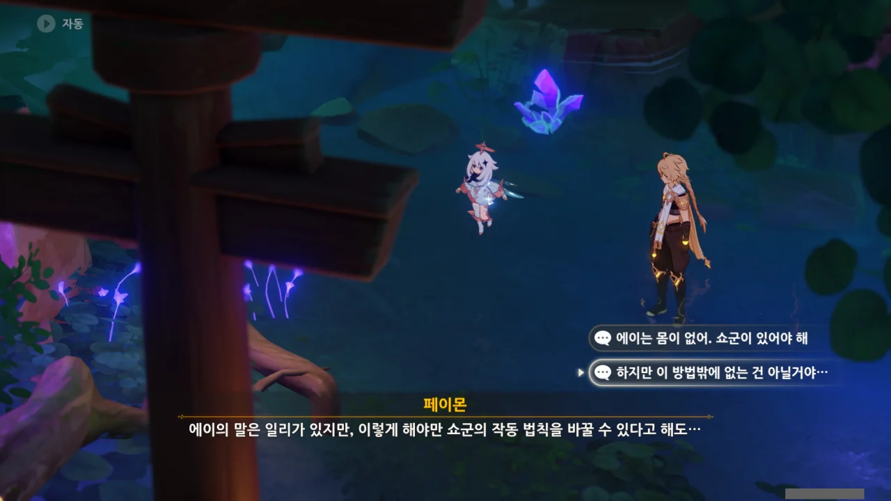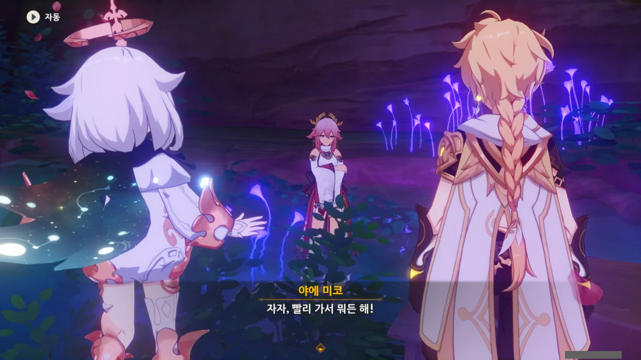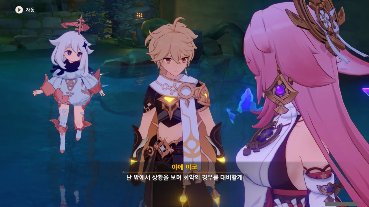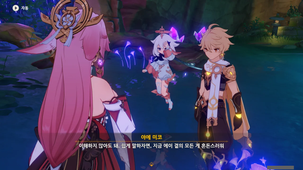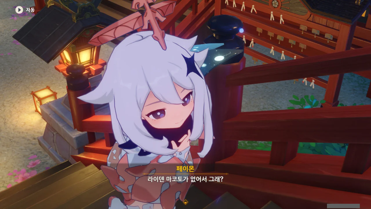 페이몬이 혼자 빼려고 하자, 여행자와 야에 미코가 쌍으로 페이몬에게 '그래서 안 갈 거야?'라고 한다.