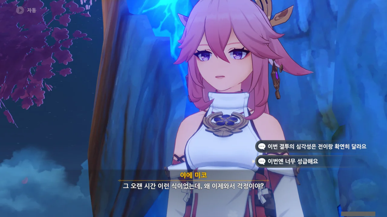 저렇게 까칠하게 말하는 걸 보면, 야에 미코도 여행자 못지않게 초조했던 모양이다.