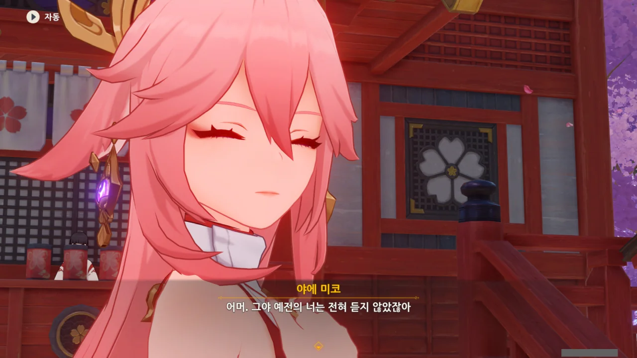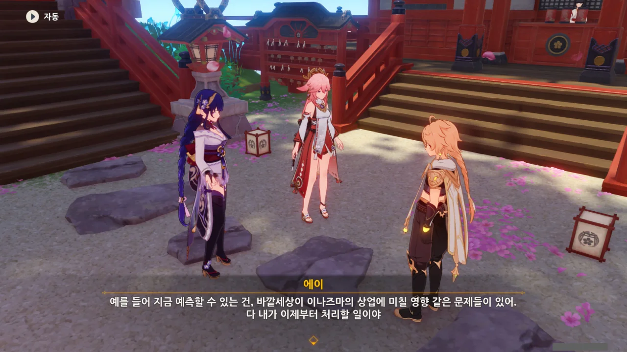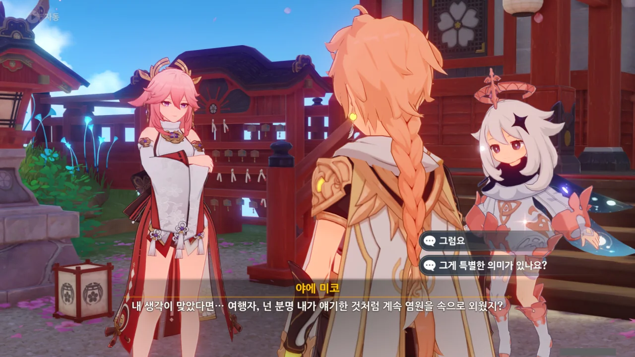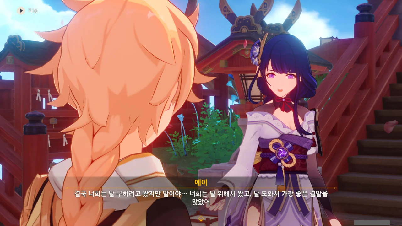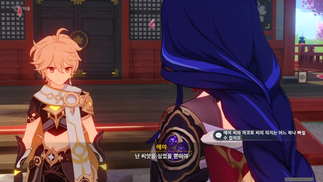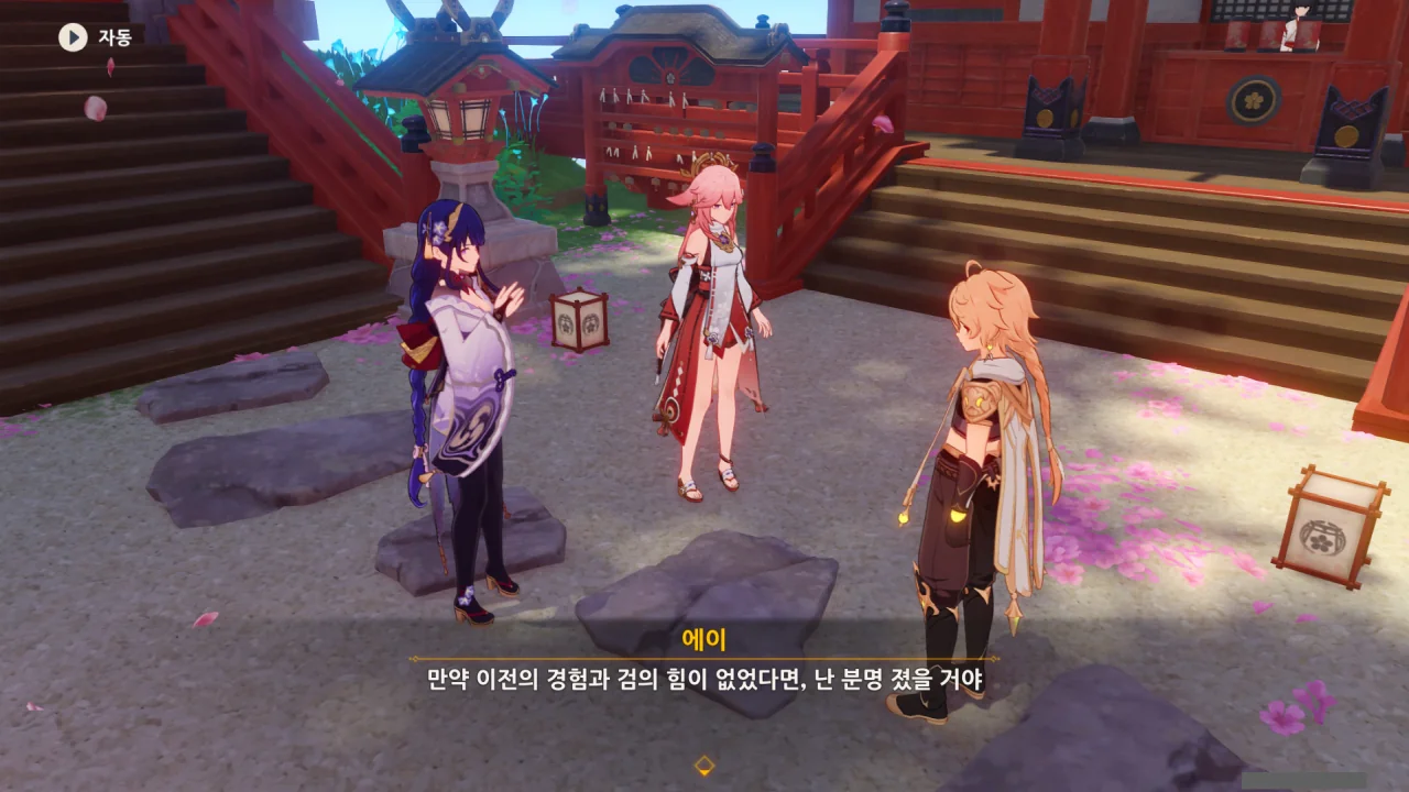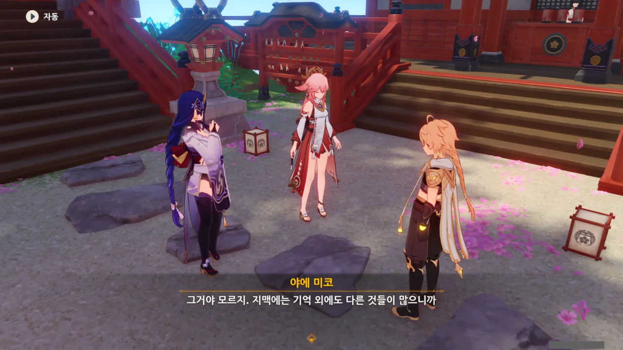 아직 라이덴 에이와 야에 미코가 사라지지 않고 있기에 말을 걸어보니 추가적인 대화 내용이 나타난다.