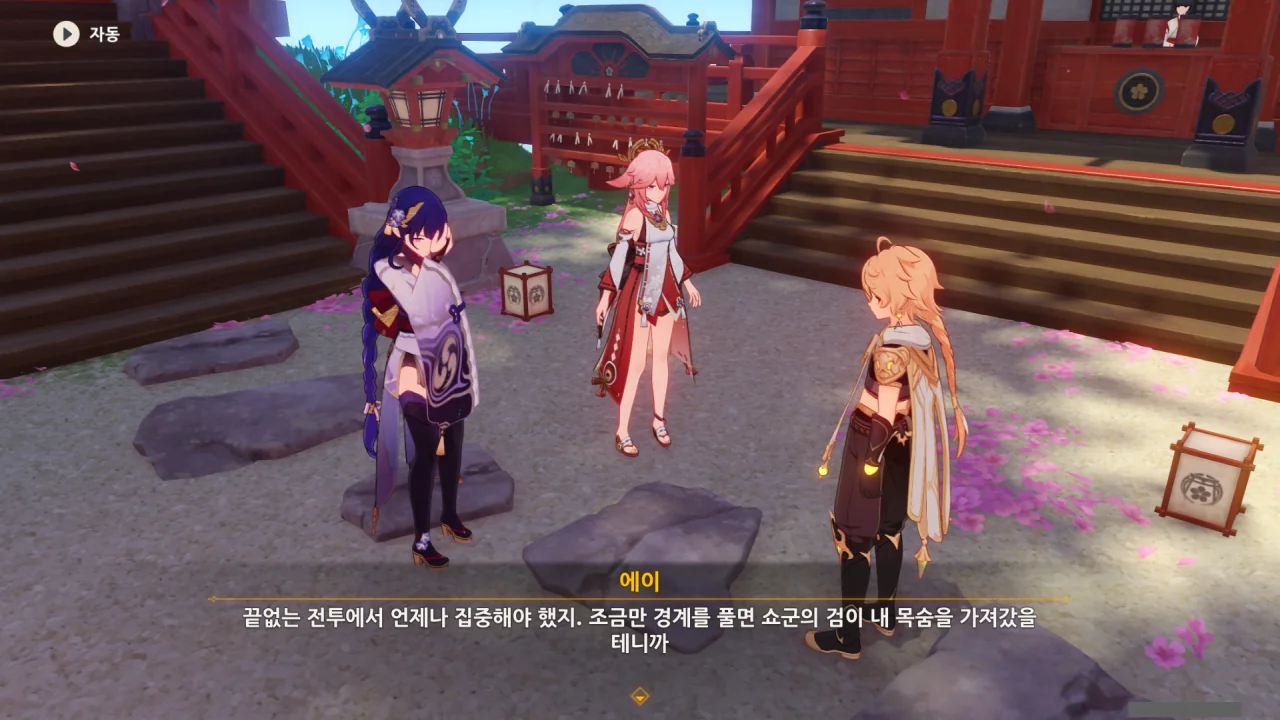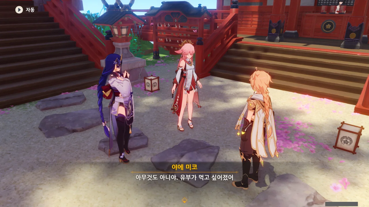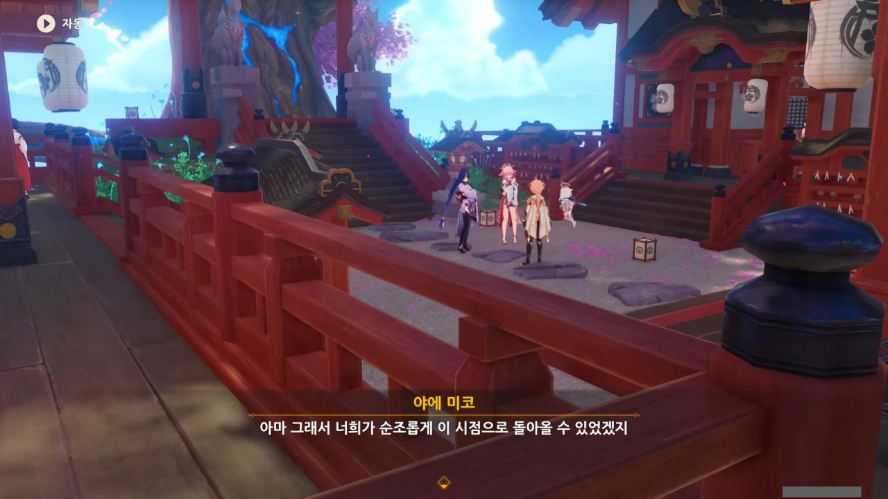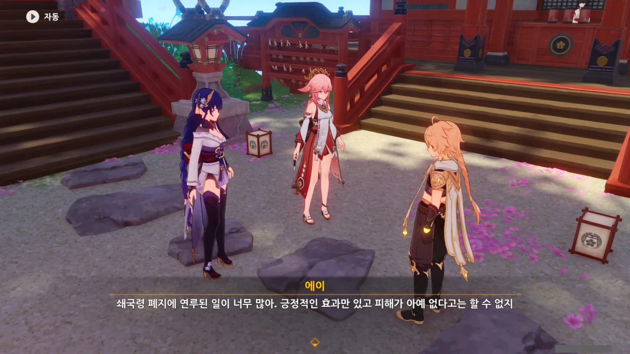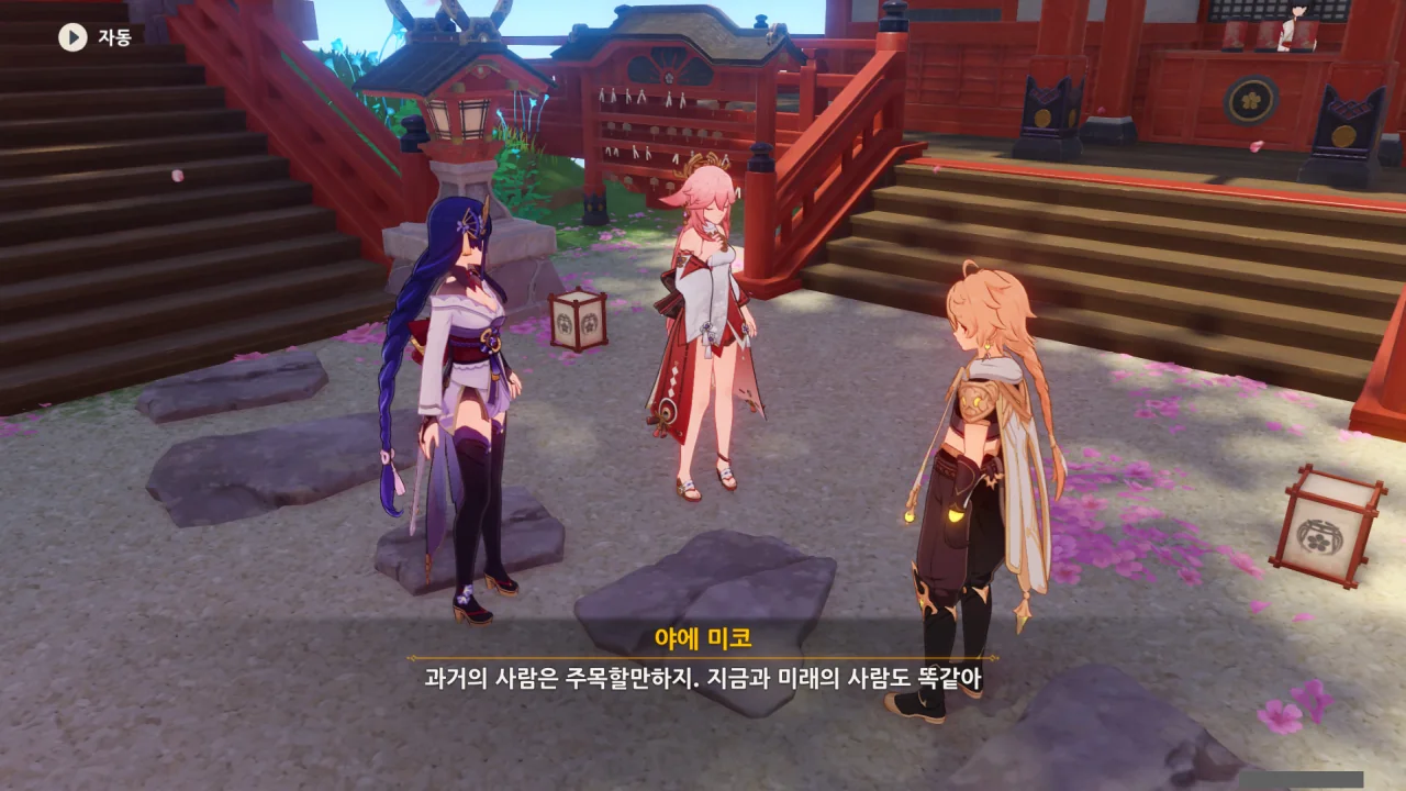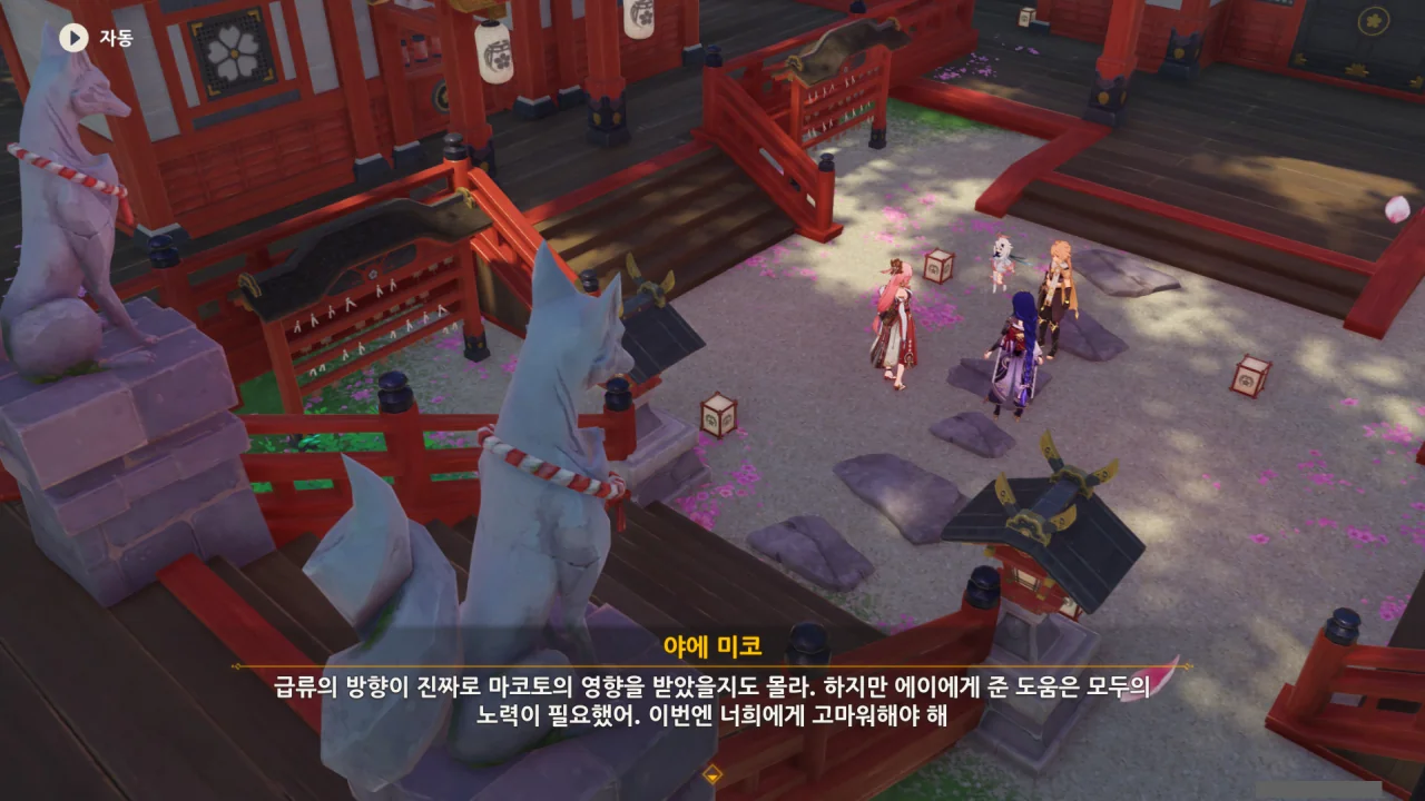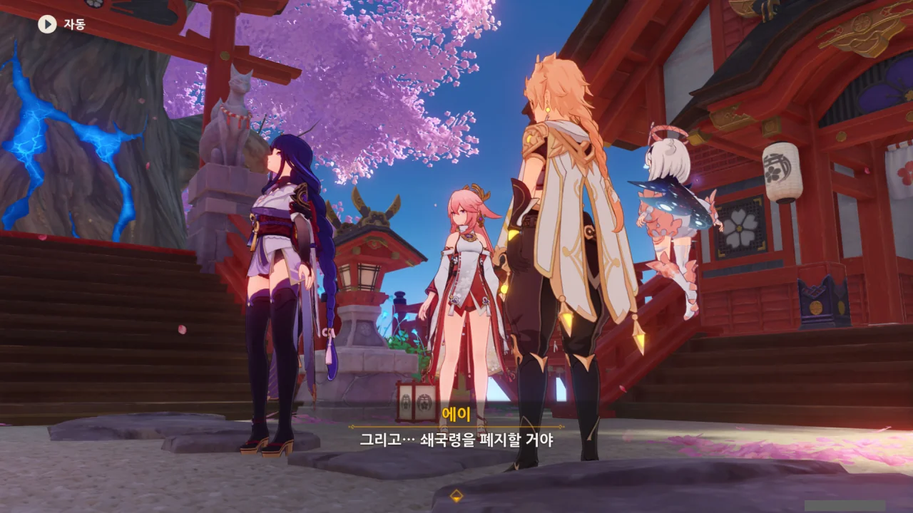 아직 라이덴 에이와 야에 미코가 사라지지 않고 있기에 말을 걸어보니 추가적인 대화 내용이 나타난다.