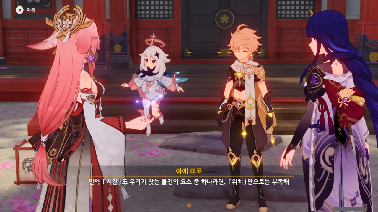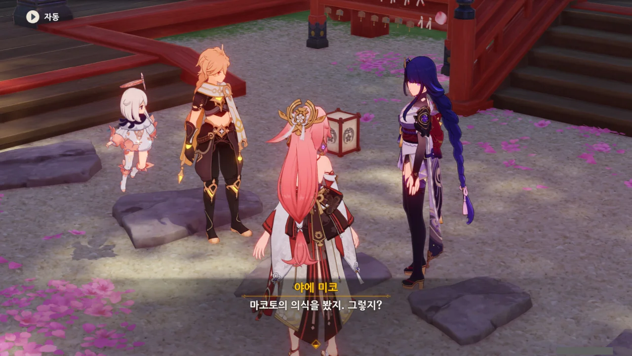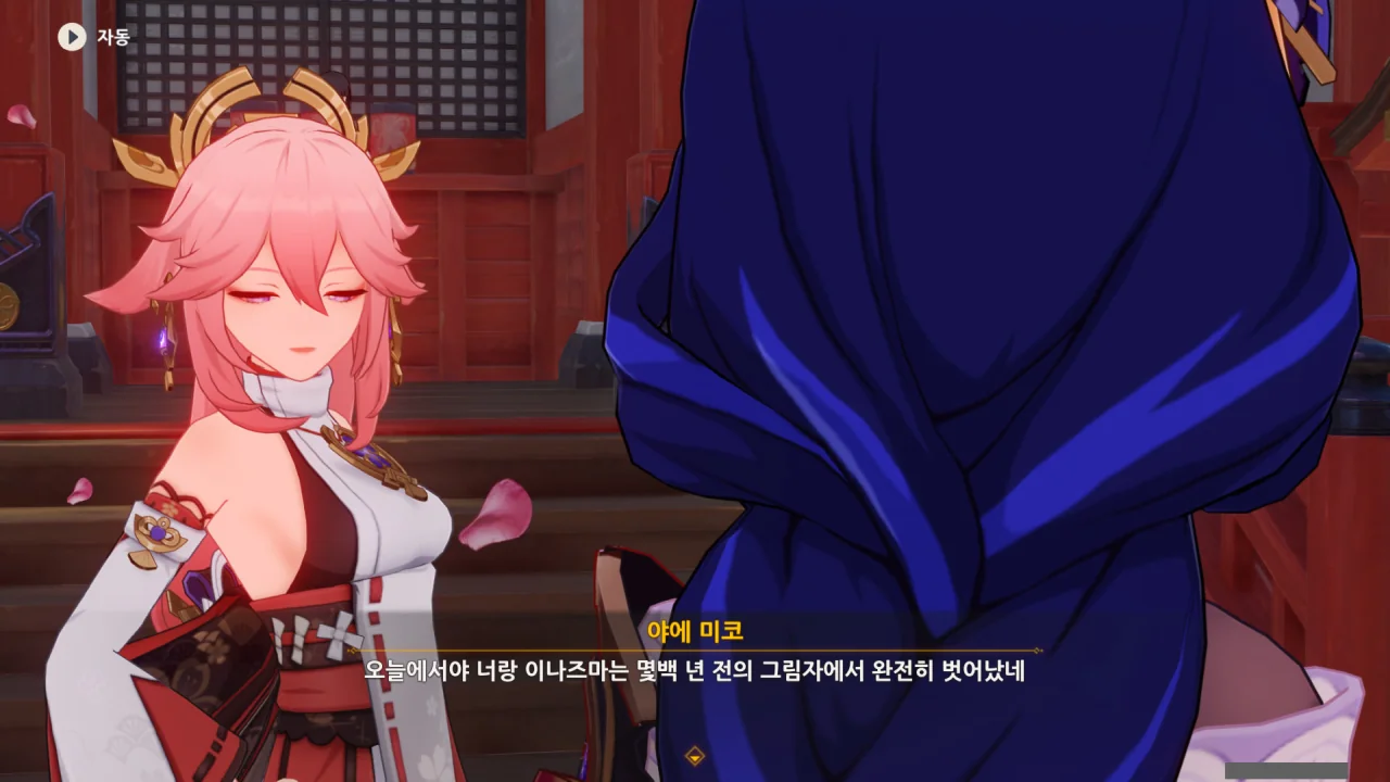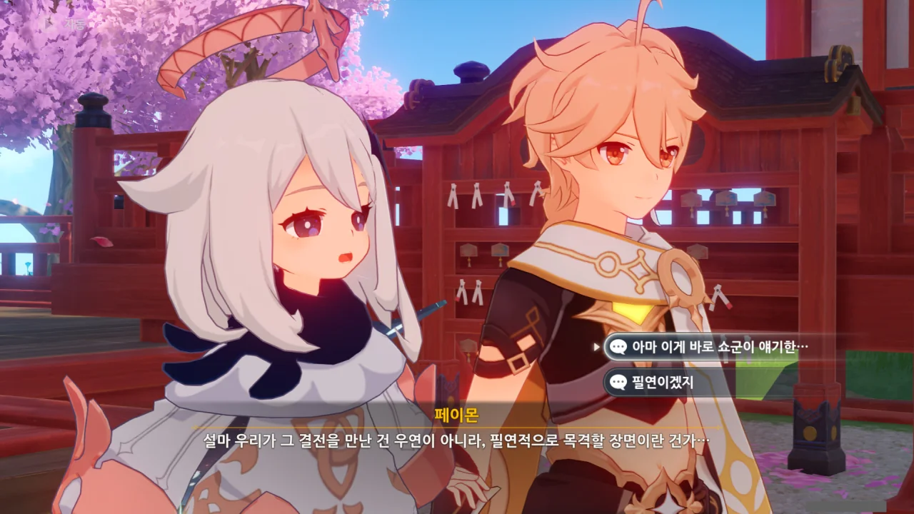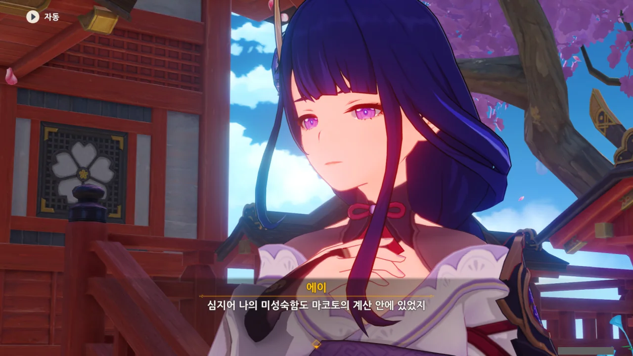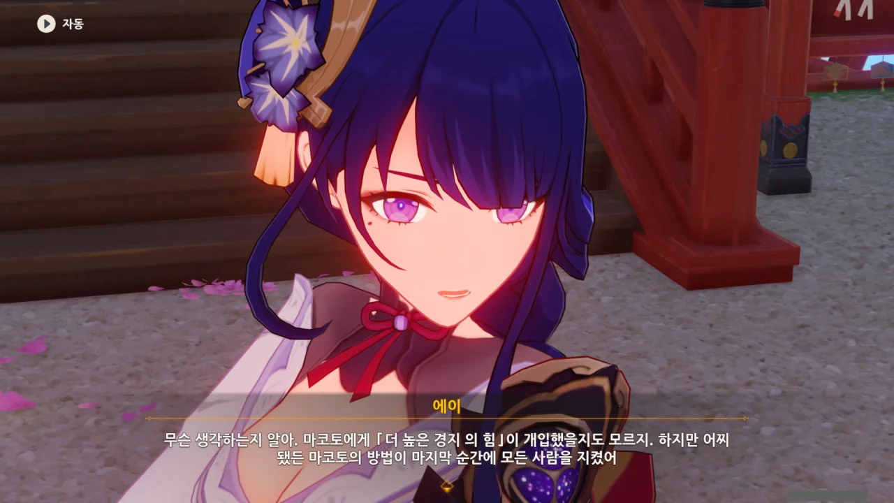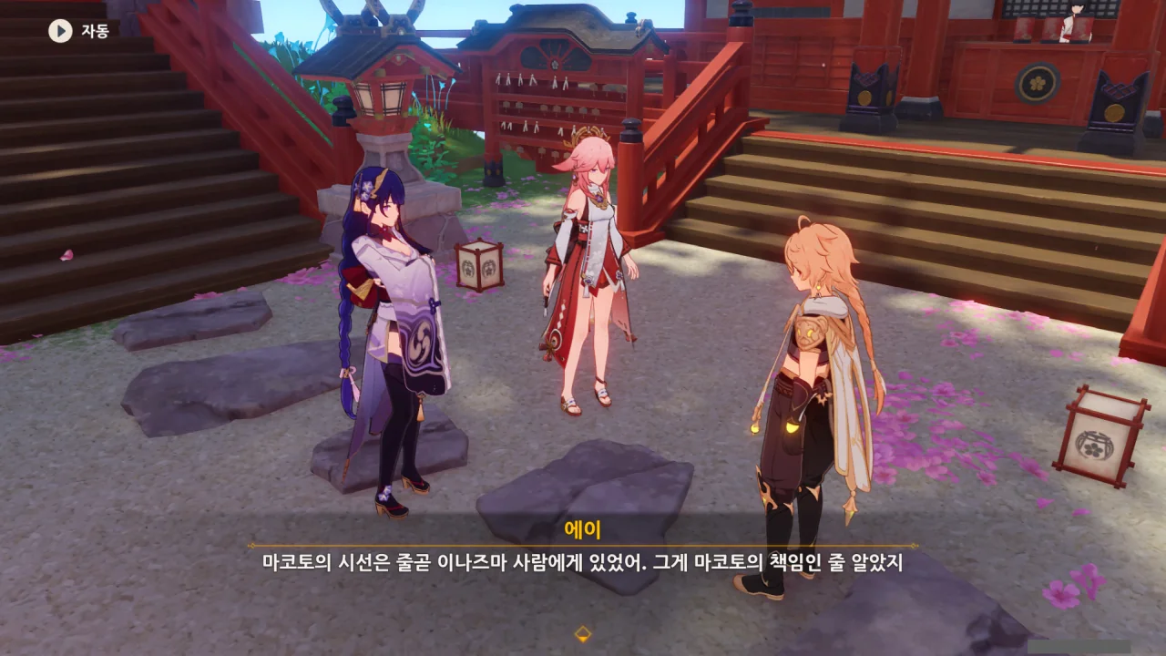 아직 라이덴 에이와 야에 미코가 사라지지 않고 있기에 말을 걸어보니 추가적인 대화 내용이 나타난다.