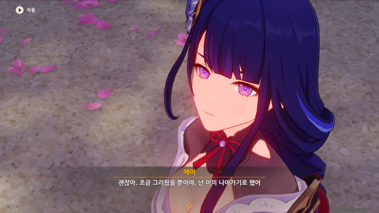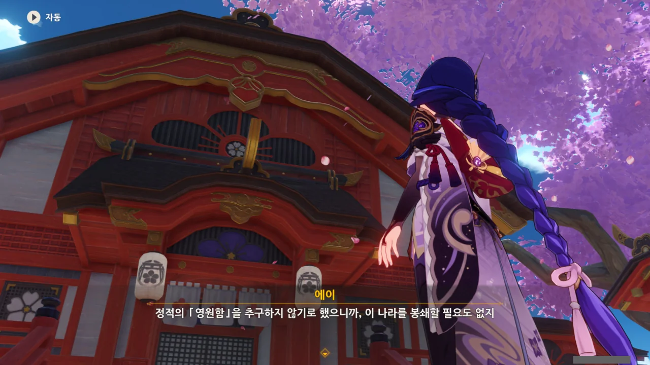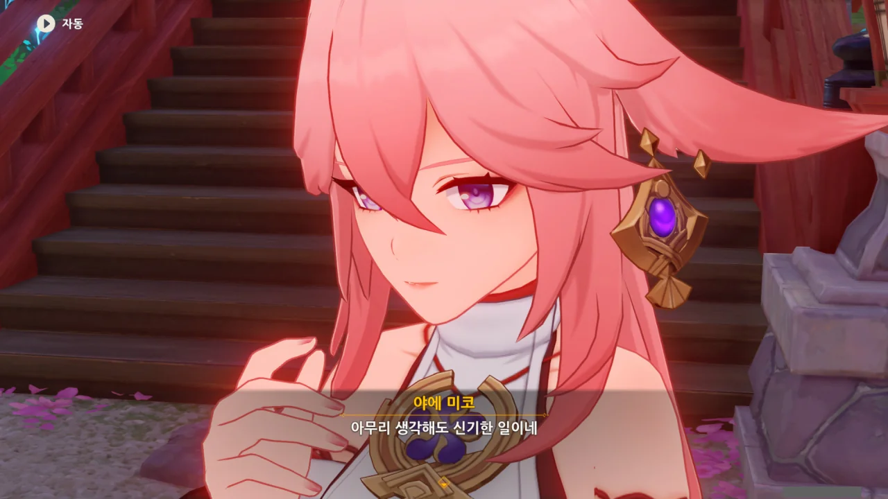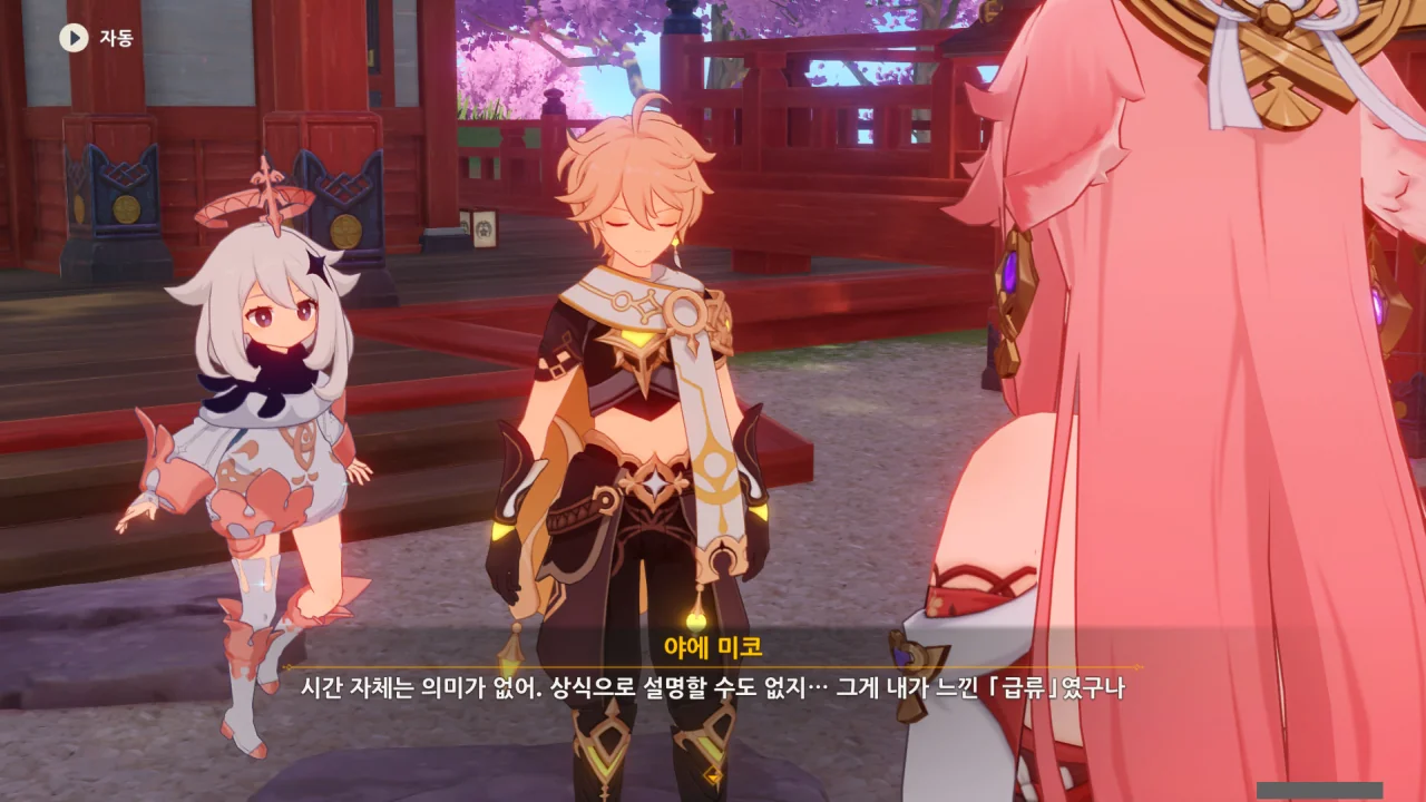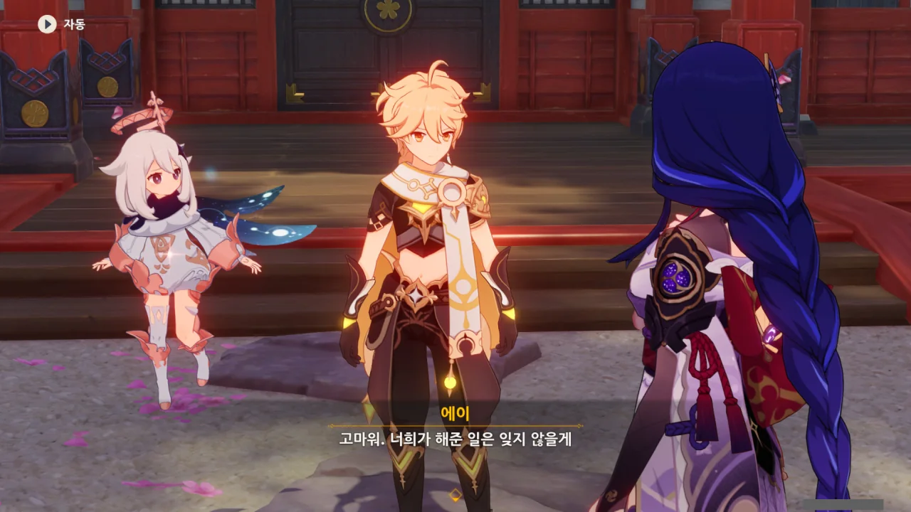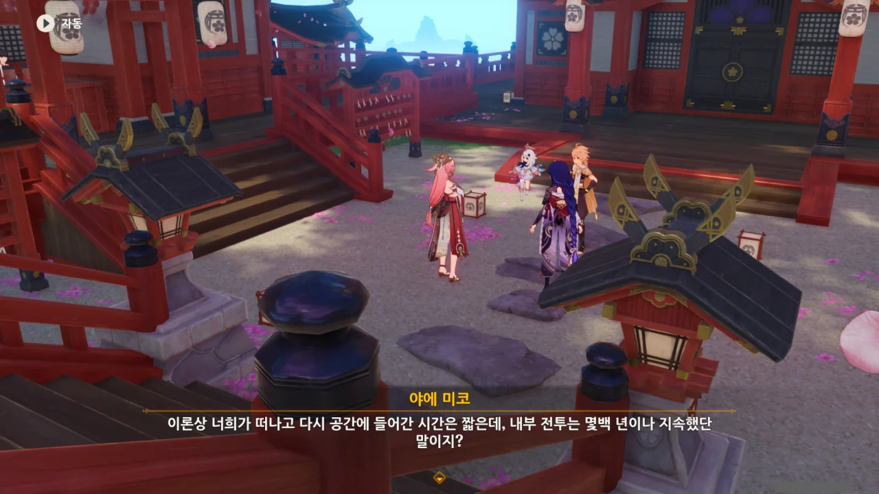 아직 라이덴 에이와 야에 미코가 사라지지 않고 있기에 말을 걸어보니 추가적인 대화 내용이 나타난다.