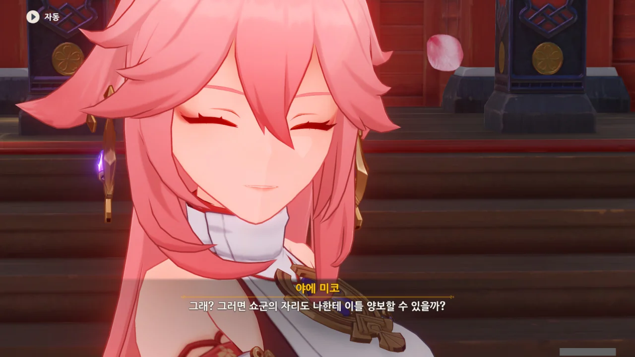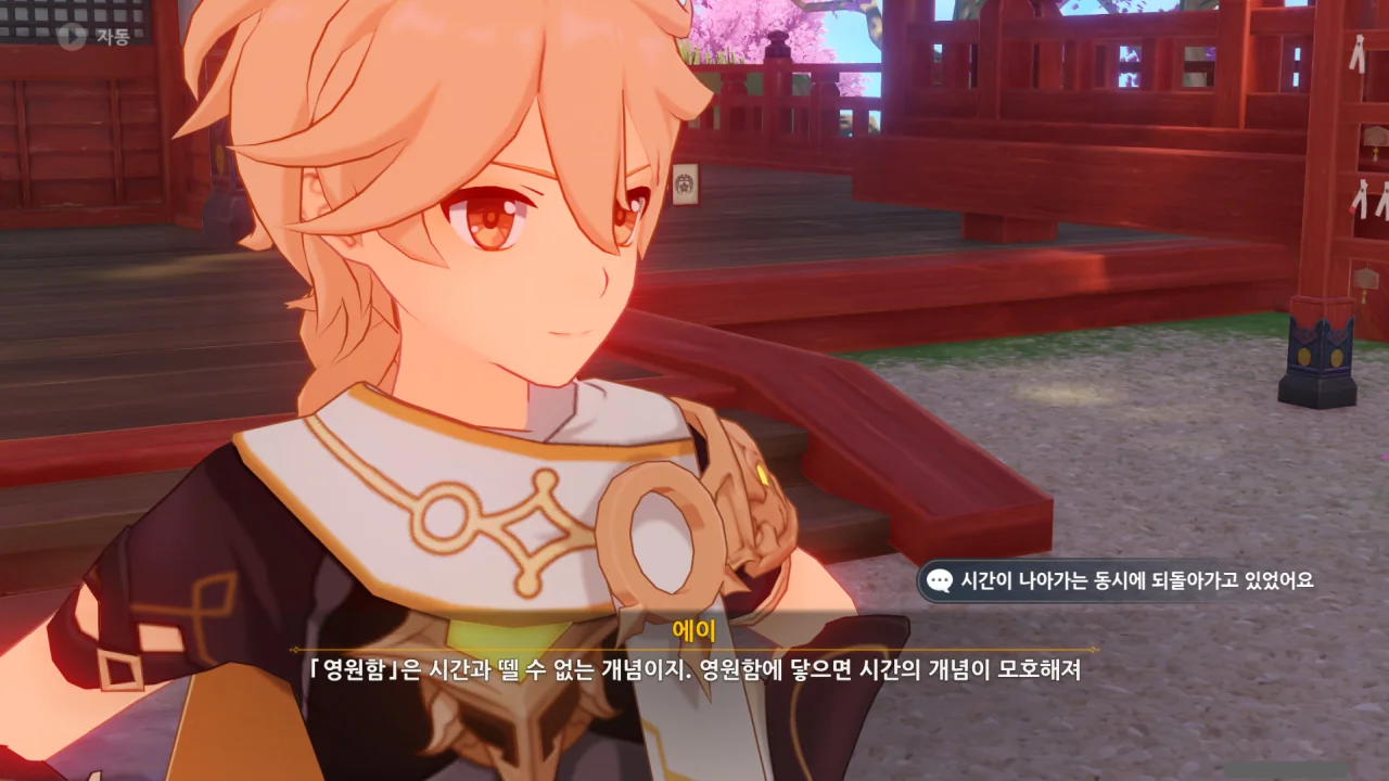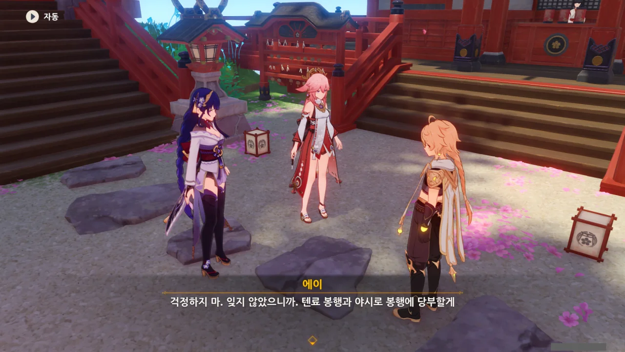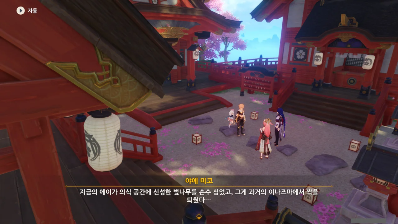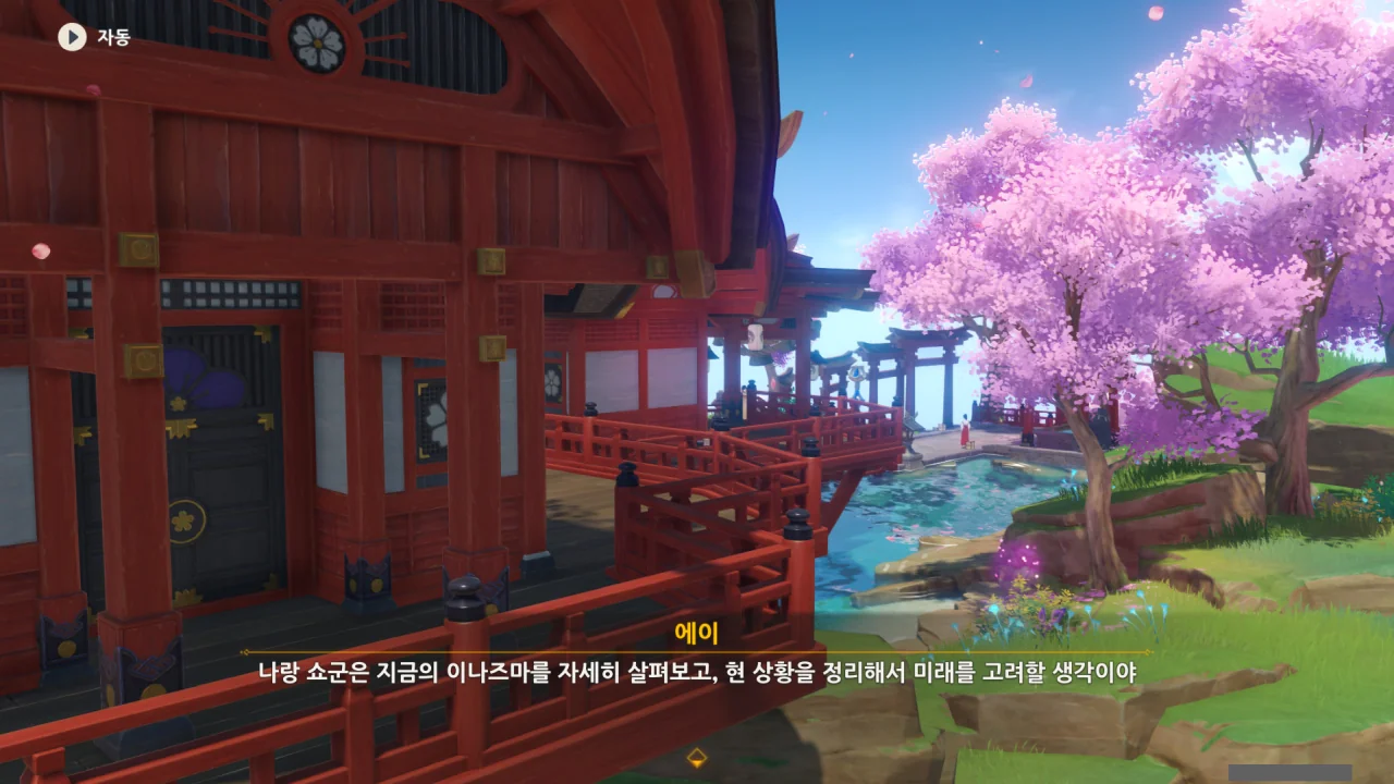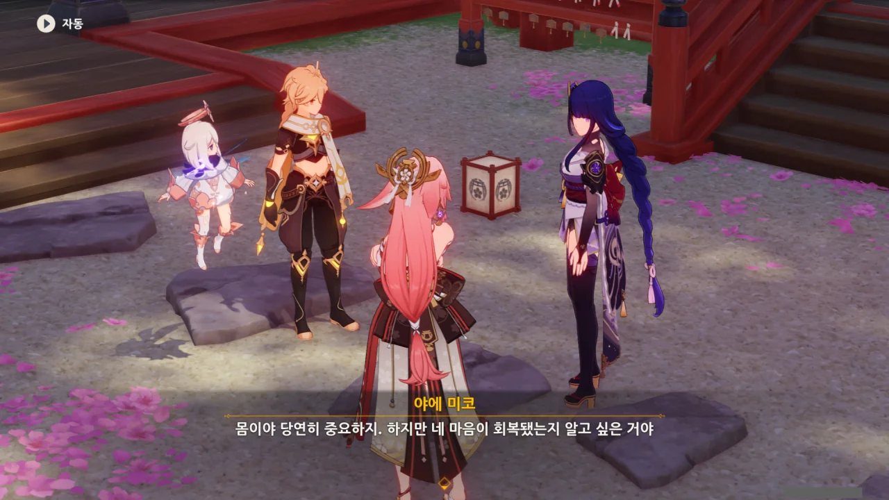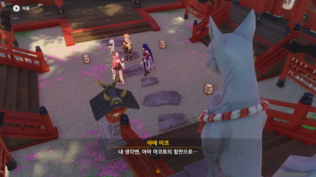 아직 라이덴 에이와 야에 미코가 사라지지 않고 있기에 말을 걸어보니 추가적인 대화 내용이 나타난다.