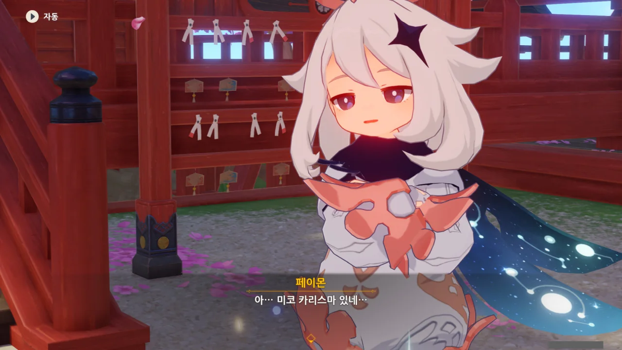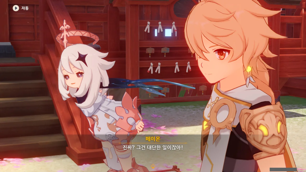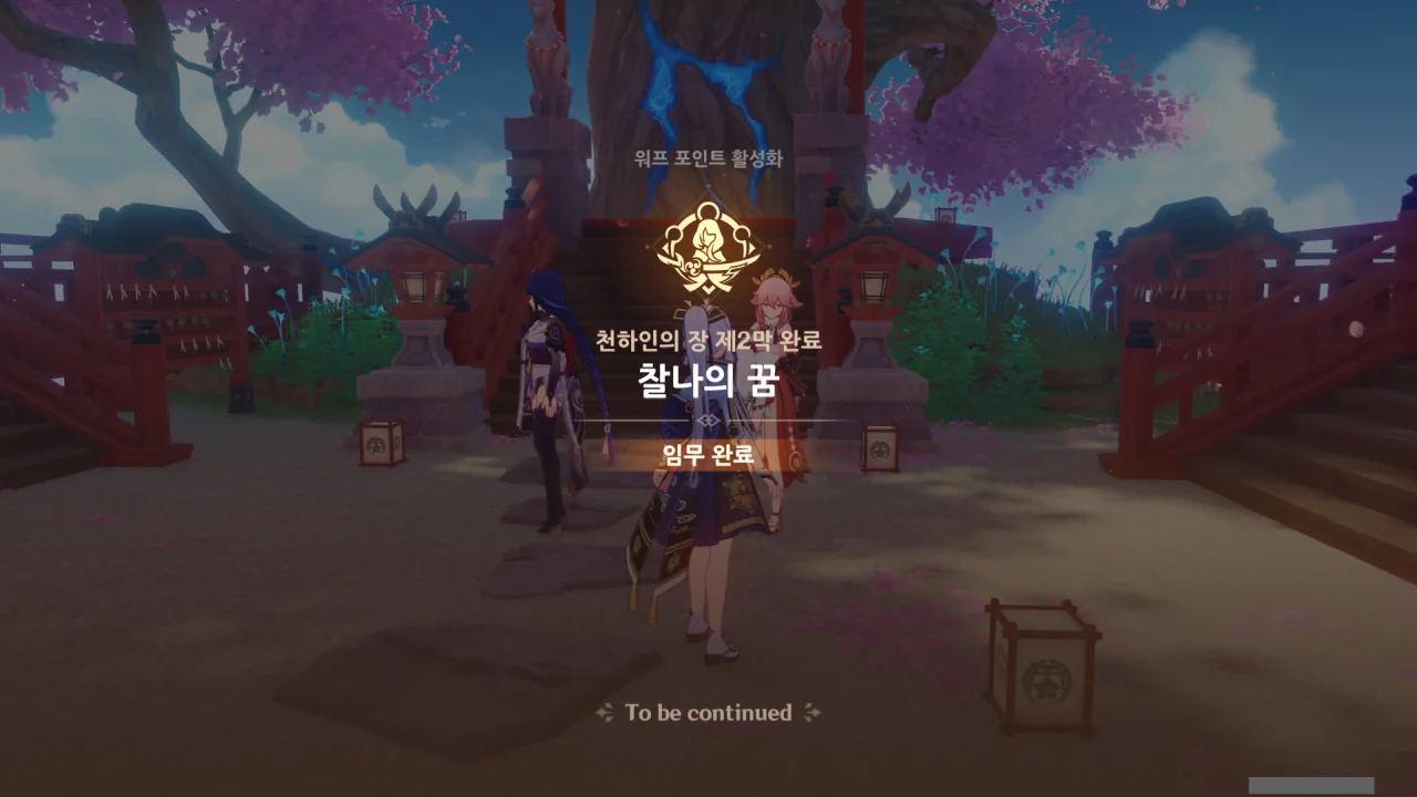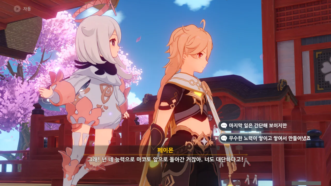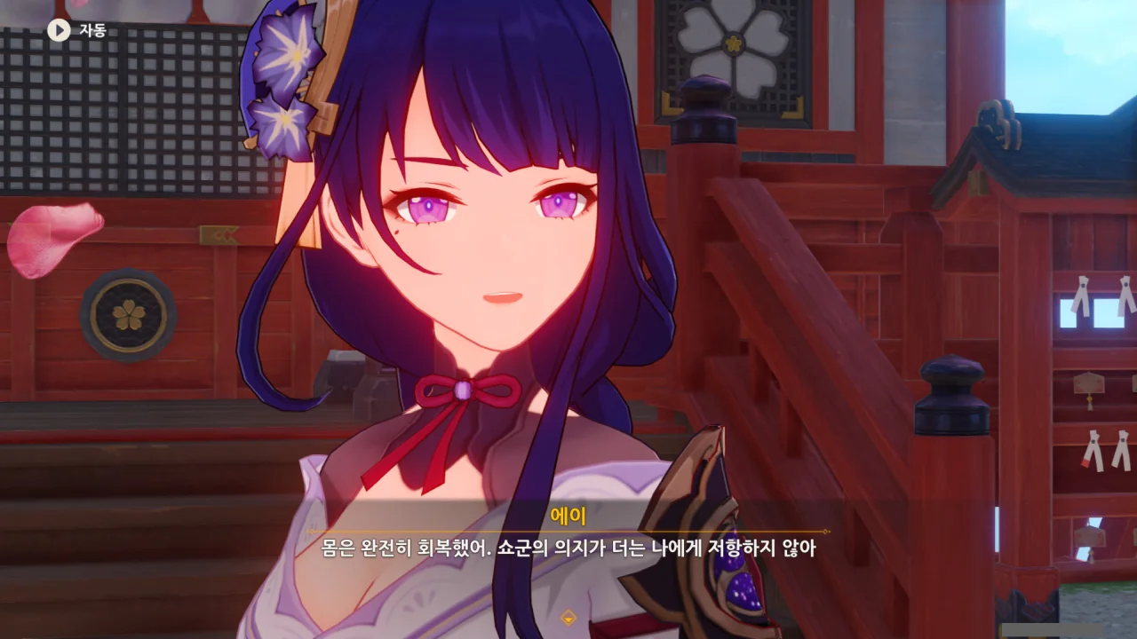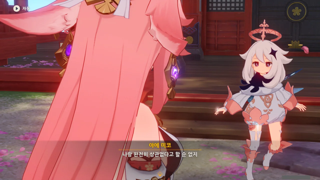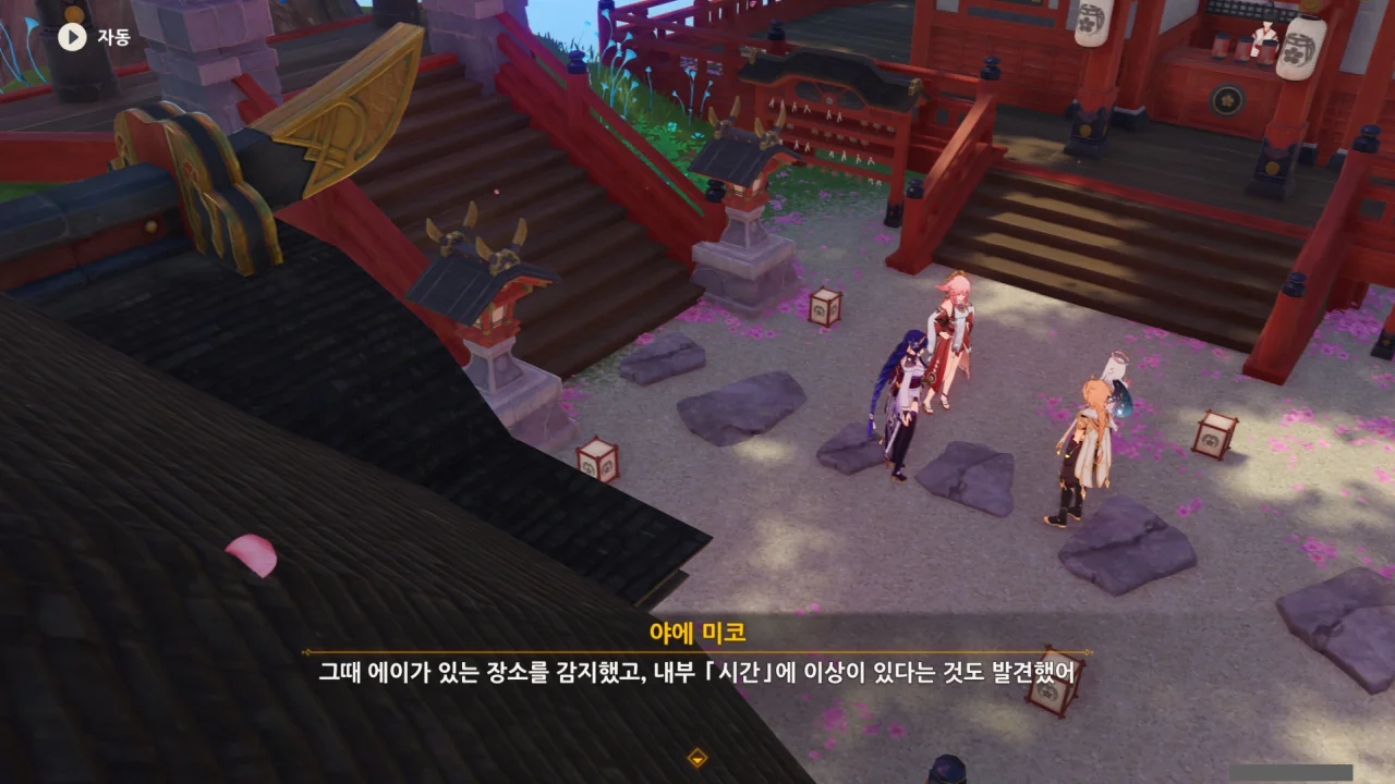 아직 라이덴 에이와 야에 미코가 사라지지 않고 있기에 말을 걸어보니 추가적인 대화 내용이 나타난다.