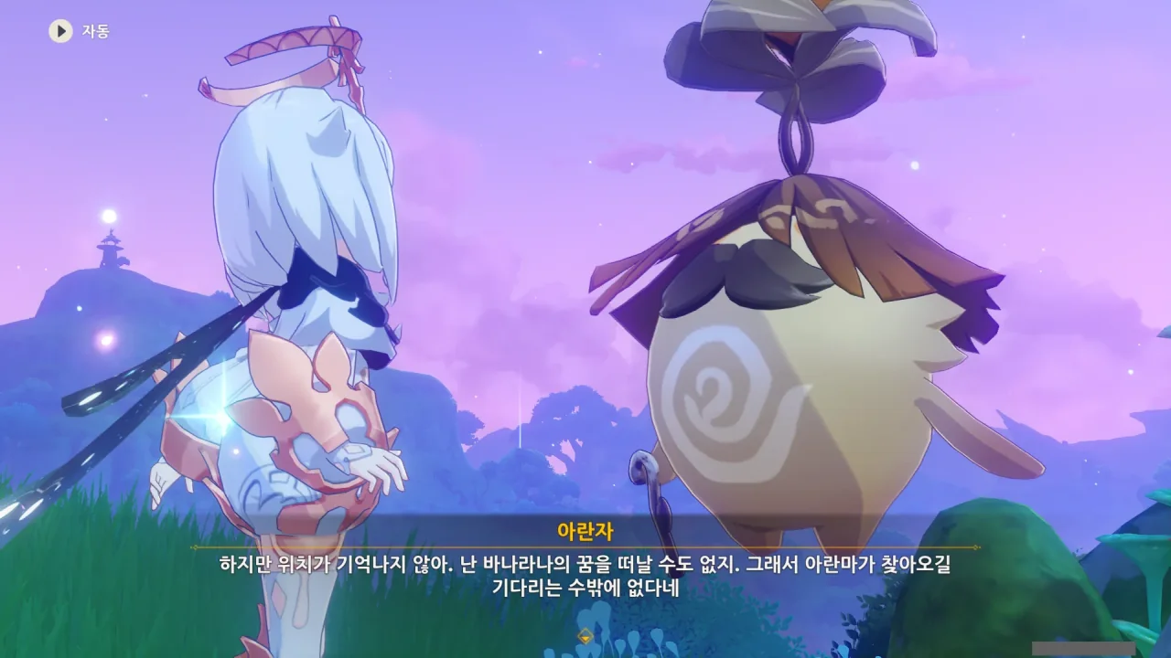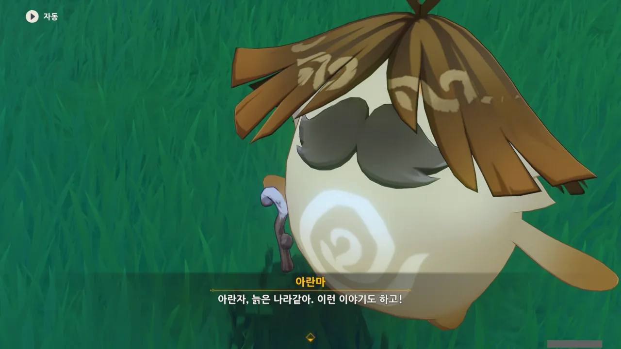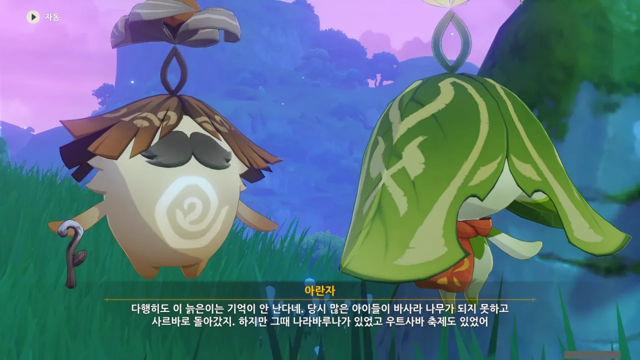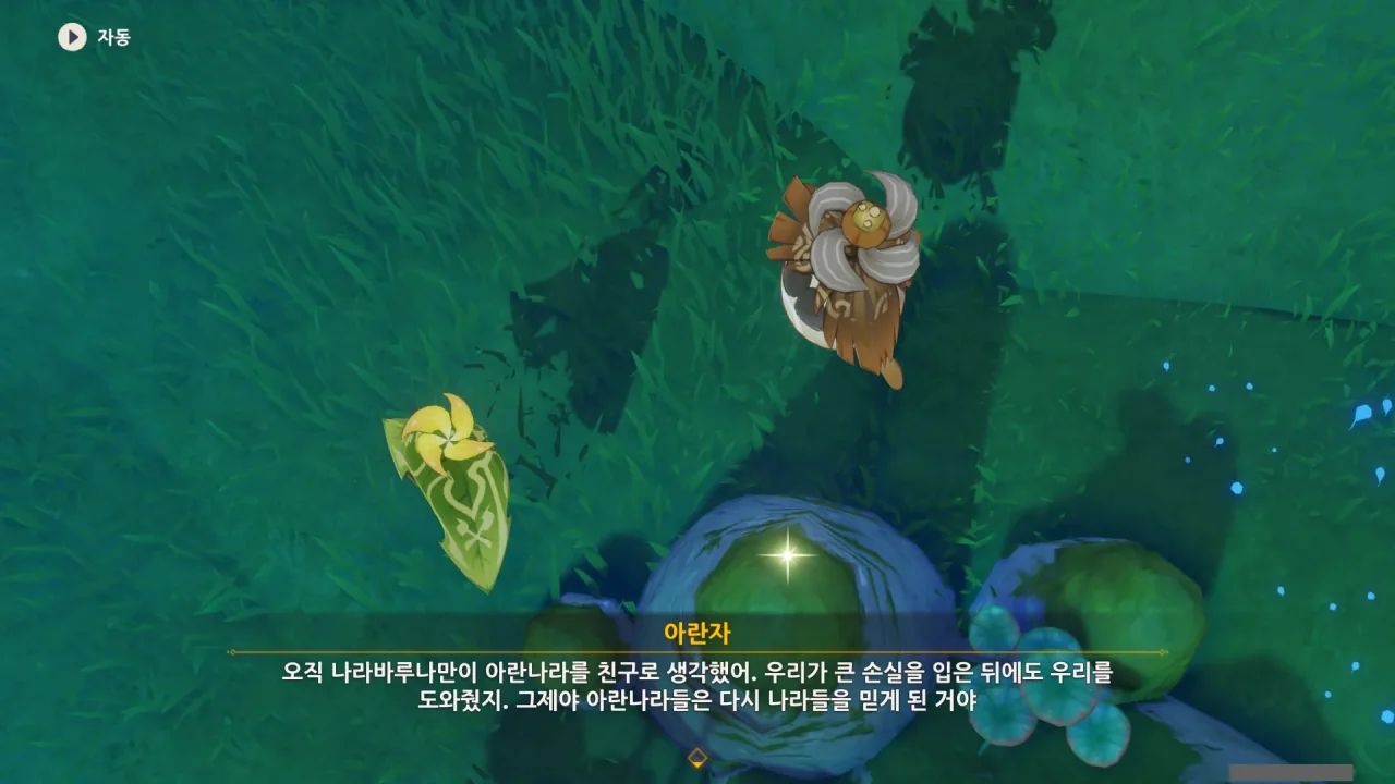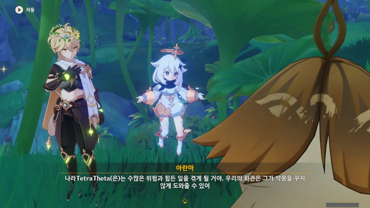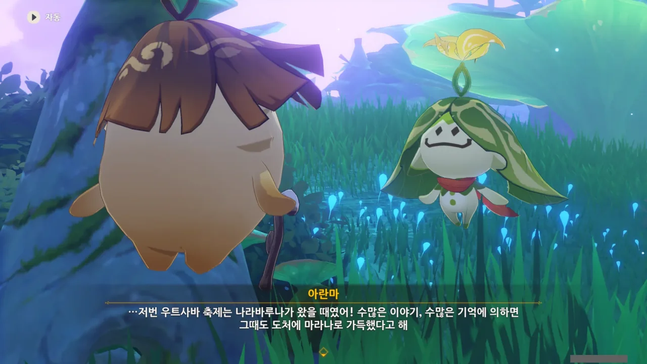 페이몬은 왜 내겐 화관을 주지 않냐 묻자, 아란마가 '넌 이미 여행자가 지켜주고 있잖아'라고 대답한다.