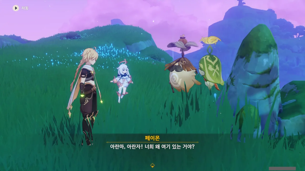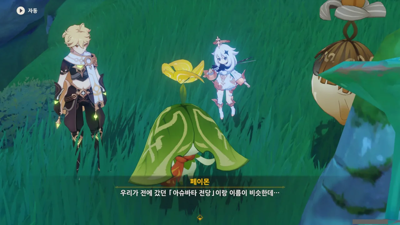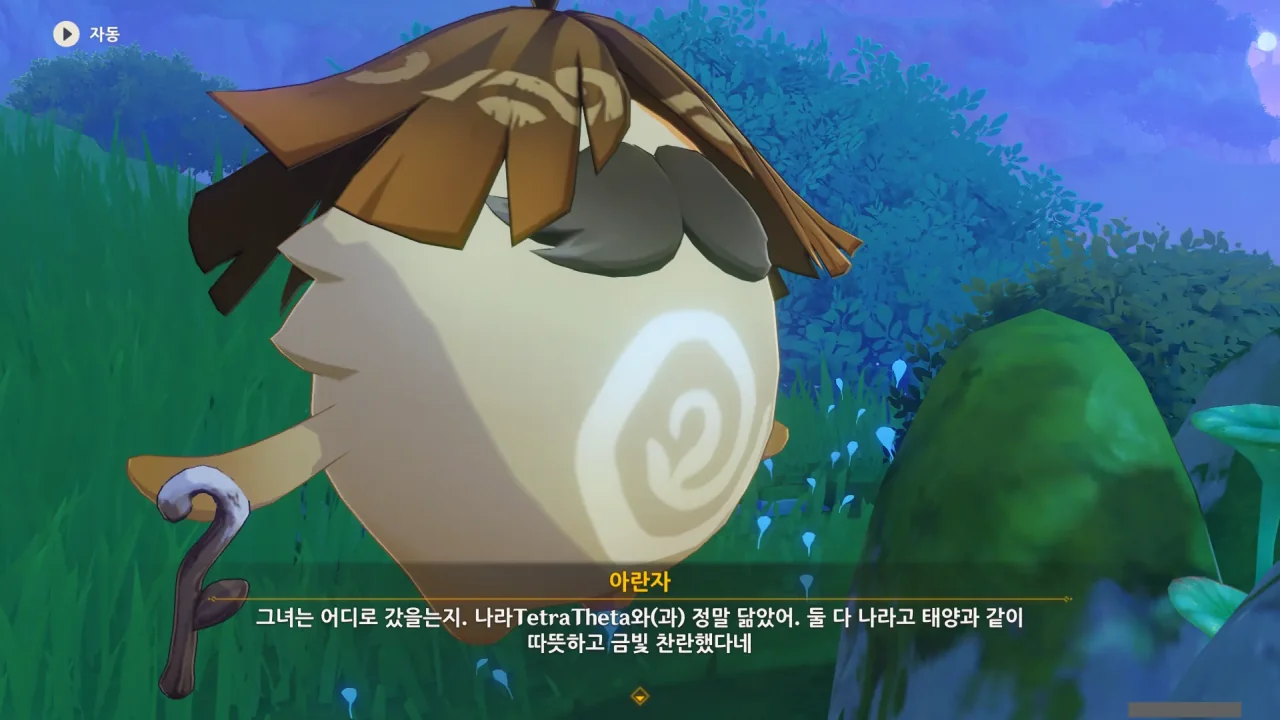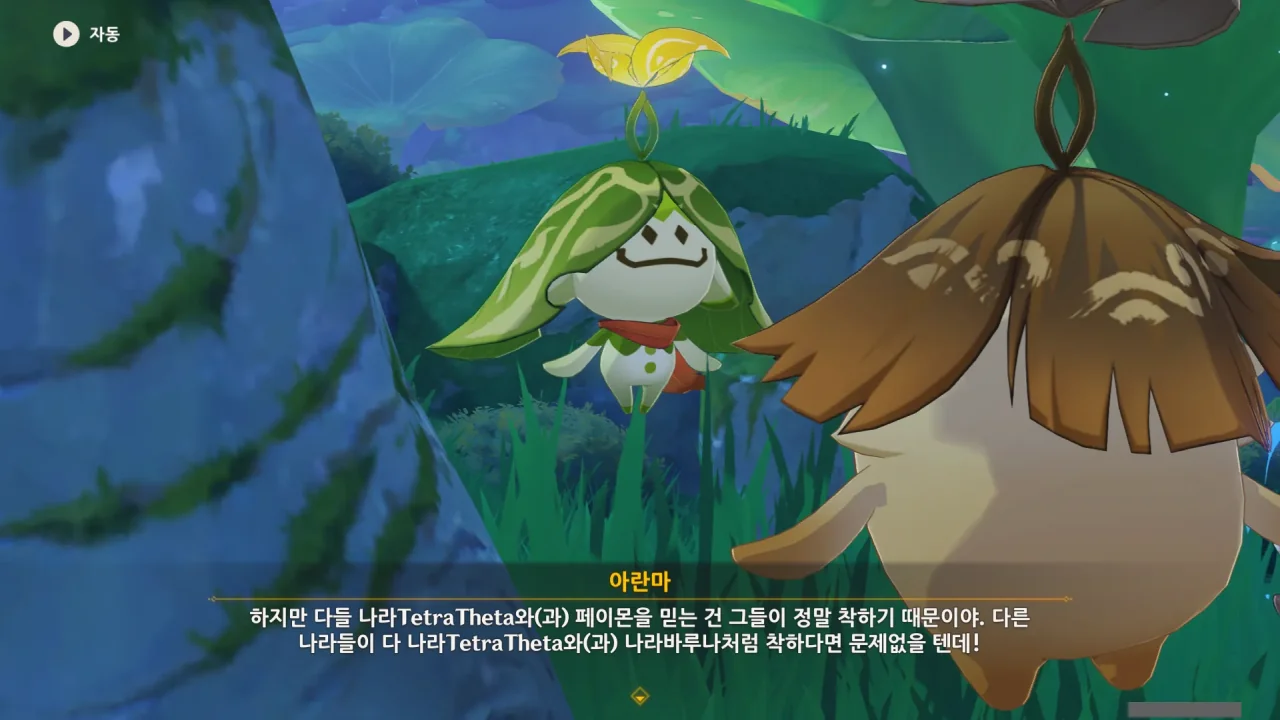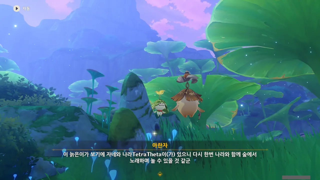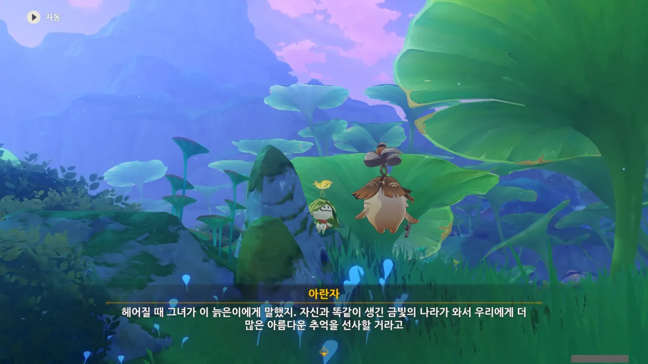 페이몬은 왜 내겐 화관을 주지 않냐 묻자, 아란마가 '넌 이미 여행자가 지켜주고 있잖아'라고 대답한다.