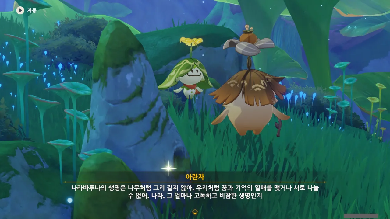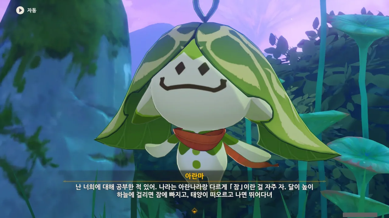 아란나라는 씨앗으로 변할 때 말고는 잠을 자지 않는구나.