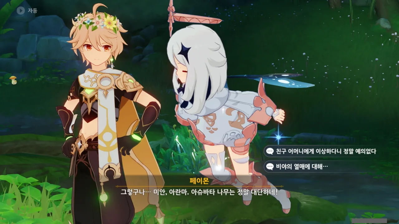 처음 만났을 때도 페이몬을 '비상식량'이라고 표현하질 않나, 이젠 '친구 엄마에게 무례하네'라고 먹이질 않나… 나, 이런 거 너무 좋아!