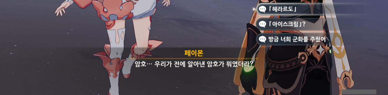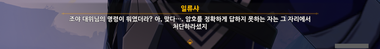 아, 그래. 그래도 방금 말한 게 암구호라고 생각할 정신은 있었나 보다.