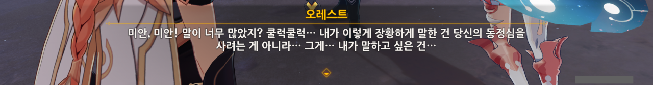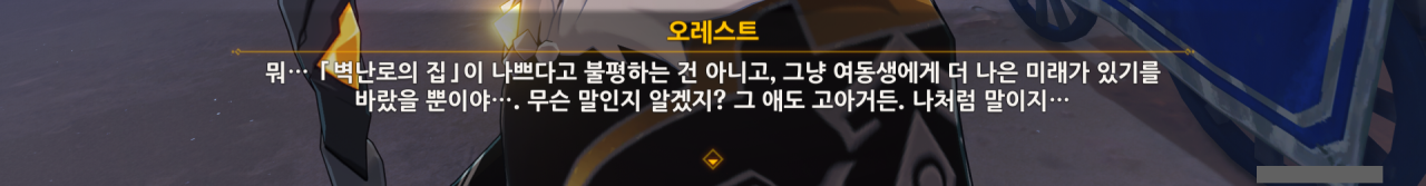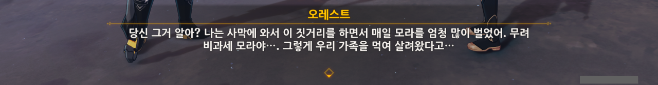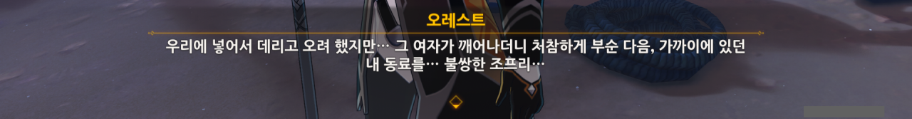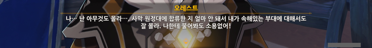 냉정하게 판단하자면, 오레스트는 이 사막에서 오래 버티지 못할 것이다. 한동안 우인단 야영지로 돌아가지 않겠다고 했는데, 낮에는 덥고 밤에는 추운 이 사막에서 어떻게 버티려고?