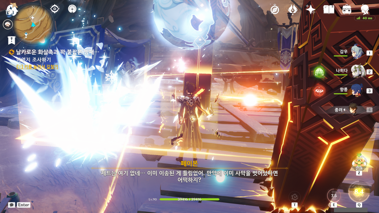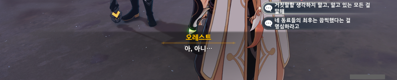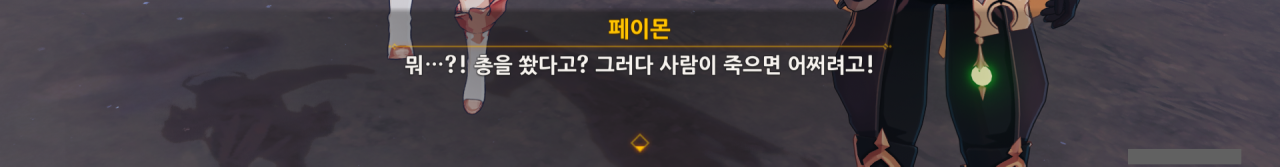 페이몬 뭐…?! 총을 쐈다고? 그러다 사람이 죽으면 어쩌려고! 오레스트 사람은 벌써 죽었어! 우리 쪽 사람 말이야!