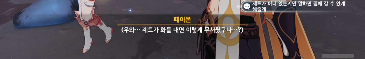 멀리서 들려오는 제트의 말에 하나하나 태클을 거는 페이몬.