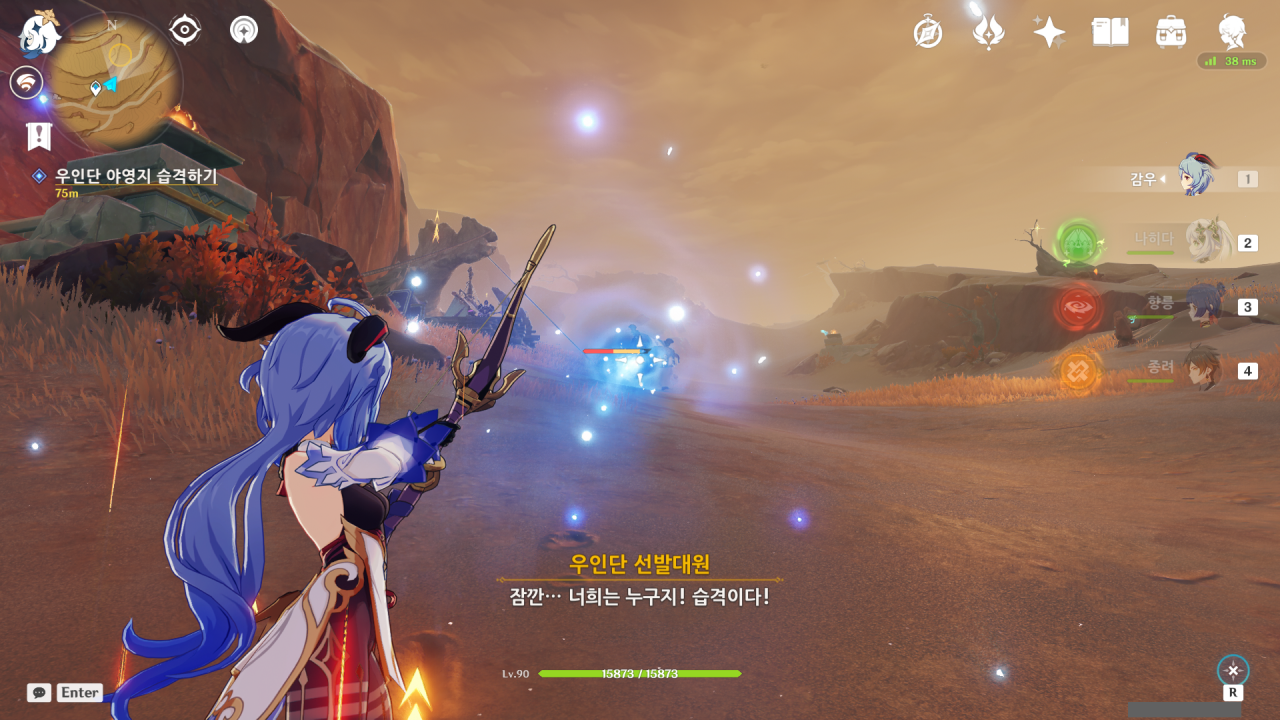 이 지역에 있는 우인단은 피아식별을 위해 암구호를 사용하는 것으로 보인다. 훌륭한 선택이다만, 그 덕택에 좀 귀찮아졌다.