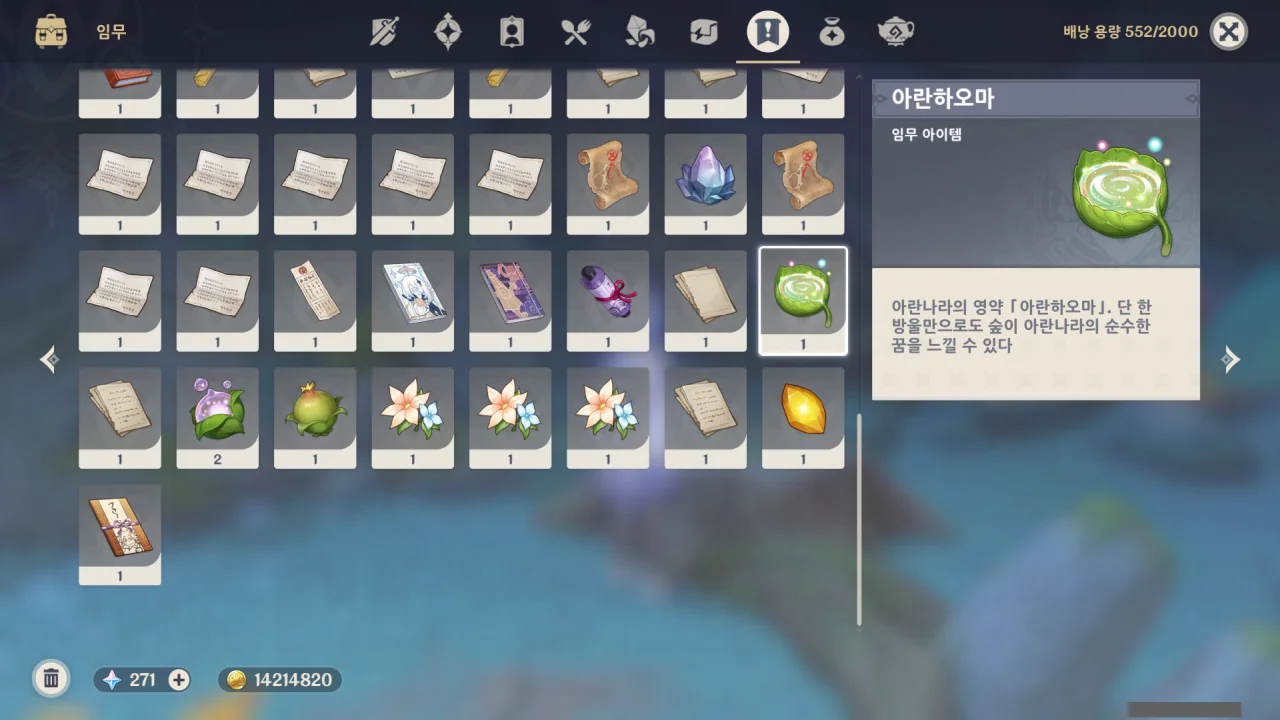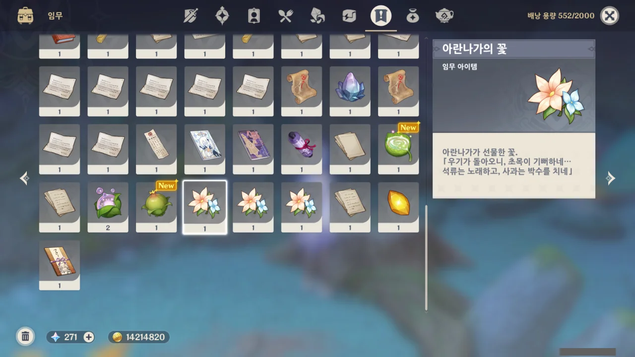 아란나라들이 꽃을 선물할 때, 그냥 말로만 선물했다고 하고 넘어갈 줄 알았다. 그런데 아란나라가 준 꽃이 실제로 배낭에 임무 아이템으로 들어오더라.