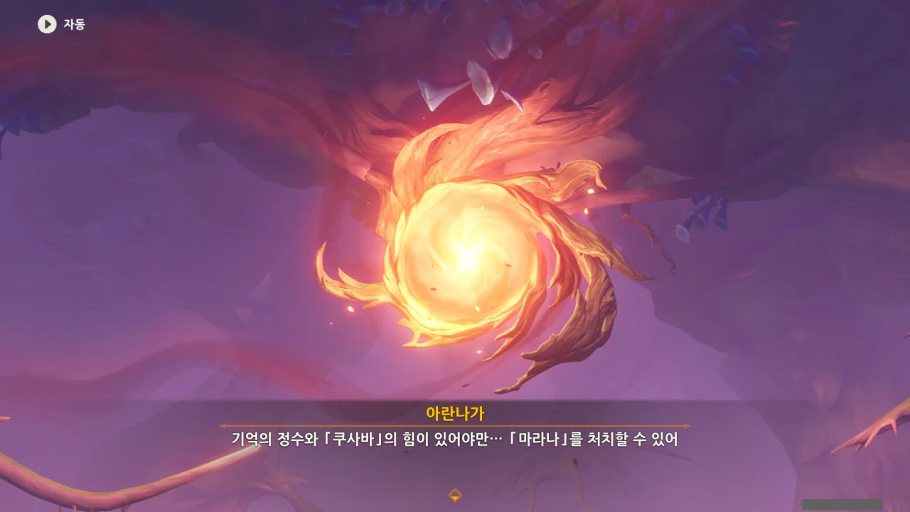 아란나라는 기억을 소모해 힘을 쓰는 걸까? 아까 전 봤던 임무 아이템의 플레이버 텍스트에도 그런 내용이 적혀 있었는데…