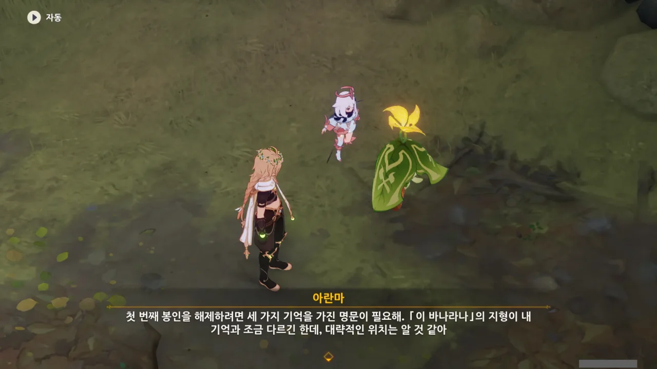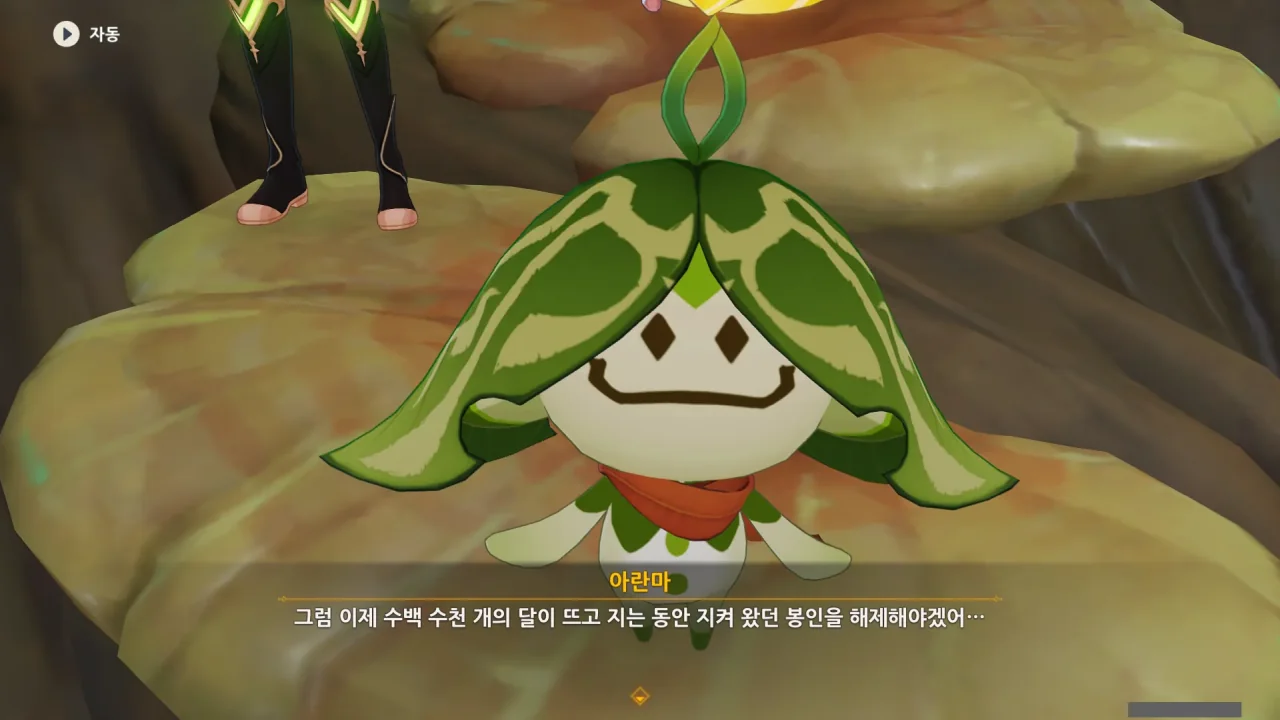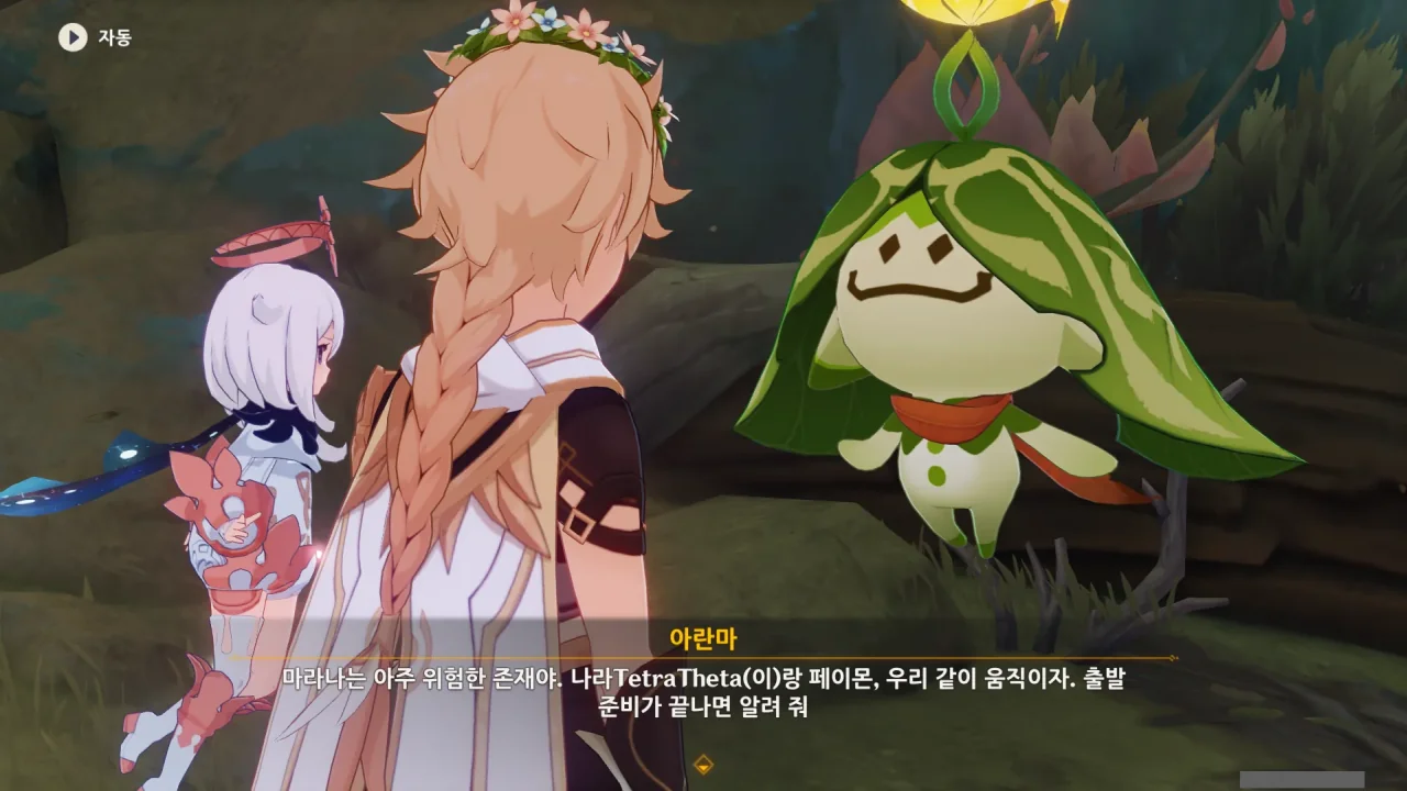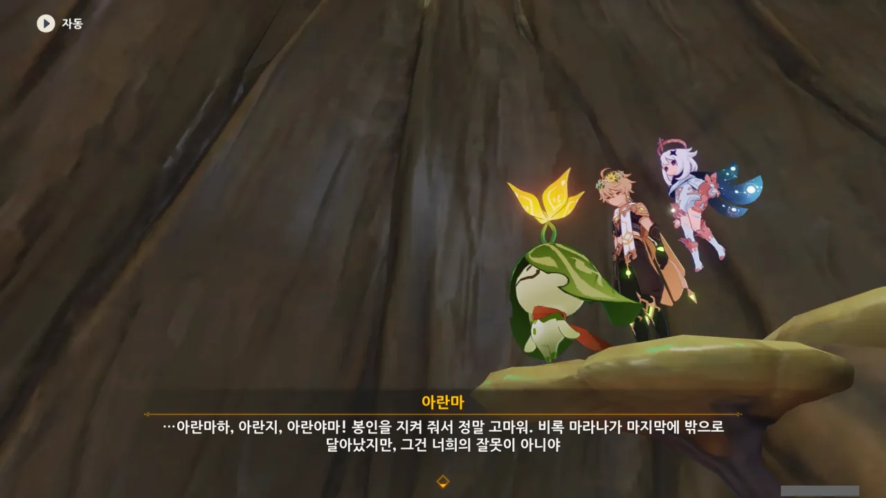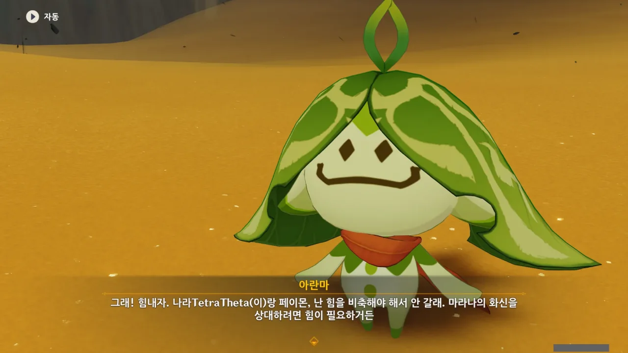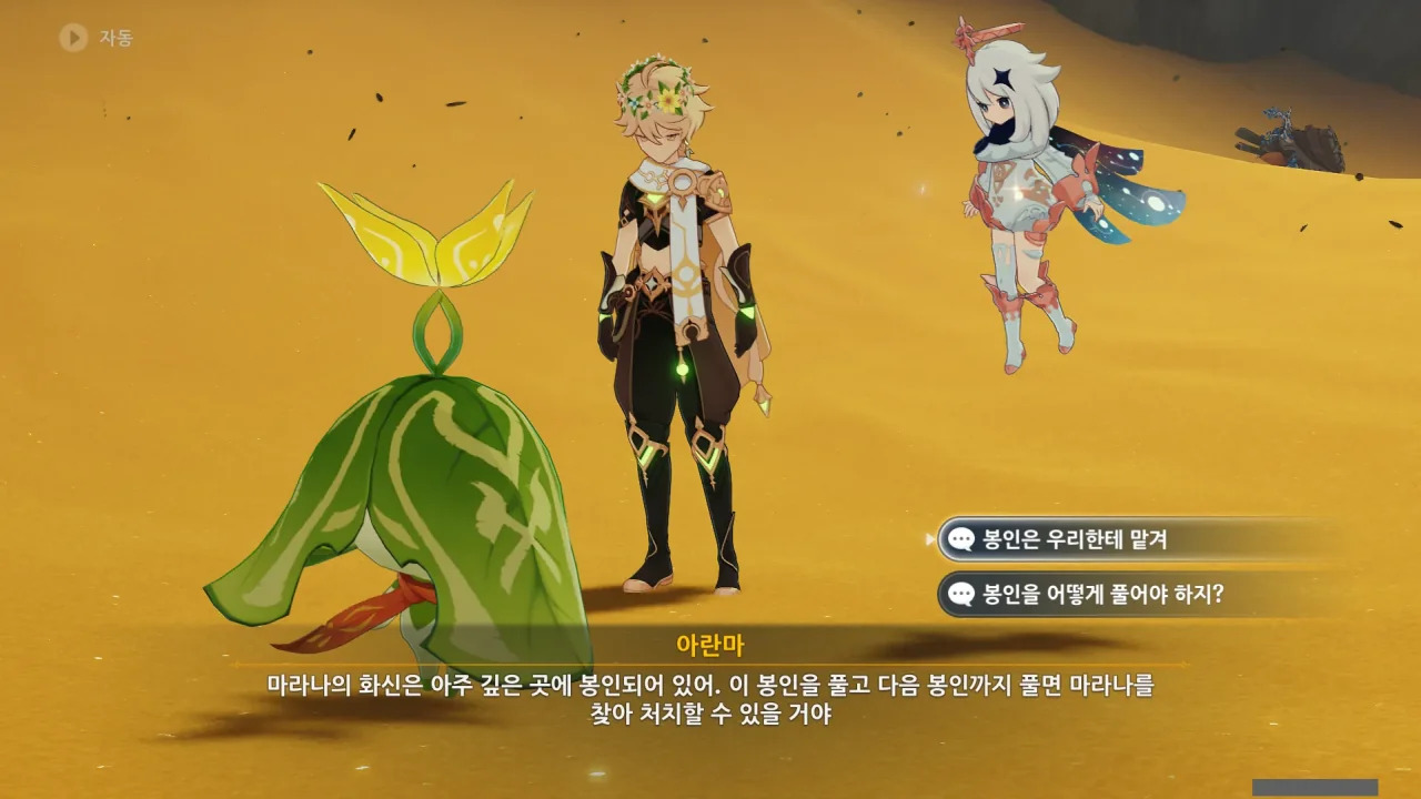 아란마가 여기 가만히 있으며 힘을 다시 비축할 동안, 여행자와 페이몬이 가서 마라나의 화신을 처치하라는 말인가?