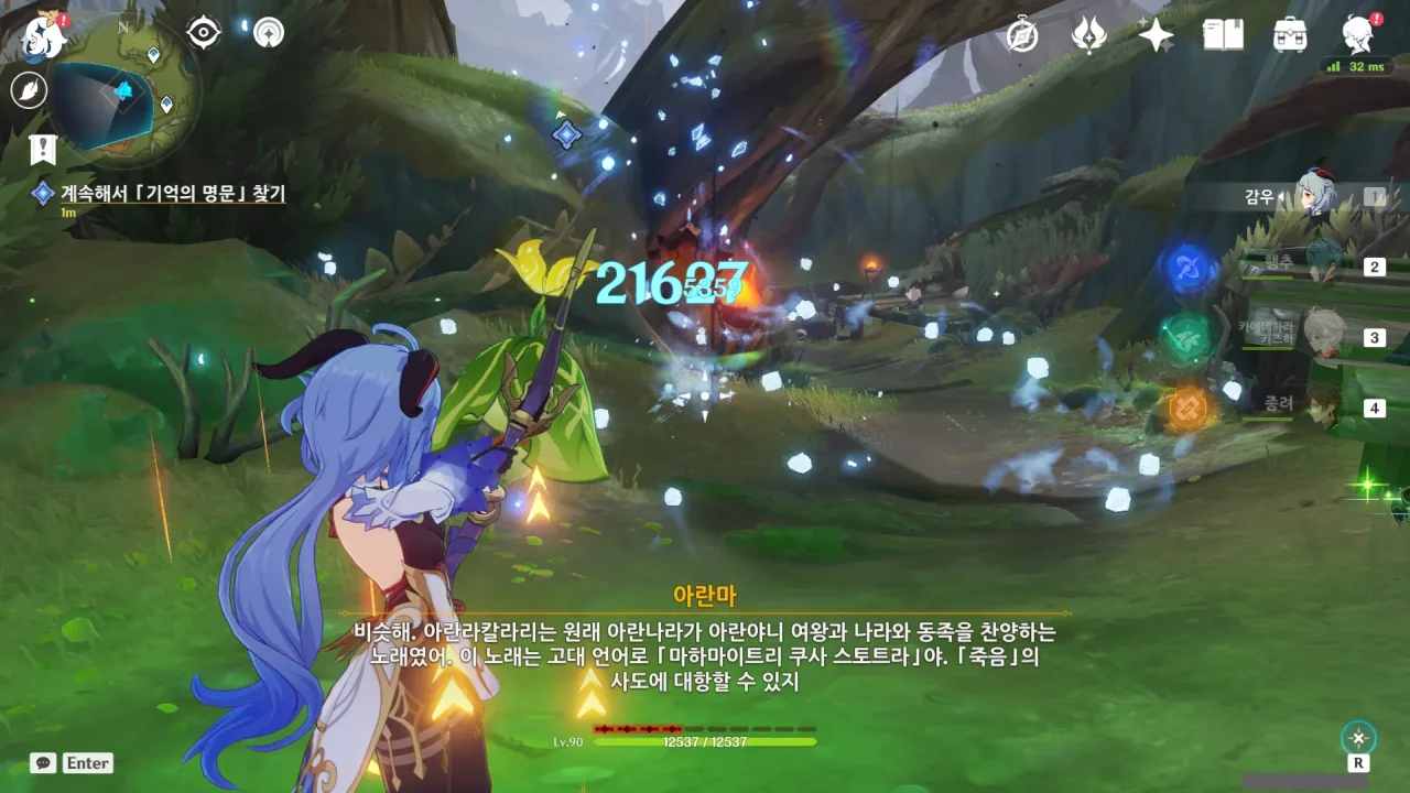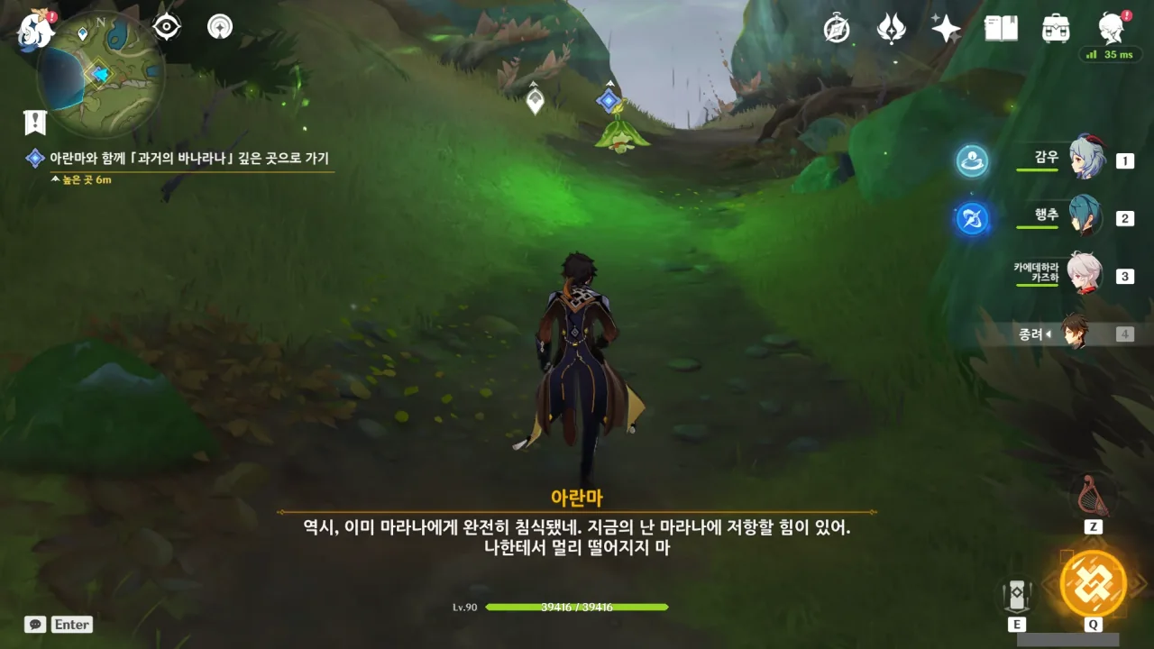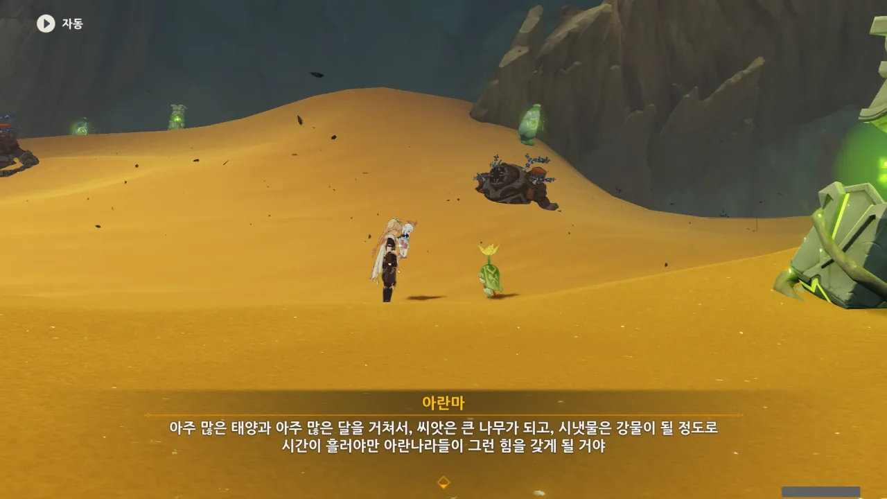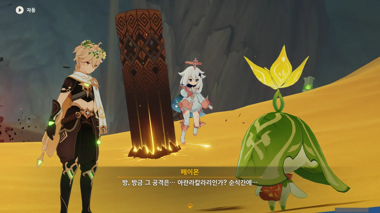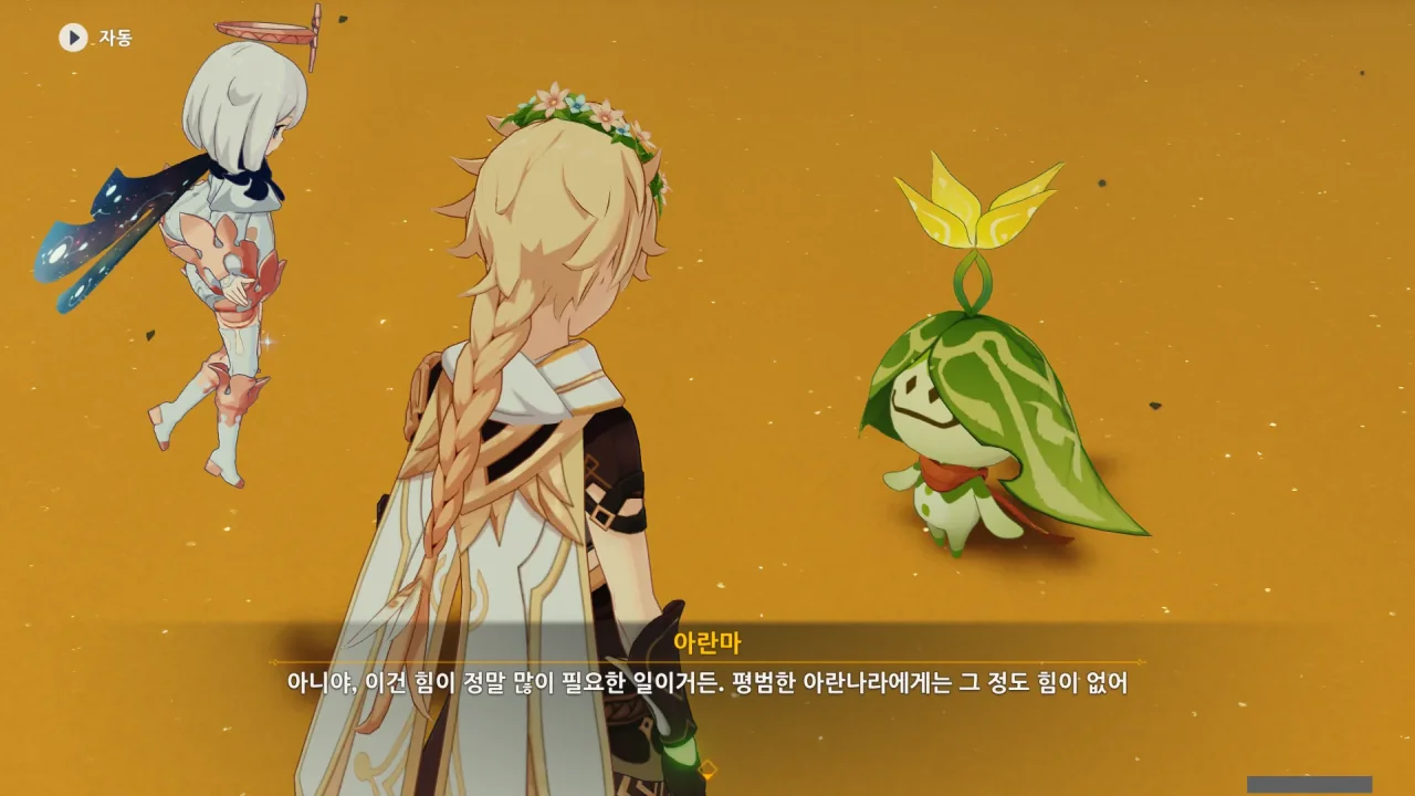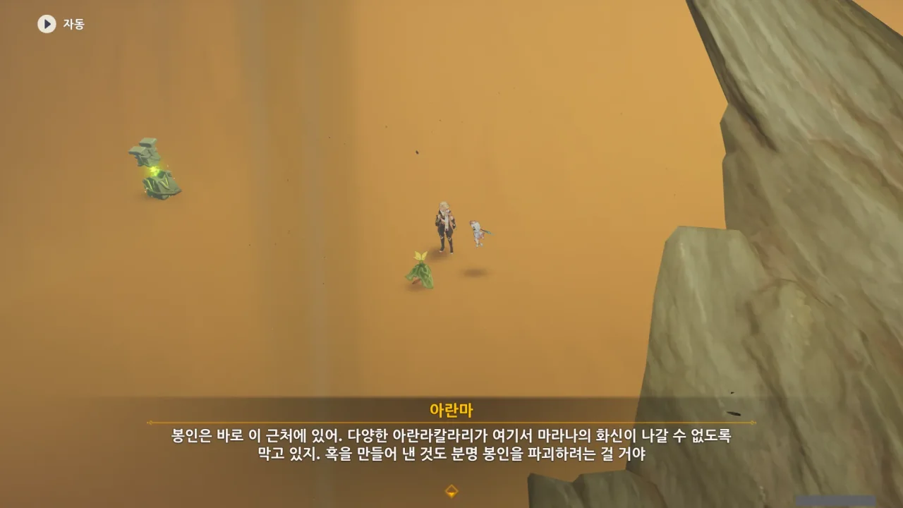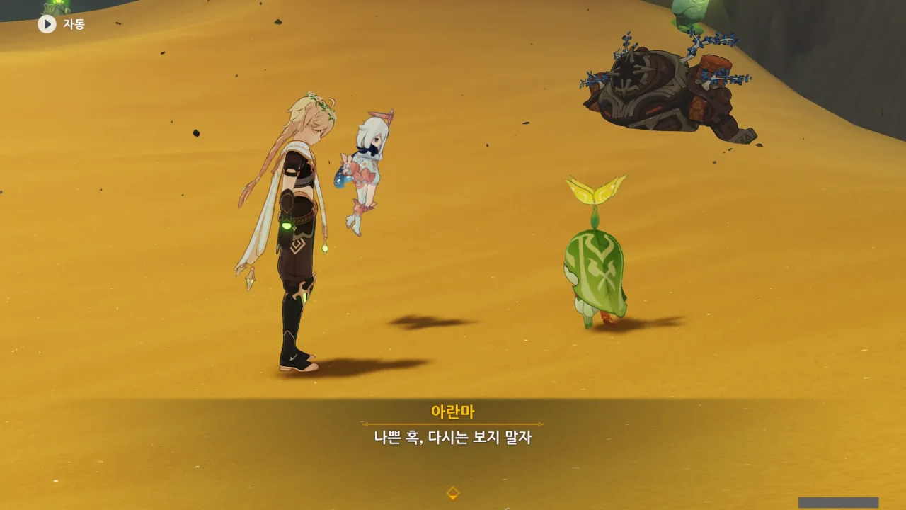 아란마가 여기 가만히 있으며 힘을 다시 비축할 동안, 여행자와 페이몬이 가서 마라나의 화신을 처치하라는 말인가?