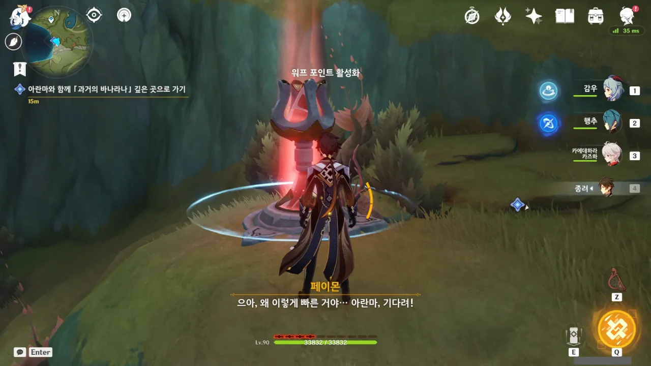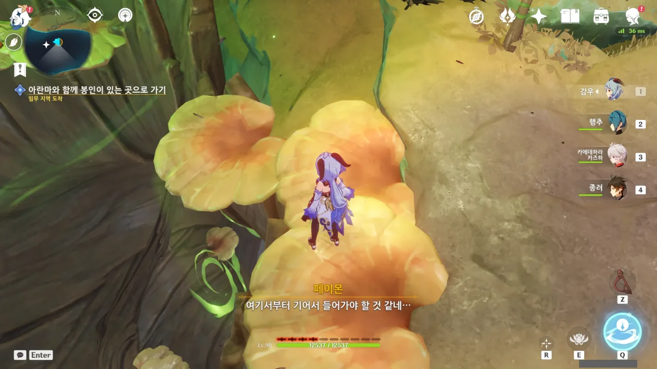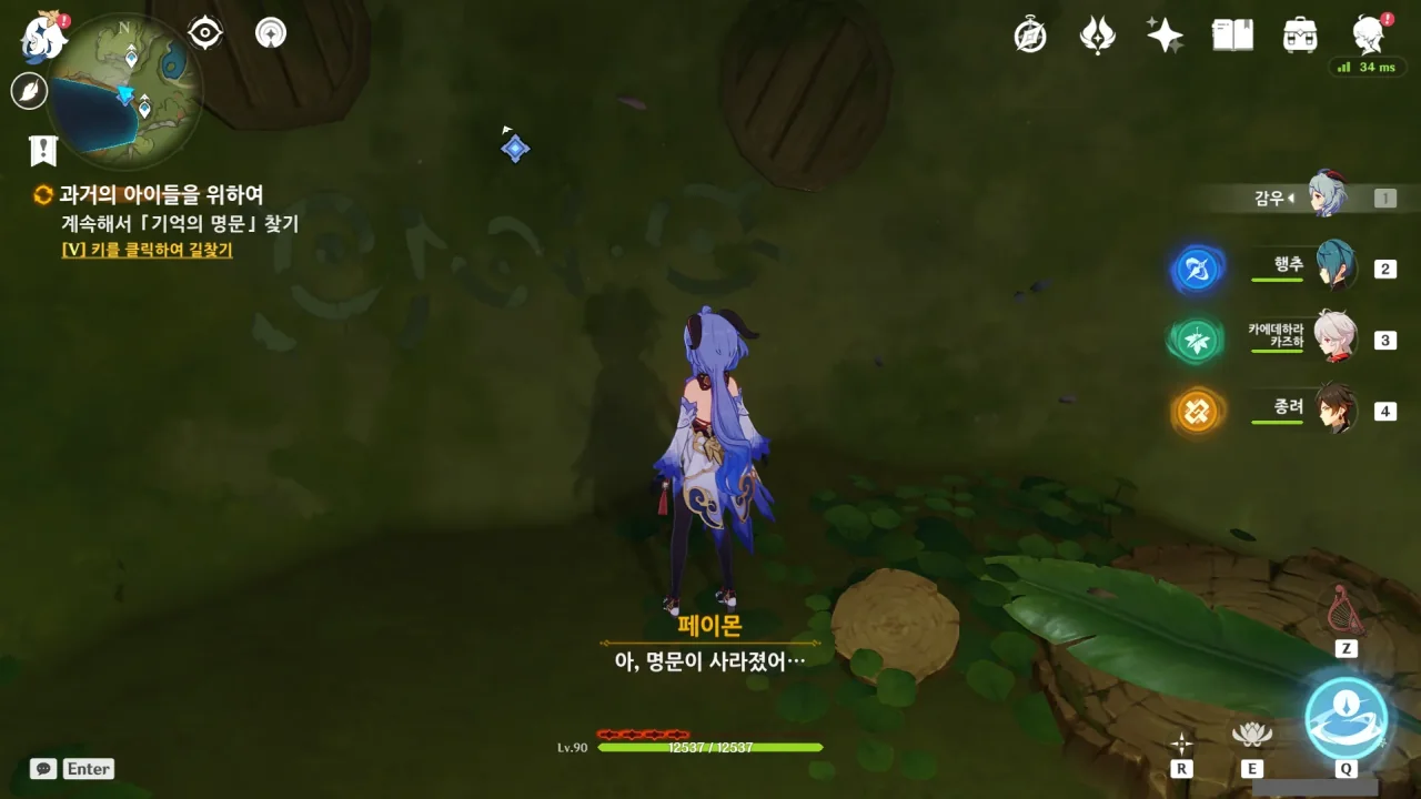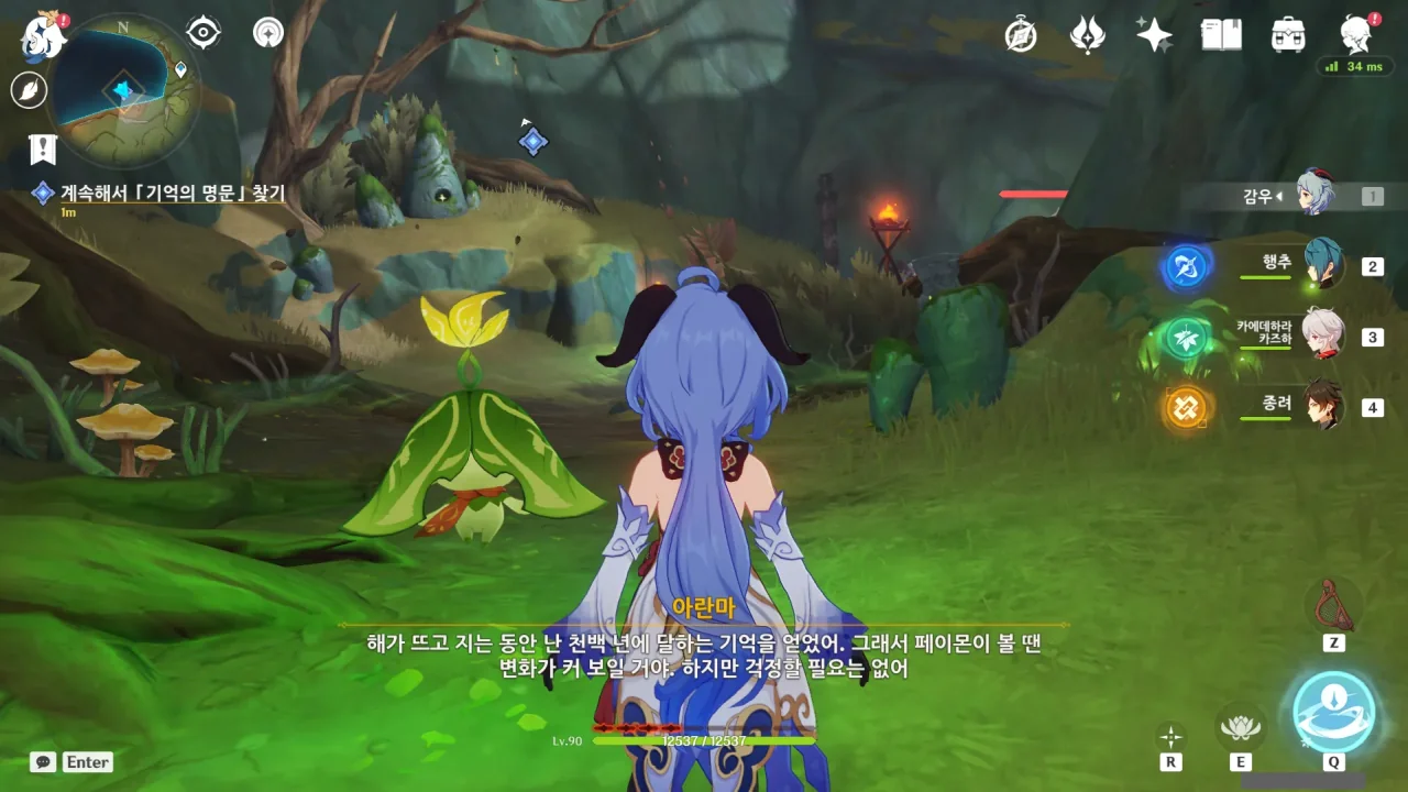 임무 목표 지점 근처에 가니, 미니맵이 시뻘겋게 변했다. 아마 이 임무 없이 그냥 앞으로 갔다간 페이몬이 '앞쪽은 다음에 탐색하러 오자!'라며 플레이어를 강제로 되돌려 보내겠지…