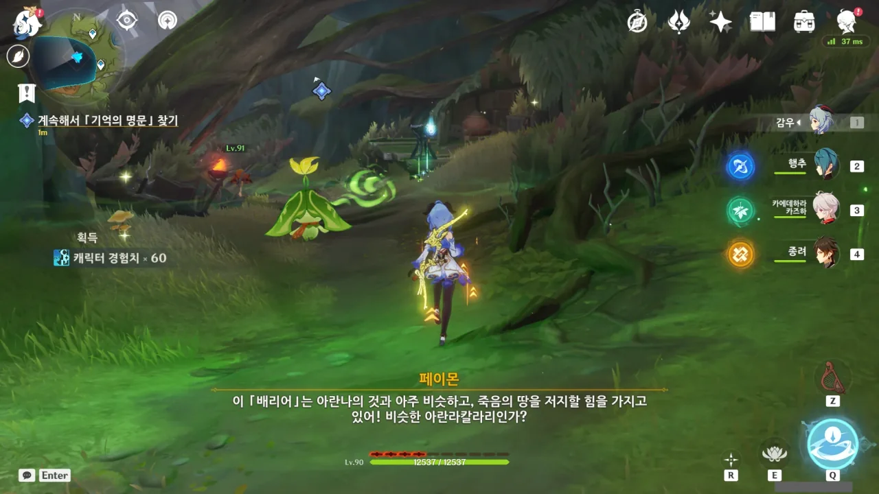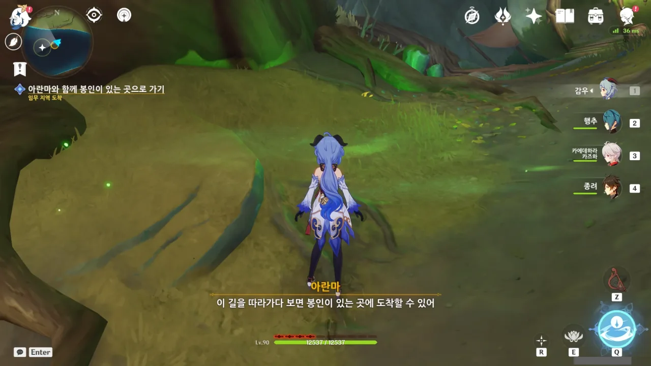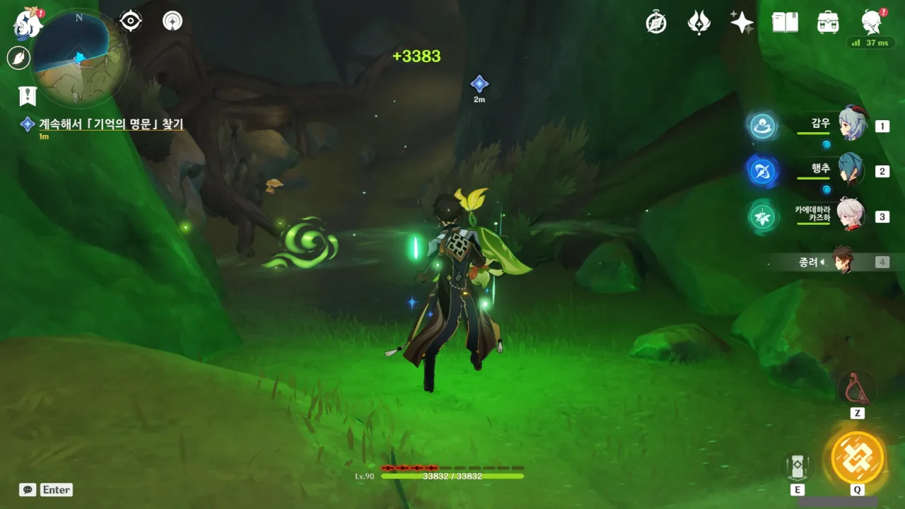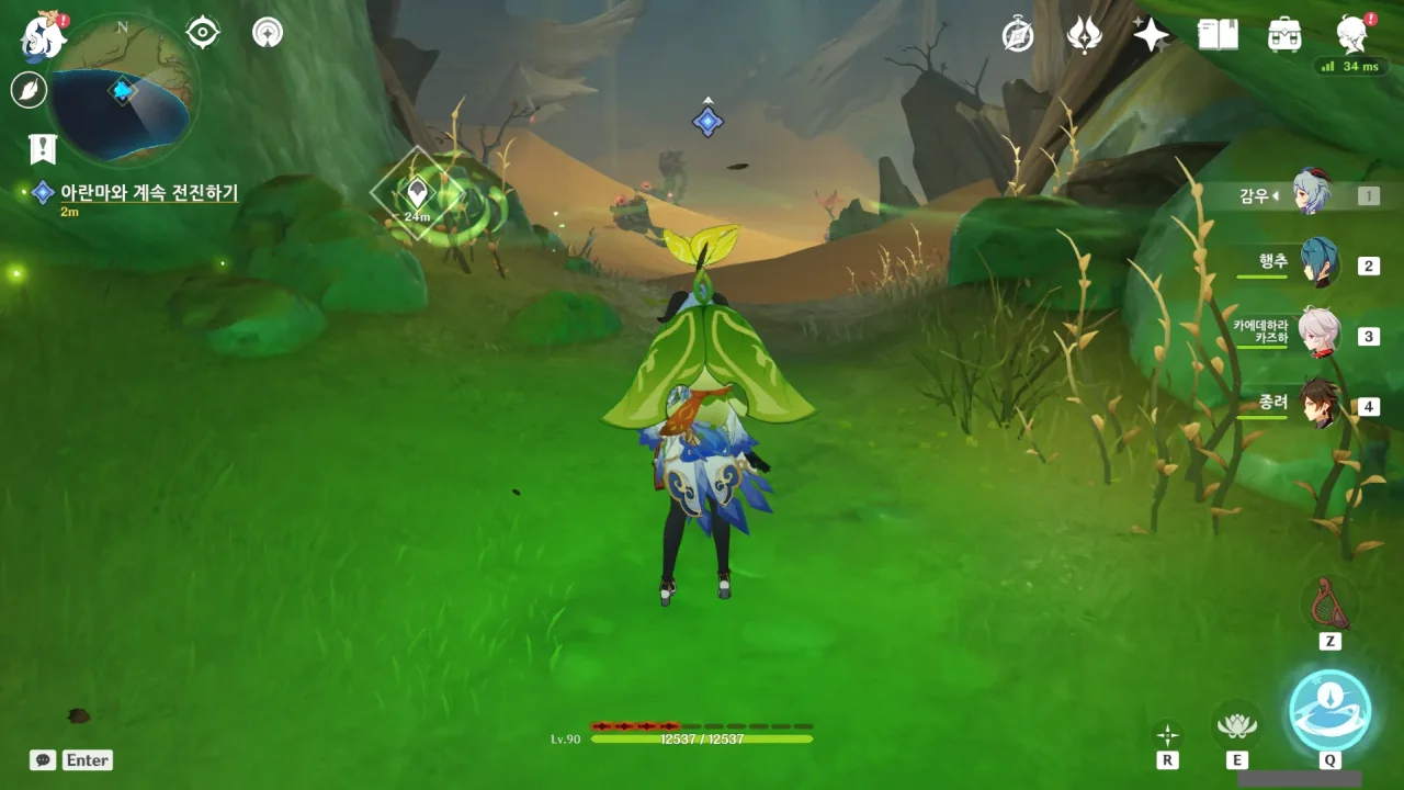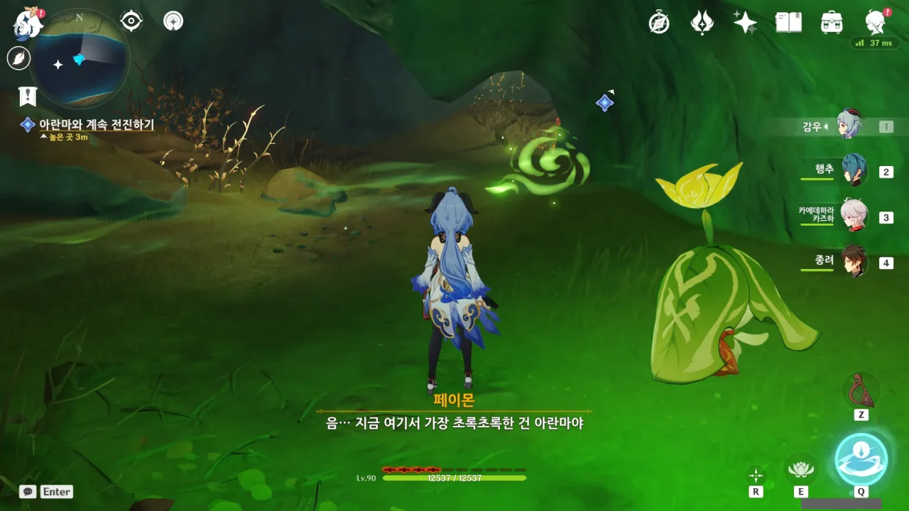 임무 목표 지점 근처에 가니, 미니맵이 시뻘겋게 변했다. 아마 이 임무 없이 그냥 앞으로 갔다간 페이몬이 '앞쪽은 다음에 탐색하러 오자!'라며 플레이어를 강제로 되돌려 보내겠지…