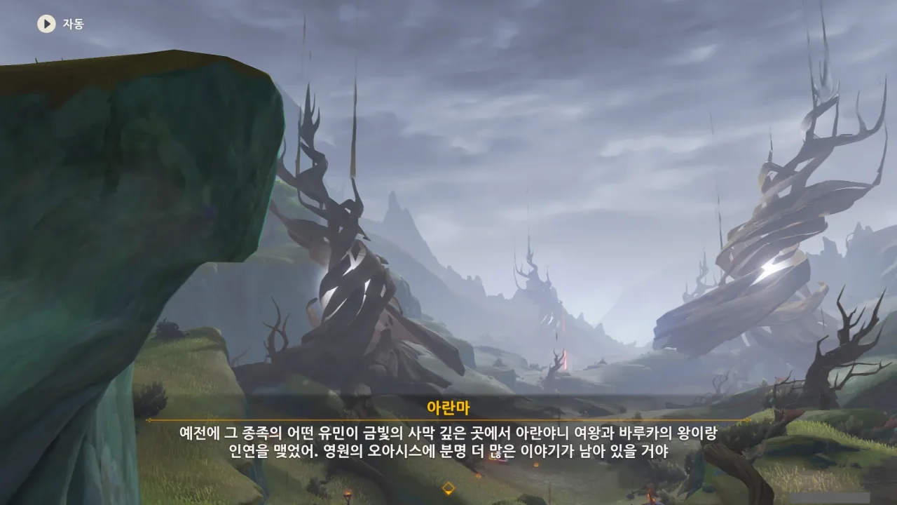 그래, 「기억의 명문」을 남긴 아란나라의 이름이 어디서 한 번 들어본 것 같다 했더니, 바소마 열매를 얻기 위해 방문했던 바사라 나무의 이름이었다. 마라나를 봉인하기 위해 바사라 나무가 된 건가 보다.