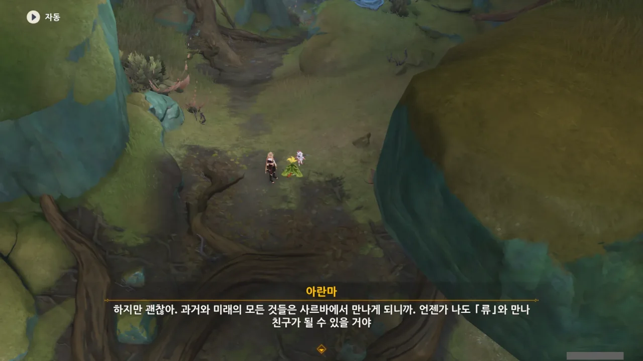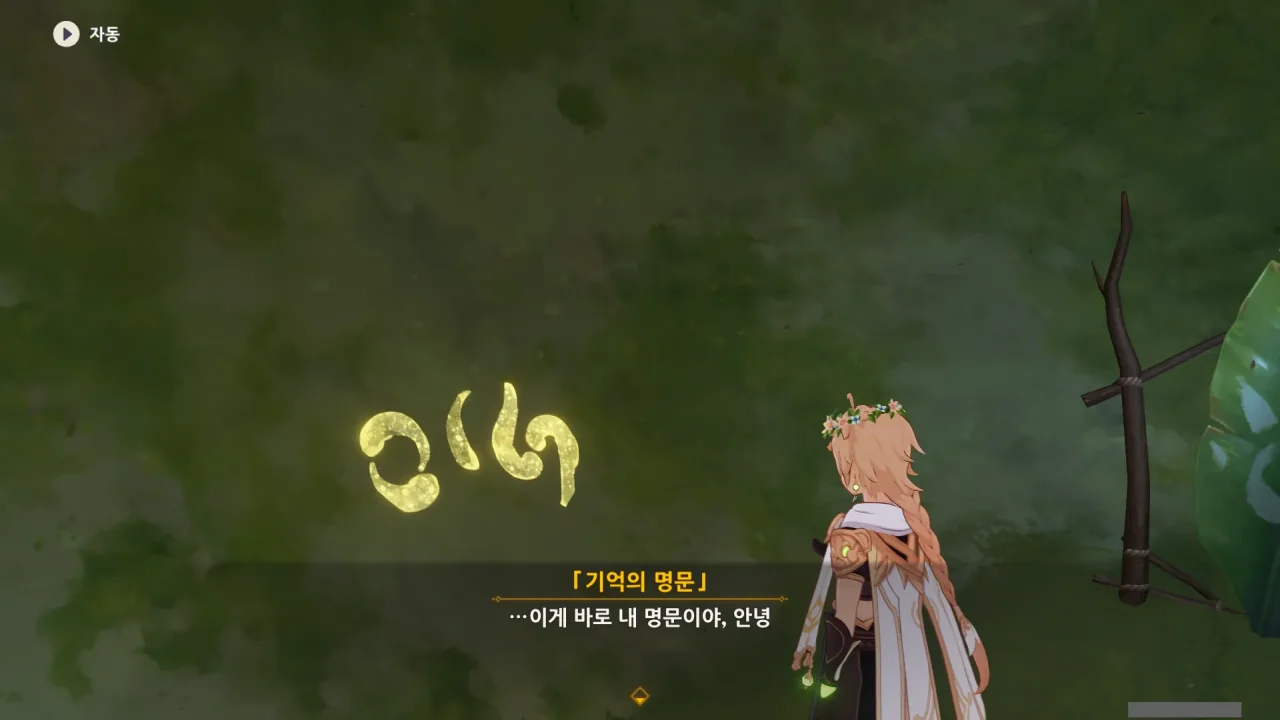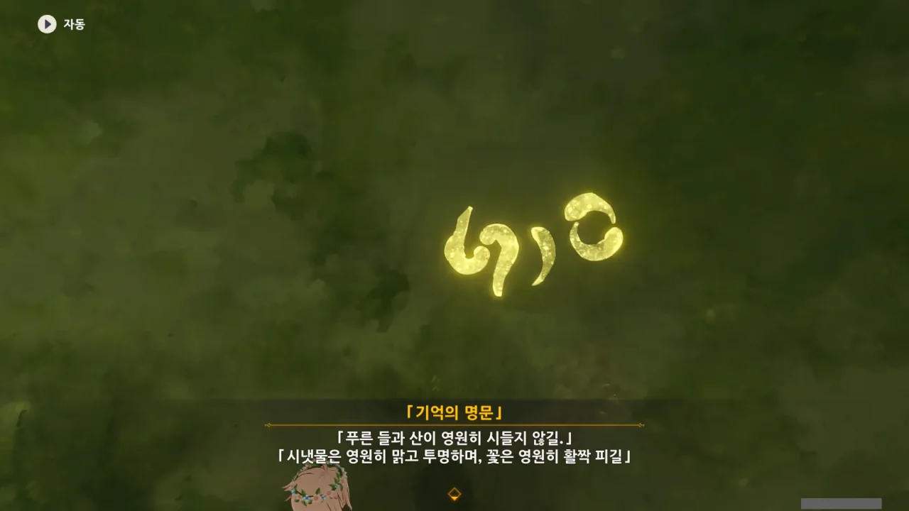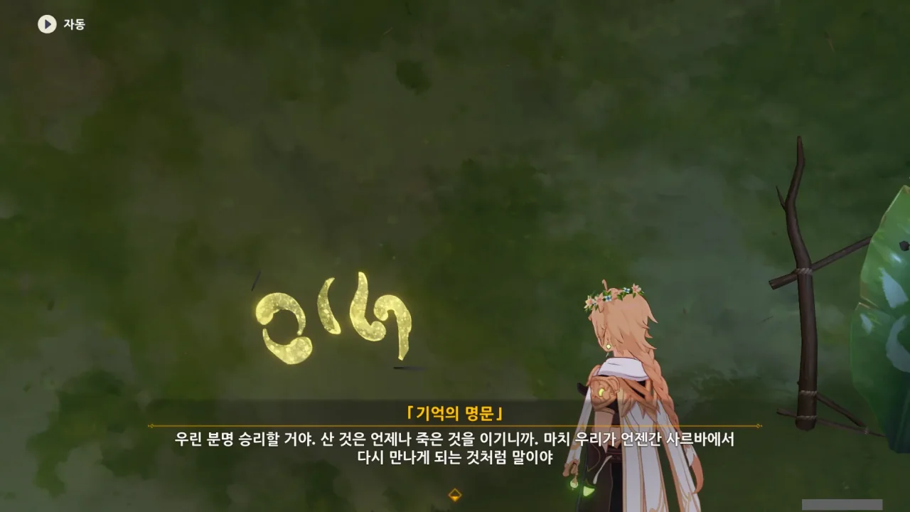 … 아, 너도 숲의 아이구나. 내 「기억의 명문」을 읽었다는 건, 마라나가 완전히 제거되었거나 네가 마라나를 제거하러 왔다는 거겠지?